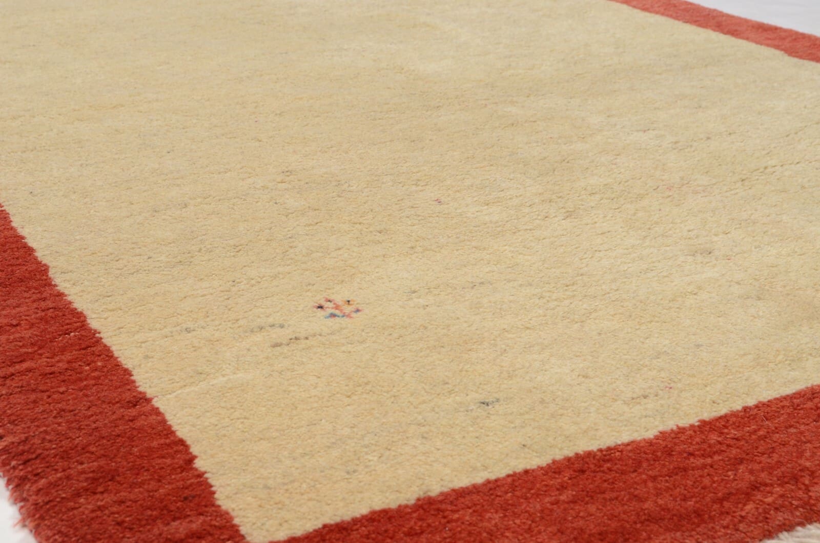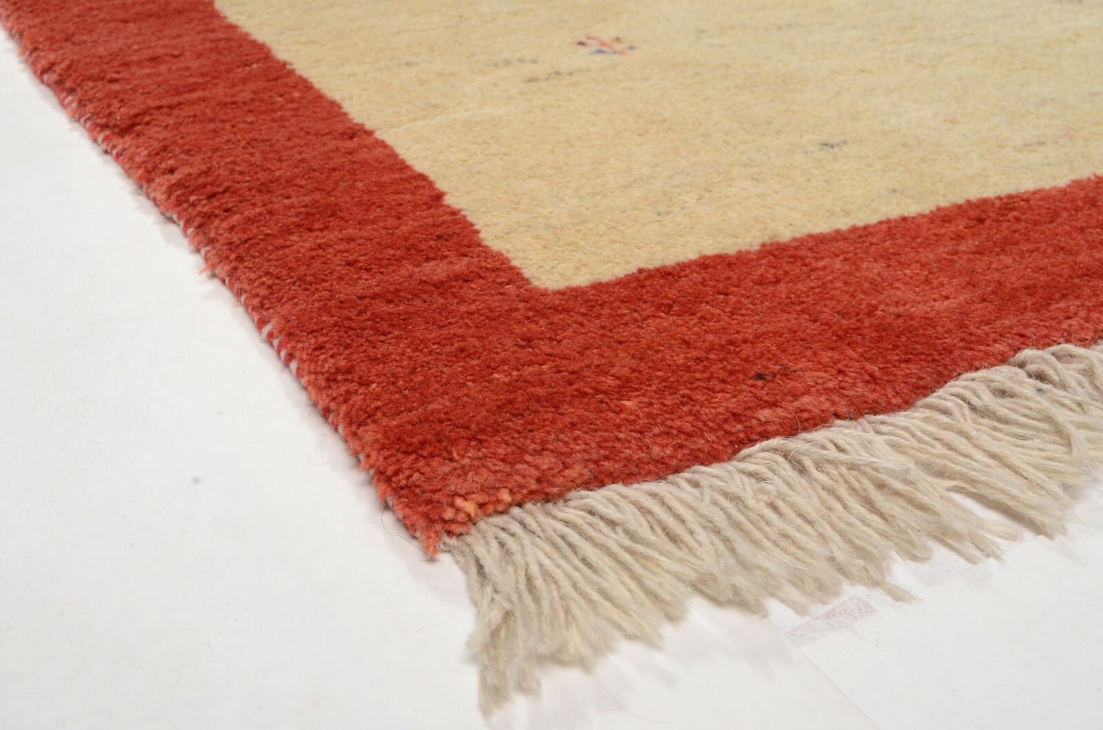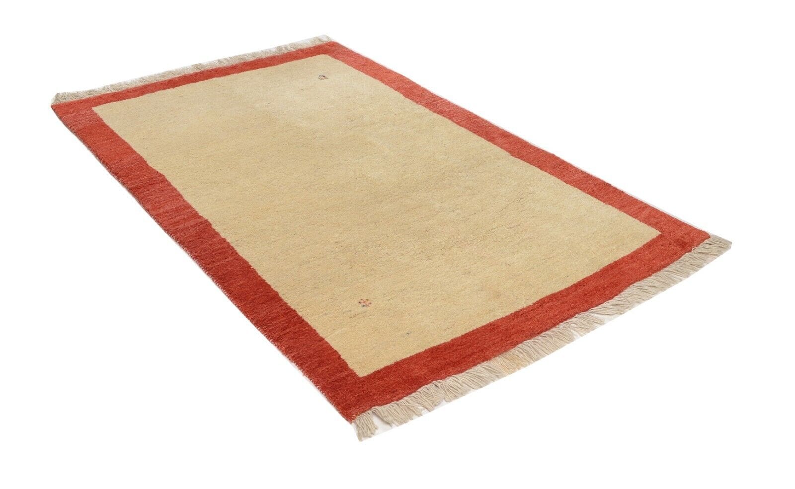 Handgeknüpfter persischer Gabbeh Teppich | Größe: 205 x 128 cm | Knotendichte: 90.000 Knoten/m² | Material: 100% Schurwolle, handgesponnen und handgefärbt | Dicke: ca. 18 mm | Zustand: Neu, perfekt | Herkunft: Persien | Für Fußbodenheizung geeignet | Stil: Modern, Umrandung Muster