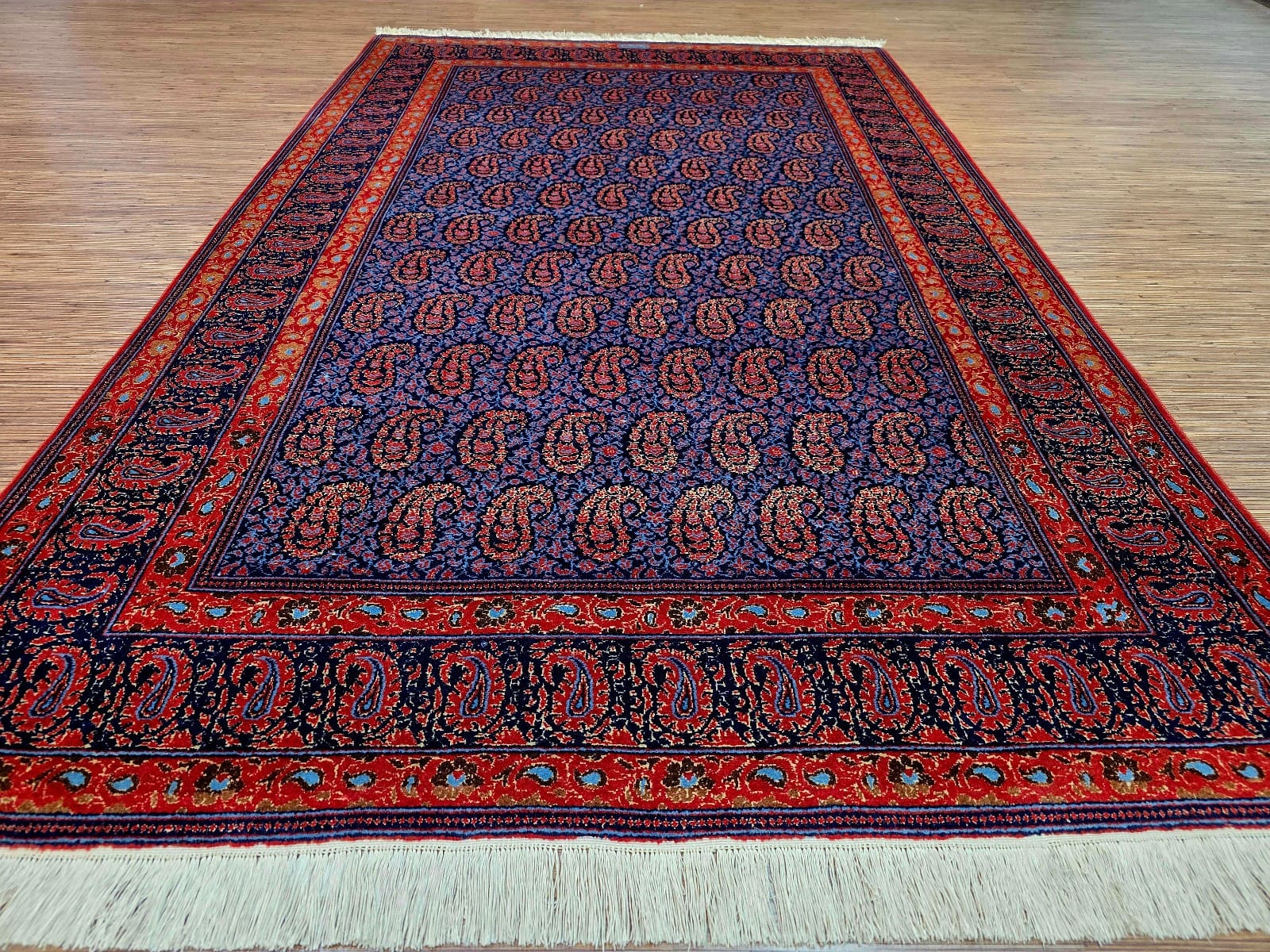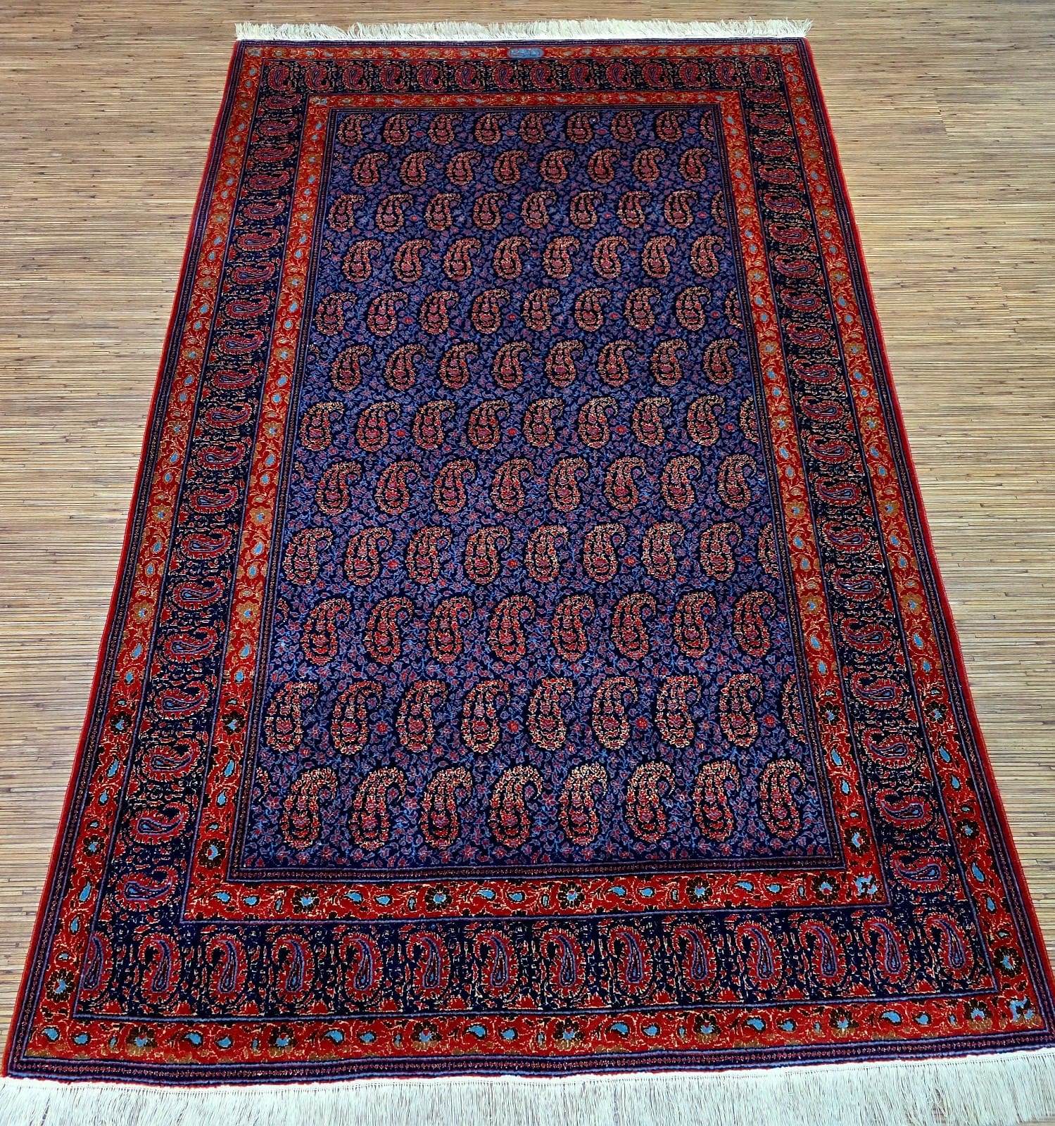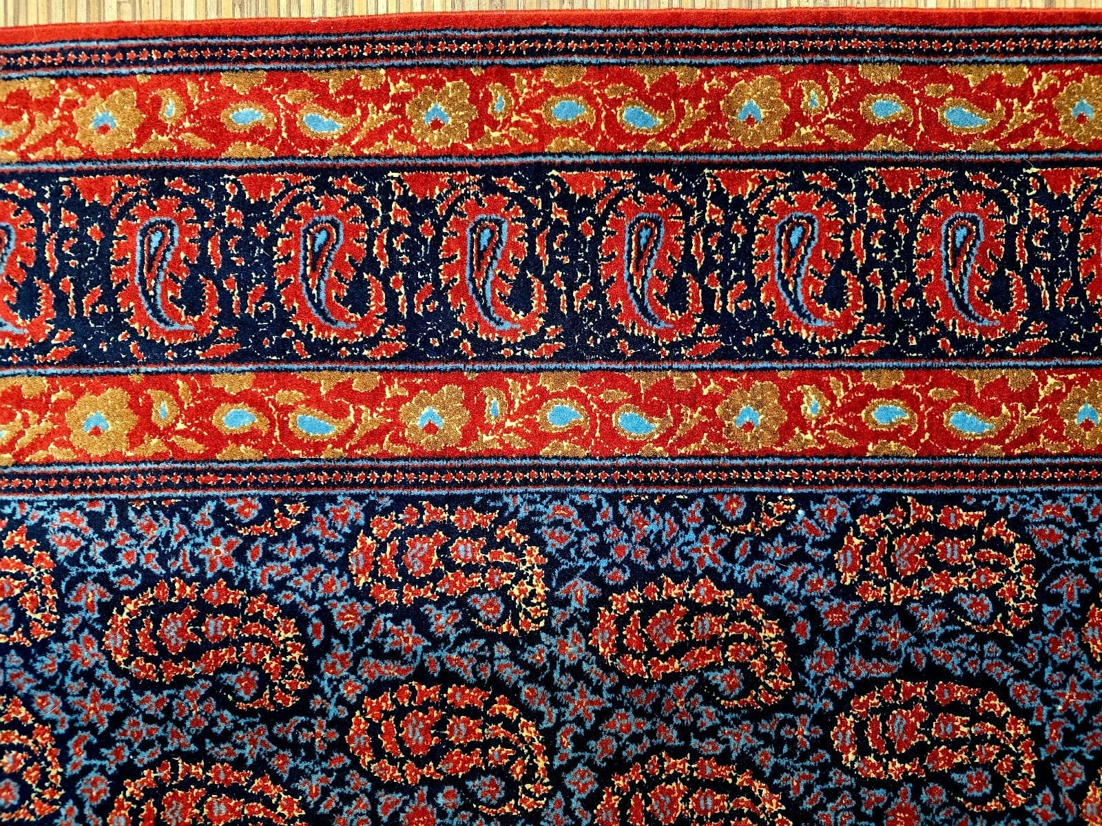 Der Zustand des Teppichs ist gut, was auf eine sorgfältige Pflege und regelmäßige Reinigung hinweist. Eine professionelle Reinigung wird empfohlen, um die Farben und die Struktur zu erhalten. Der Teppich ist geeignet für alle Zimmer und bringt eine authentische orientalische Atmosphäre in jedes Zuhause. Darüber hinaus kann auf Wunsch ein Echtheitszertifikat durch das Teppichcenter-Stuttgart erstellt und mitgeliefert werden. Die Knotendichte beträgt 256 Raj, was etwa 5.856 Knoten/m² entspricht.