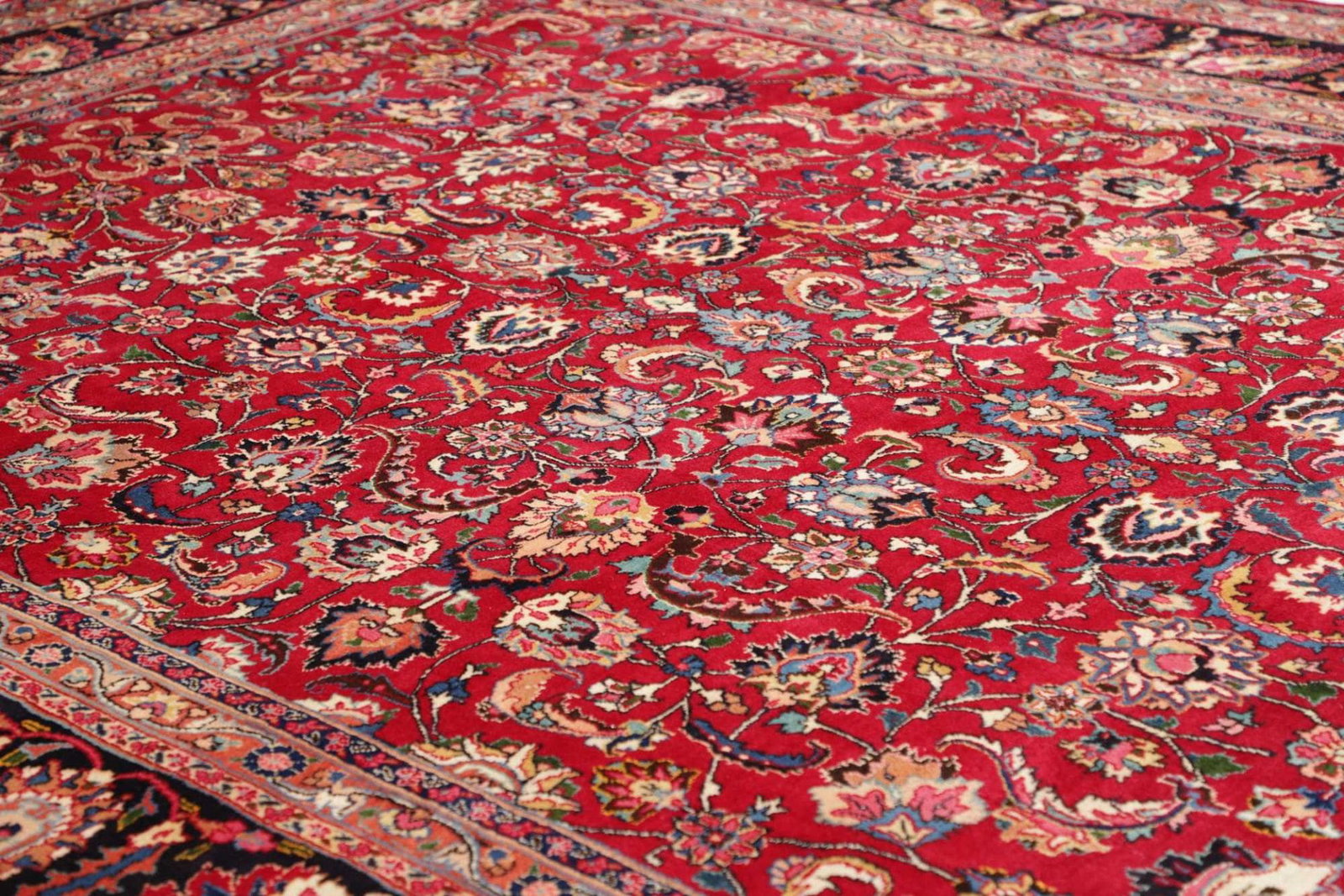 Handgeknüpfte Teppiche wie der Persische Mashad Teppich zeichnen sich durch ihre hochwertige Verarbeitung und Langlebigkeit aus. Jeder Teppich erzählt eine Geschichte und besitzt durch die individuelle Knotentechnik einen besonderen Charakter. Handgeknüpfte Teppiche sind nicht nur funktionale Bodenbeläge, sondern auch Kunstwerke, die über Generationen weitergegeben werden können.