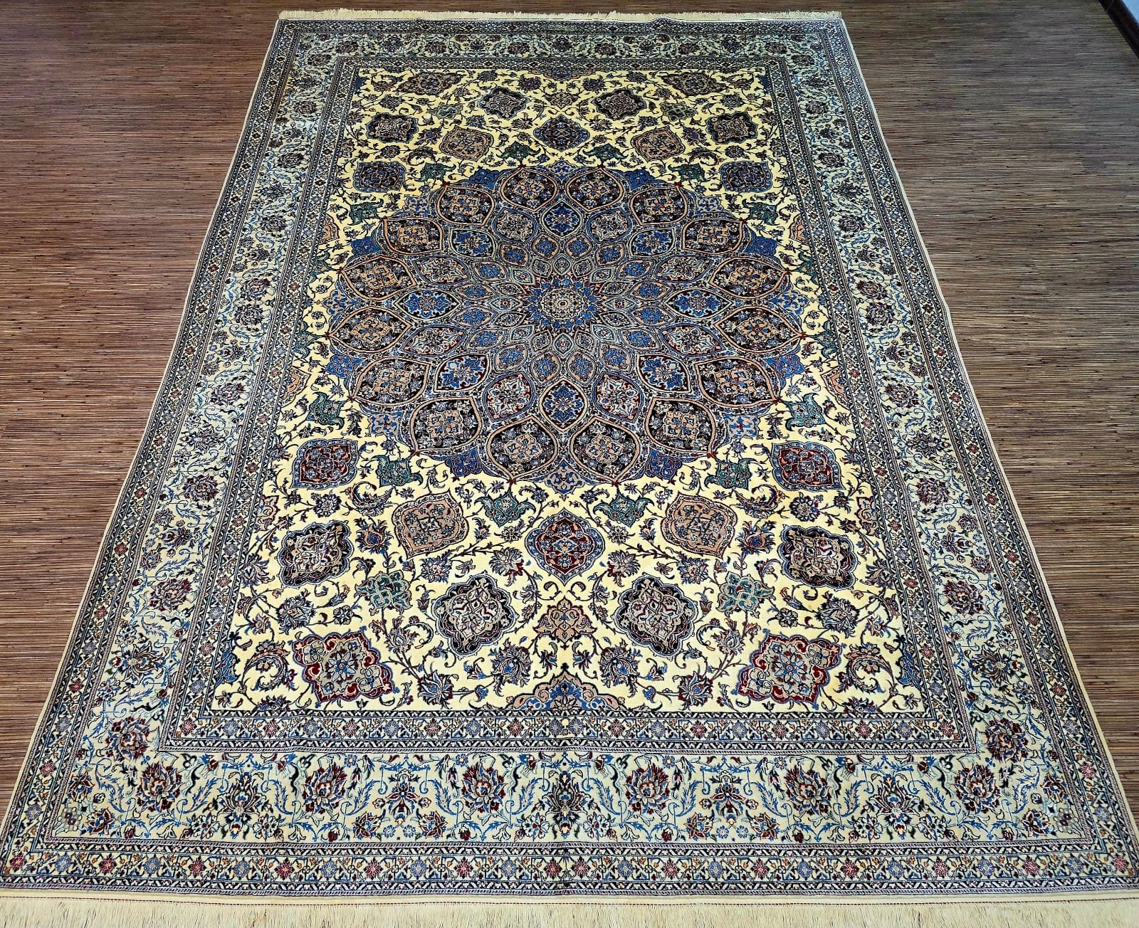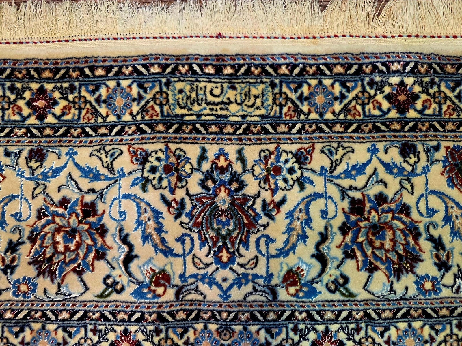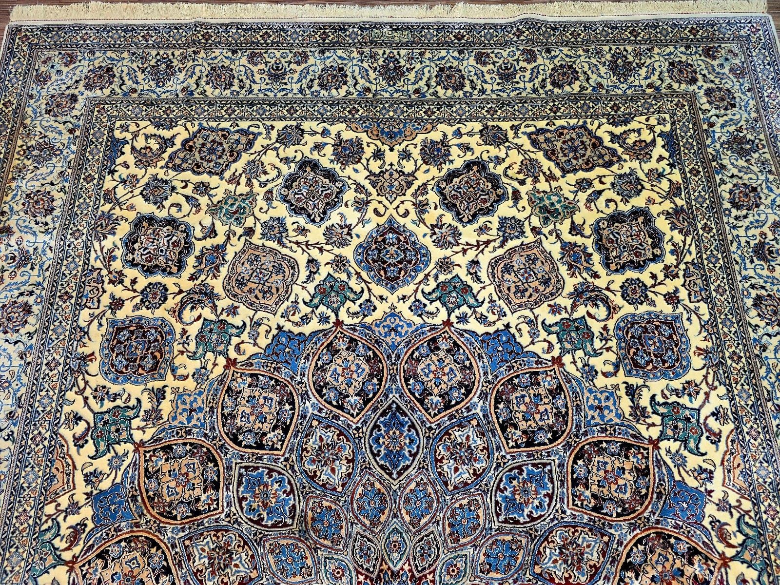 Handgeknüpfter Nain Orientteppich | Knotendichte: 6La 56 Raj (ca. 640.000 / m²) | Material: Korkwolle mit Seide auf Baumwolle | Größe: 305 x 212 cm | Herkunft: Persien | Zustand: sehr gut | Farbe: beige