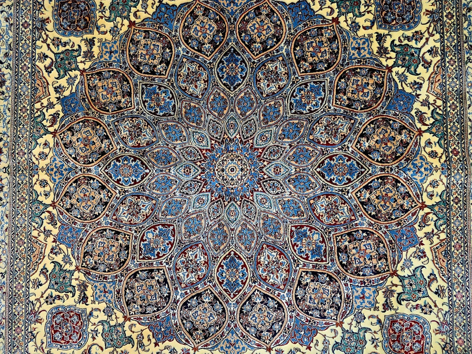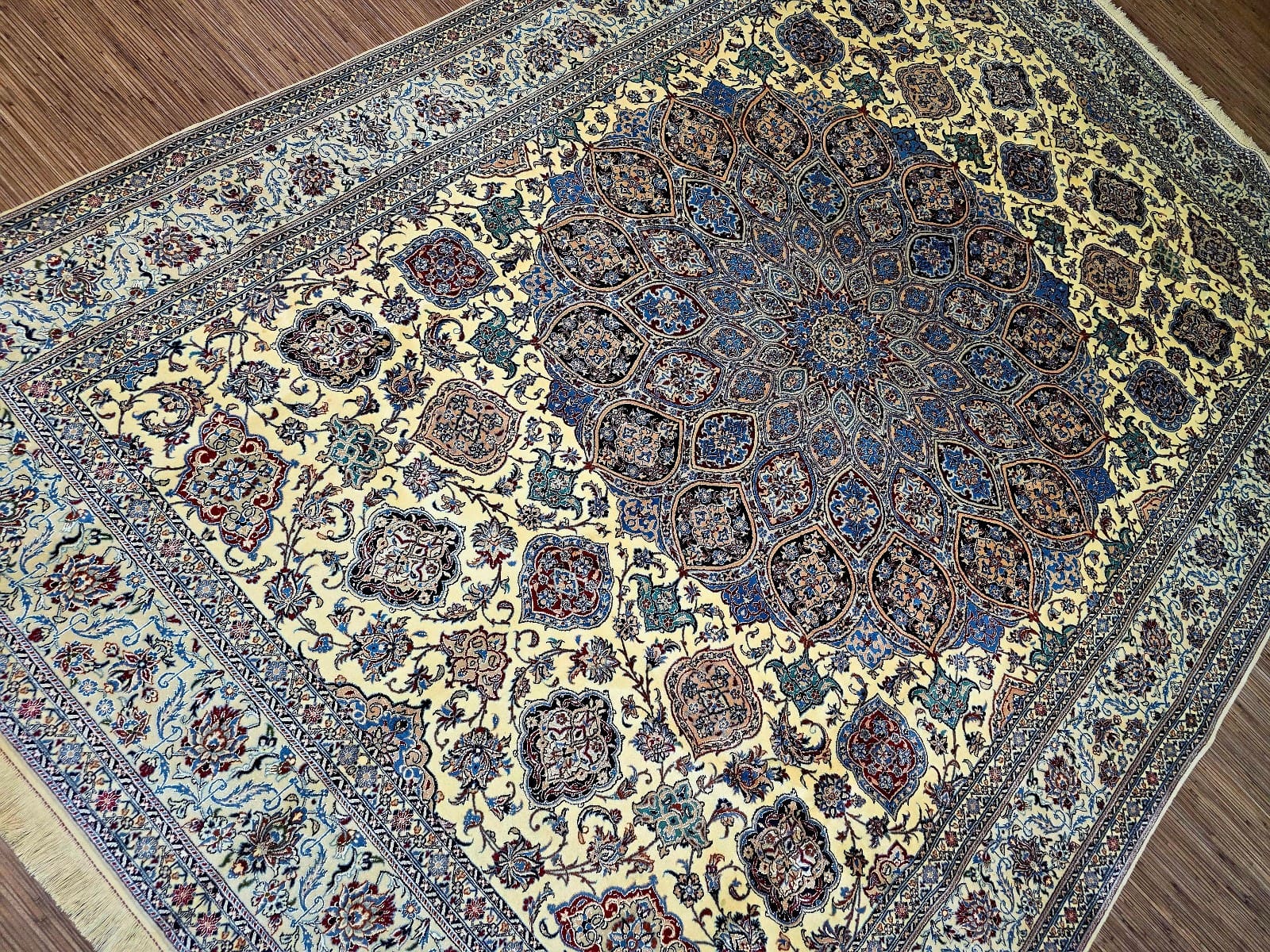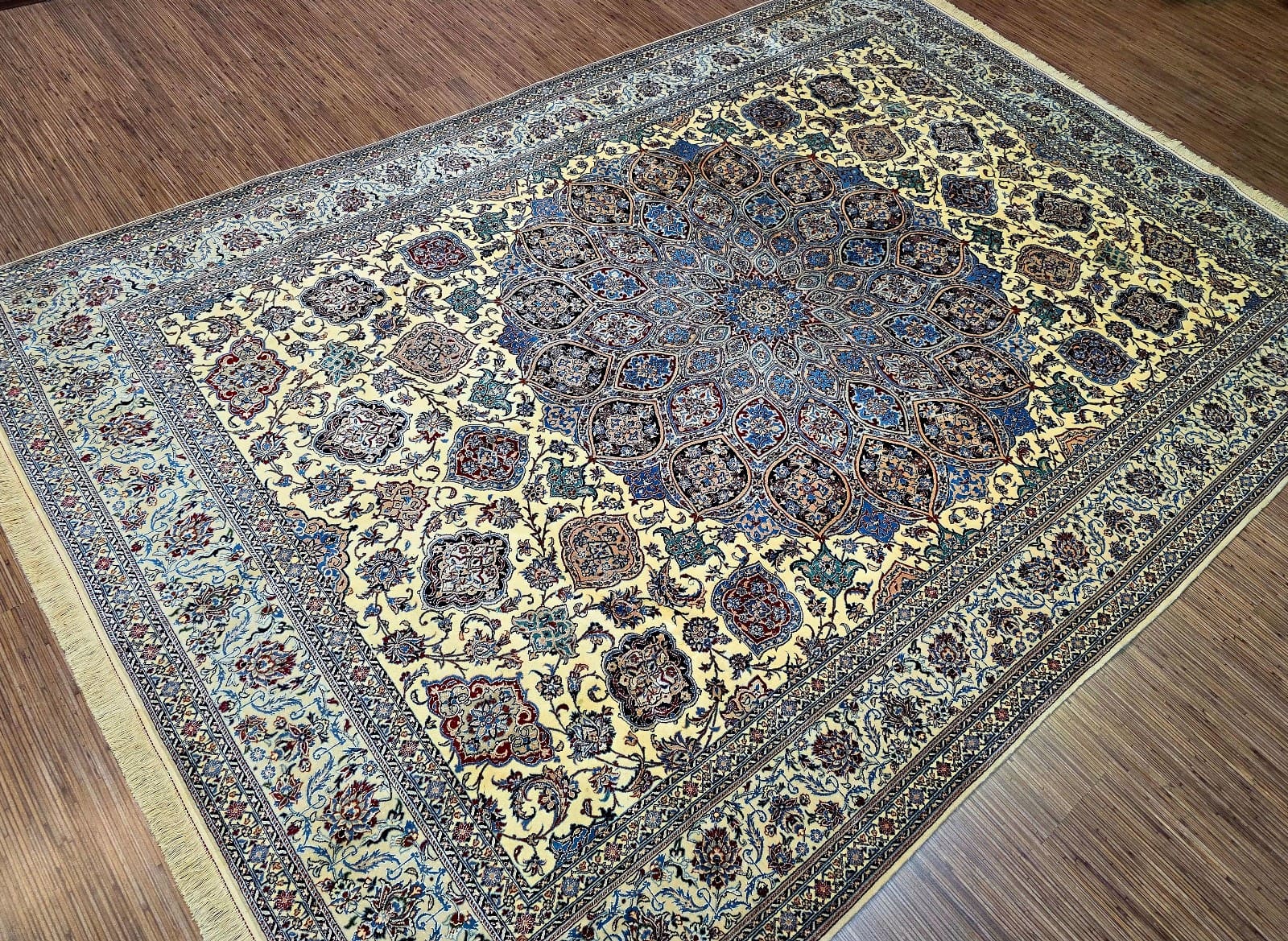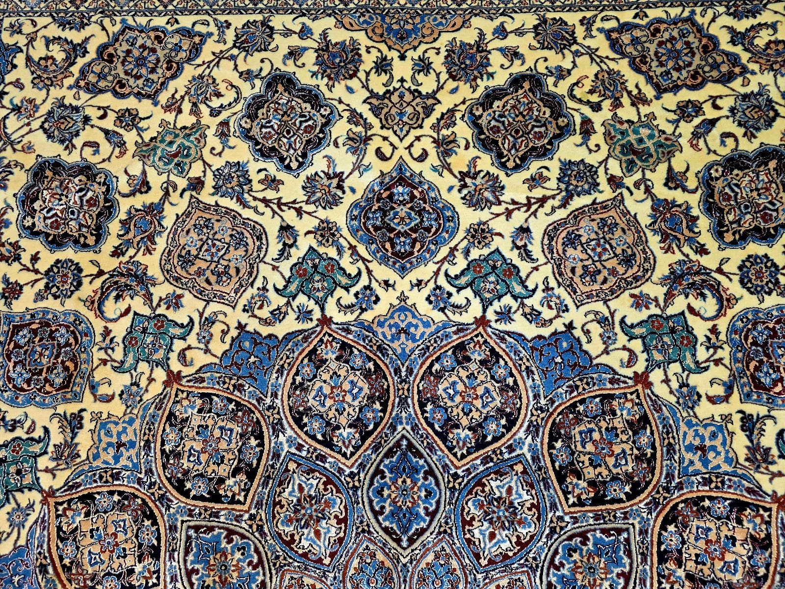 Handgeknüpfter Nain Orientteppich | Knotendichte: 6La 56 Raj (ca. 640.000 / m²) | Material: Korkwolle mit Seide auf Baumwolle | Größe: 305 x 212 cm | Herkunft: Persien | Zustand: sehr gut | Farbe: beige