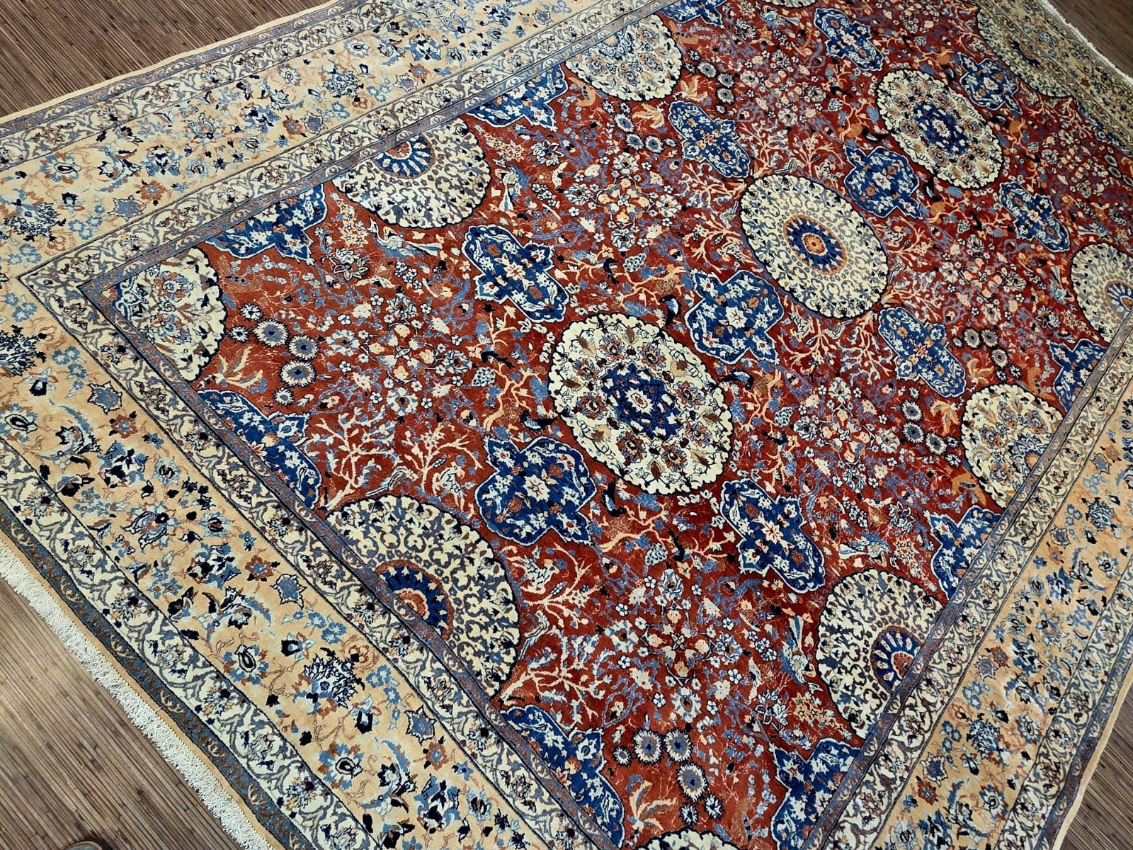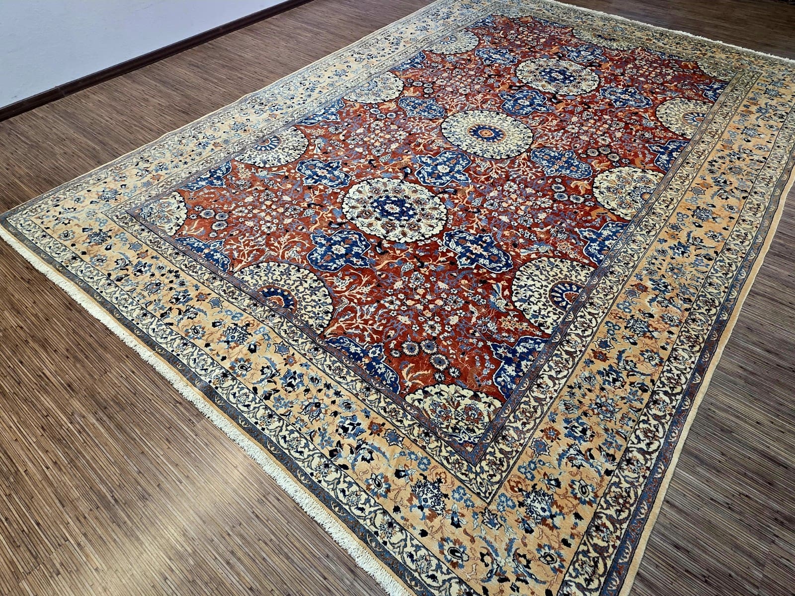 Handgeknüpfter Nain Orientteppich | Knotendichte: 9La 42 Raj (ca. 360.000 / m²) | Material: Korkwolle mit Seide auf Baumwolle | Größe: 367 x 262 cm | Herkunft: Persien | Zustand: sehr gut | Farbe: rot