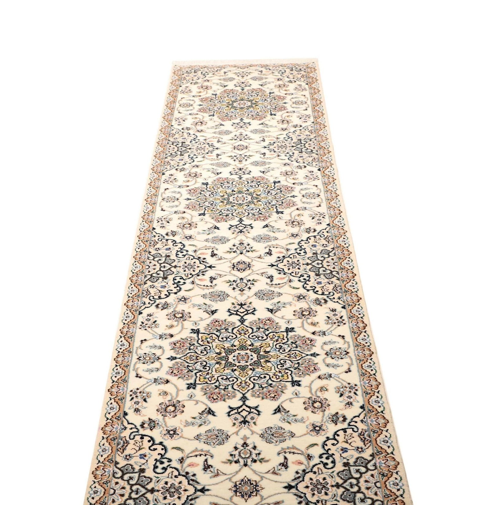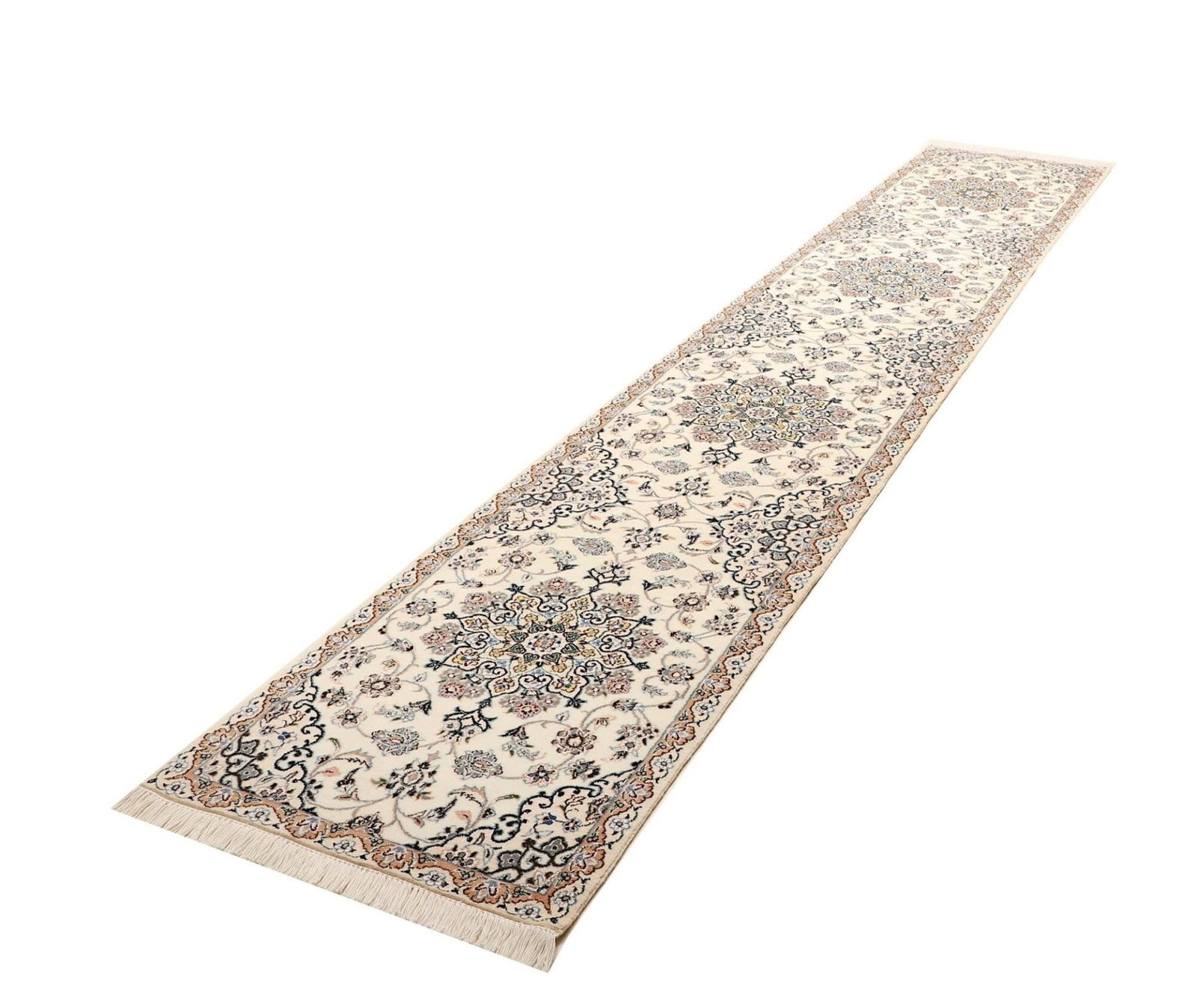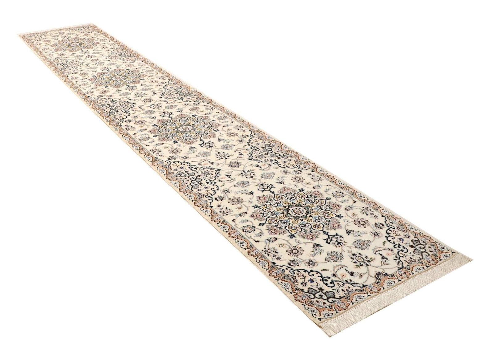 Persischer Nain Teppich 72 x 386cm, florale Muster, handgeknüpft
