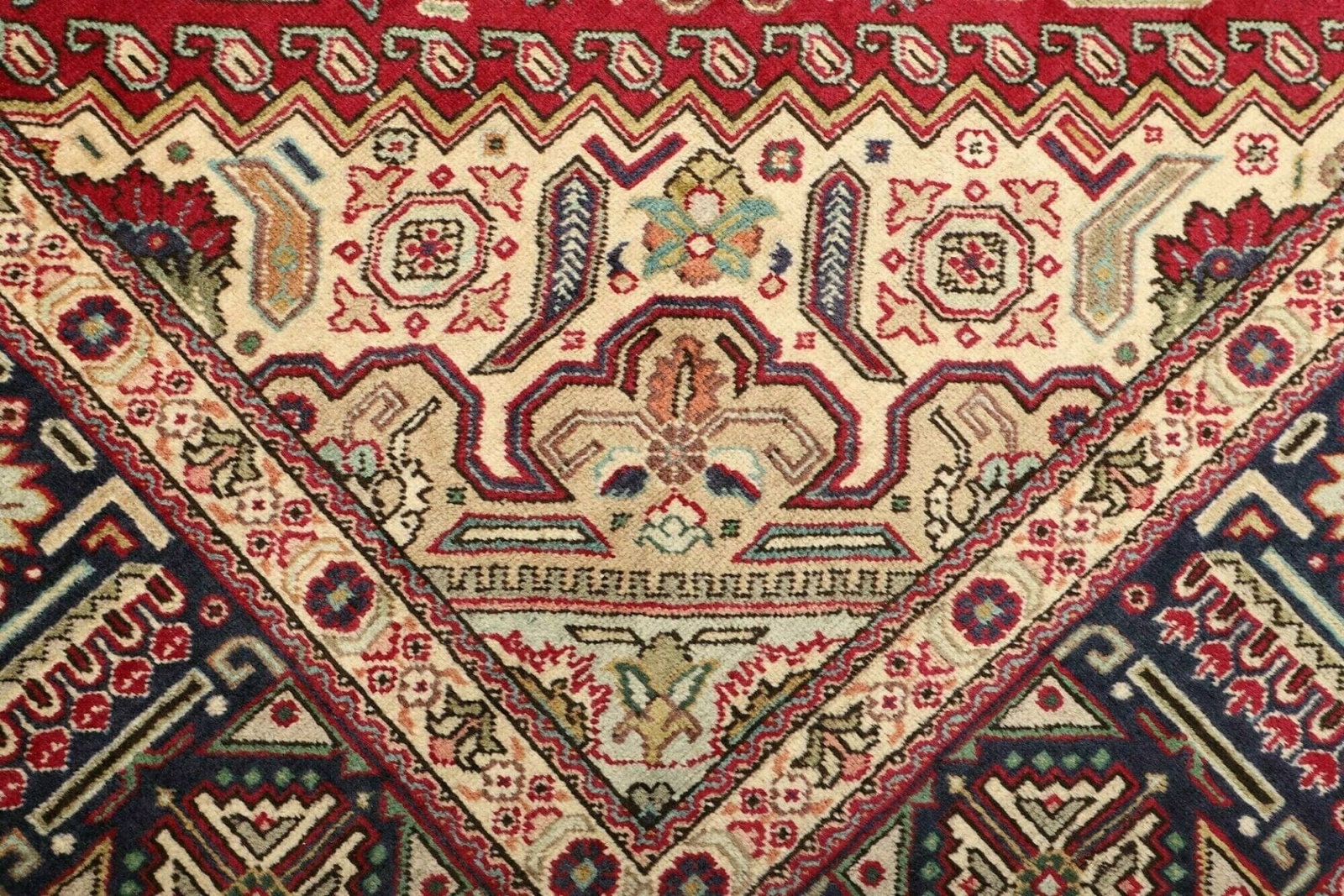 Der persische Täbriz Teppich aus Schurwolle, handgeknüpft, ist ein Meisterwerk der Teppichkunst und verbindet traditionelles Handwerk mit zeitloser Eleganz. Seine hochwertigen Materialien und die detailreiche Verarbeitung machen ihn zu einem besonderen Schmuckstück für jedes Zuhause. Dieser Teppich strahlt nicht nur Stil und Klasse aus, sondern erzählt auch die Geschichte einer Jahrhunderte alten Tradition, die tief in der Kultur des Iran verwurzelt ist.