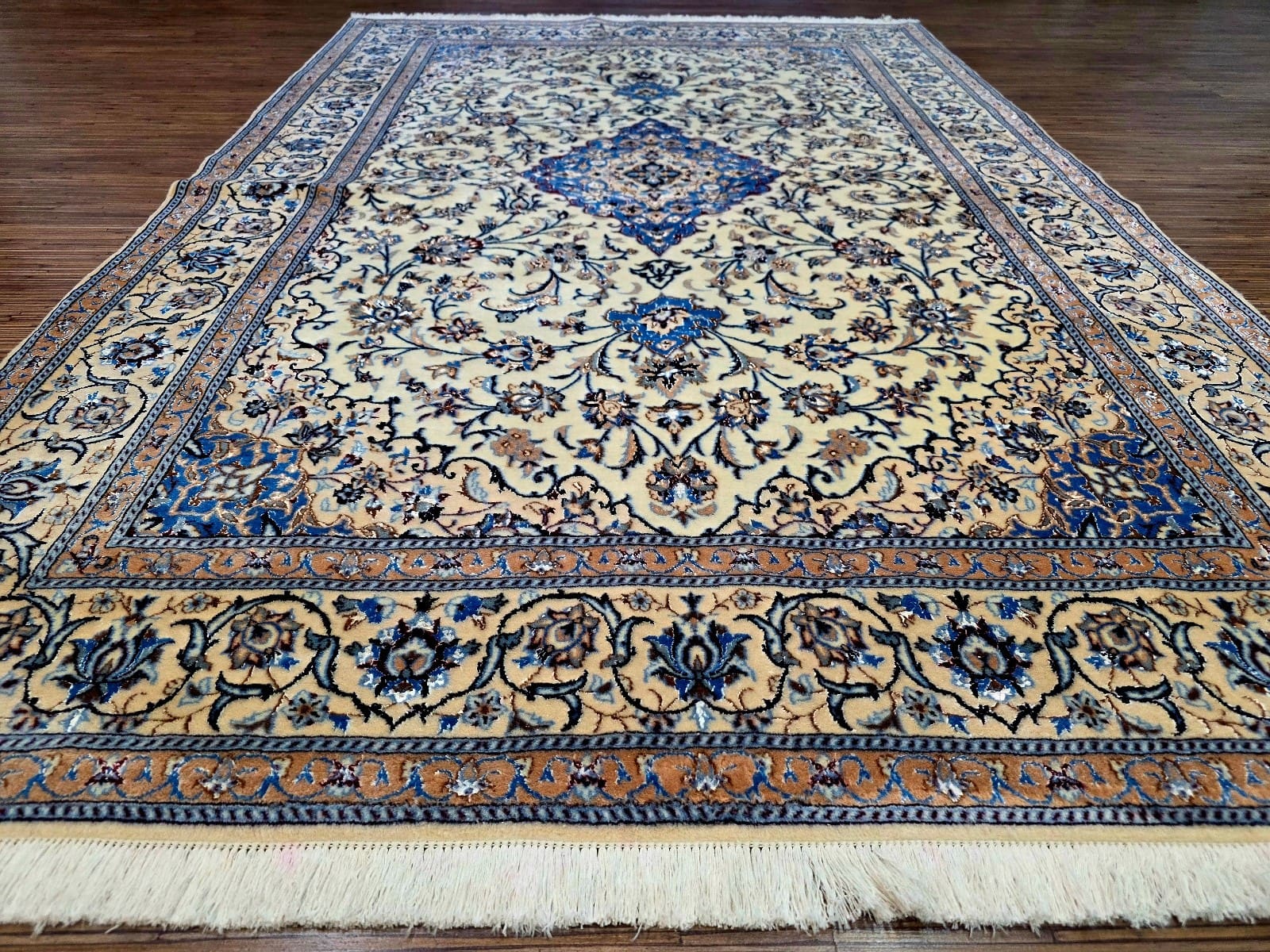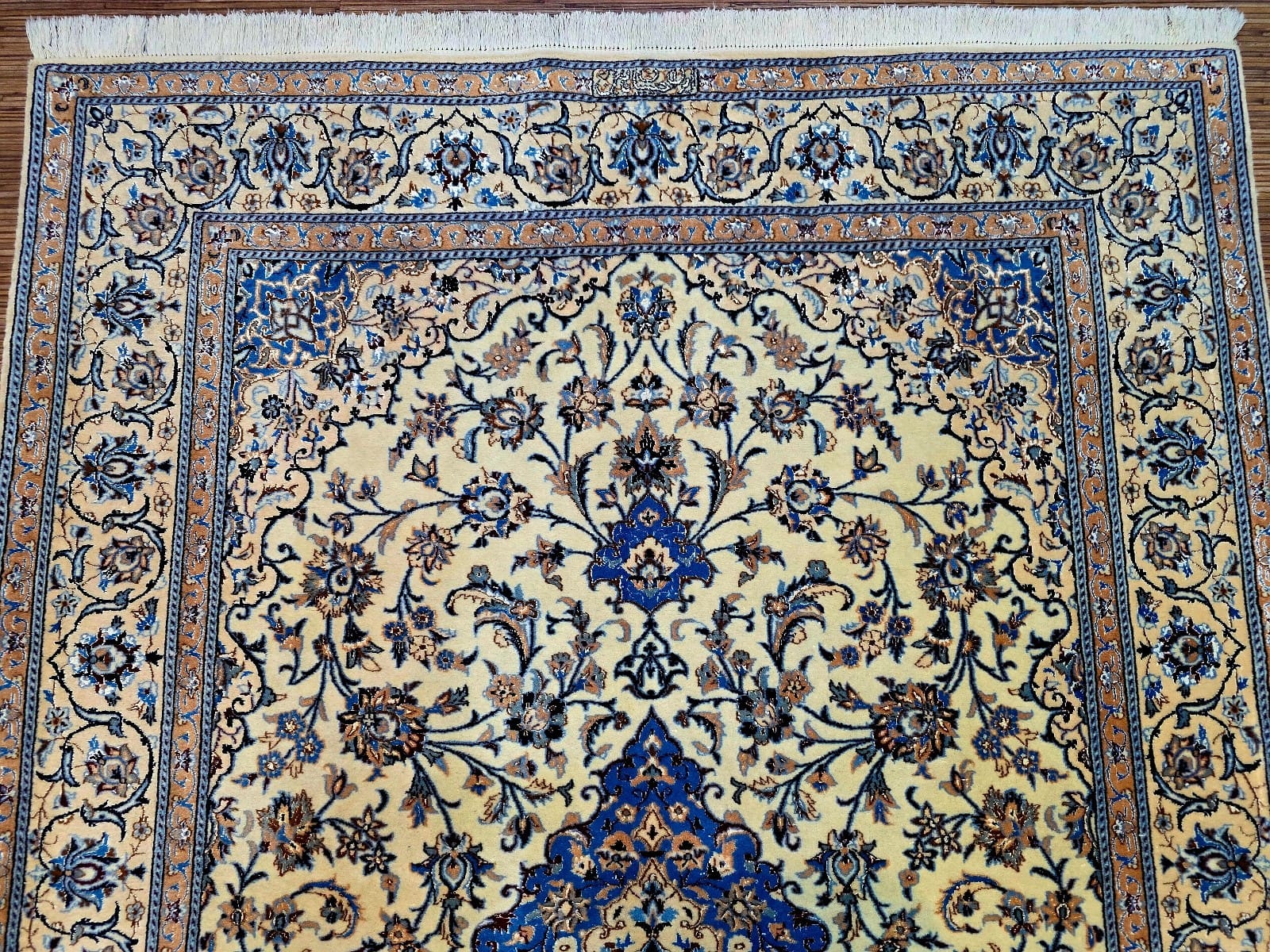Handgeknüpfter Nain Orientteppich | Knotendichte: ca. 1.000.000 / m² | Material: Korkwolle mit Seide auf Baumwolle | Größe: 195 x 130 cm | Herkunft: Persien | Zustand: Sehr guter Zustand, frisch gewaschen.