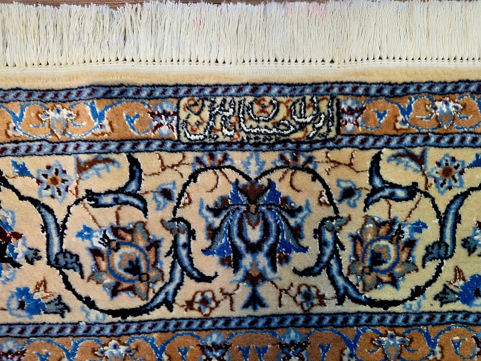 Besonders hervorzuheben ist die exquisite Verarbeitung und die hohe Knotendichte, die für Nain-Teppiche typisch ist. Diese Eigenschaften machen sie nicht nur zu einem optischen Highlight, sondern auch zu einem langlebigen und strapazierfähigen Einrichtungsstück. Zudem wurde dieser Teppich frisch professionell gewaschen, wodurch er sich in einem sehr guten Zustand befindet.