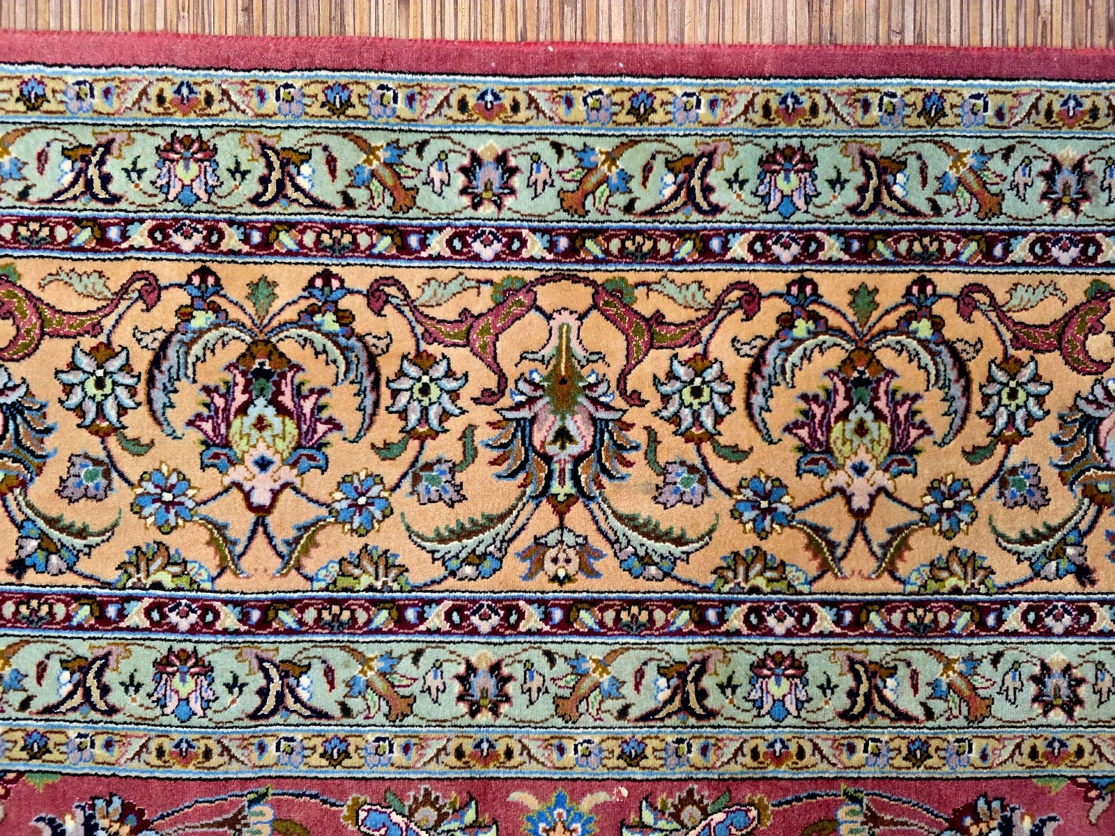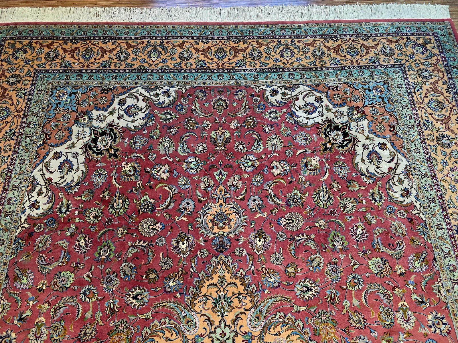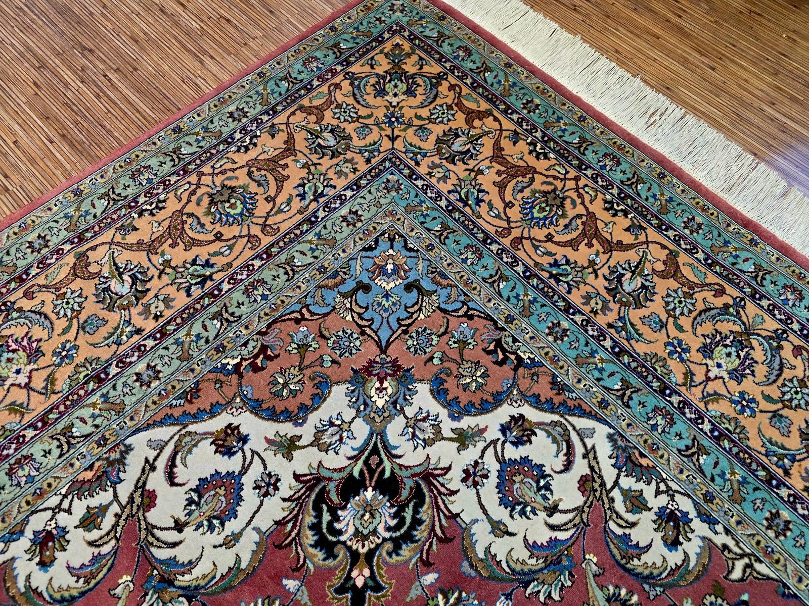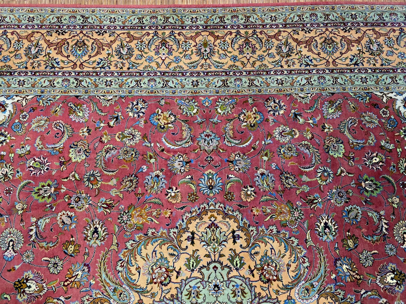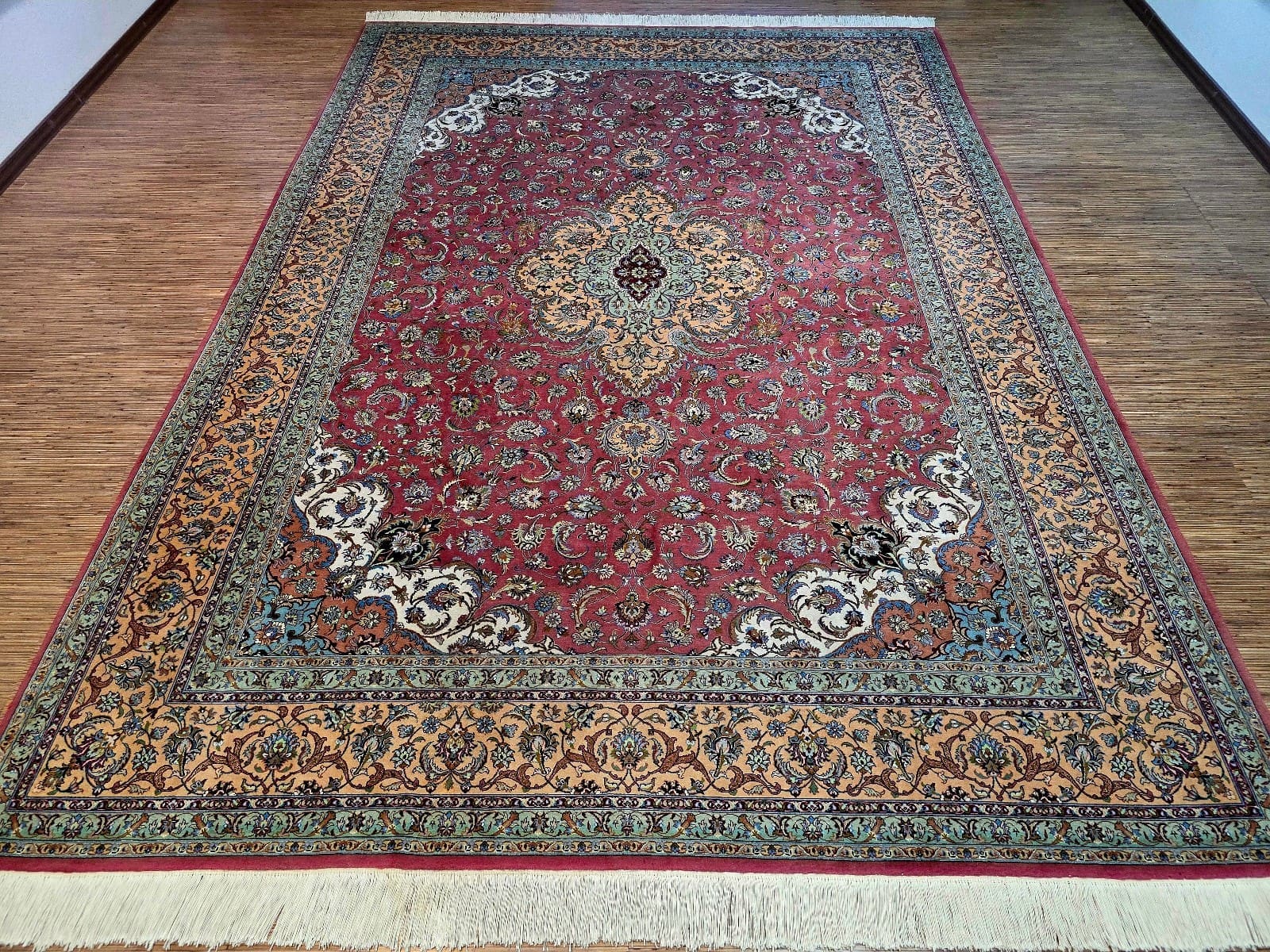 Handgeknüpfter floraler Orientteppich | Knotendichte: ca. 500.000 Knoten/m² | Material: Korkwolle & Seide auf Baumwolle | Größe: 355 x 252 cm | Herkunft: Persien | Zustand: Sehr guter Zustand
