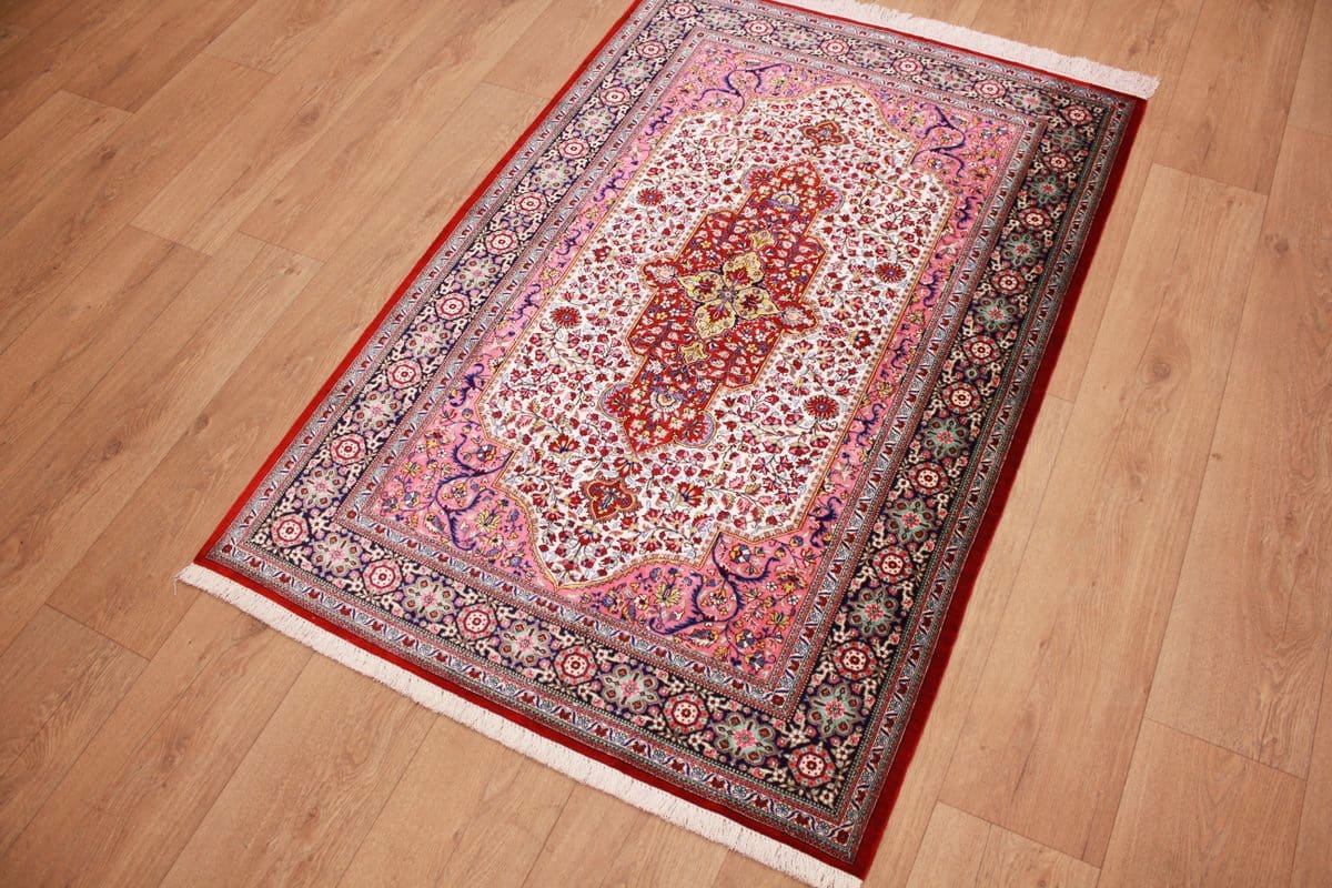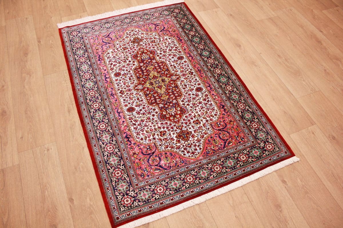 Zusammenfassend lässt sich sagen, dass der Reine Seidenteppich Ghom eine hervorragende Wahl für alle ist, die Qualität, Handwerkskunst und traditionelles Design schätzen. Er wird sicherlich zum Blickfang jeder Einrichtung und ist ein zeitloses Stück, das über Generationen hinweg Freude bereitet.