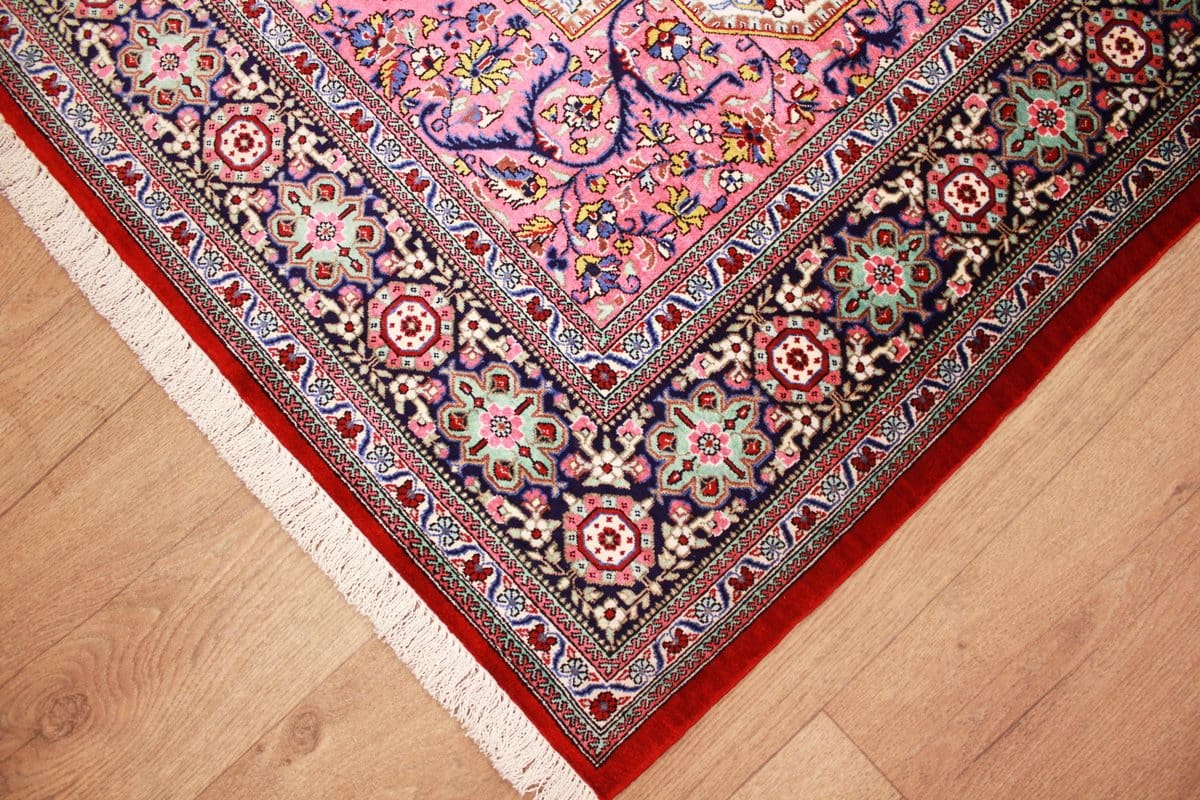 Perserteppich Tabriz Mahi 140×70 cm – Sehr Feine Knotenzahl & Handgeknüpft – Klassischer Kaschmir Seidenteppich in leicht violettem rosarot mit dunkelblauer Bordüre –…
