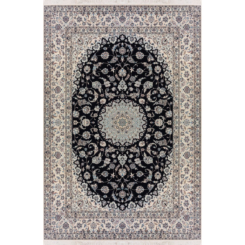 Handgeknüpfter Nain Orientteppich | Knotendichte: 6La 60 Raj (ca. 810000 / m²) | Material: Schurwolle & Seide | Größe: 210 x 310 cm | Farbe: dunkelblau