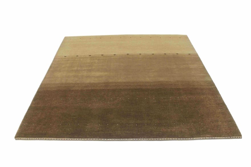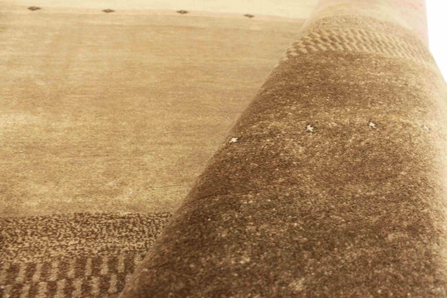 Loribaft Teppich | Knotendichte: 128.000 – 160.000 Knoten/m² | Material: Handgesponnene Wolle | Größe: 269×186 cm | In neuzeitlichem Zustand | Herkunft: Indien | Verarbeitung: Handgeknüpft | Farbe: Braun/Gelb | Dicke: ca. 10 mm | Gewicht: ca. 12 kg