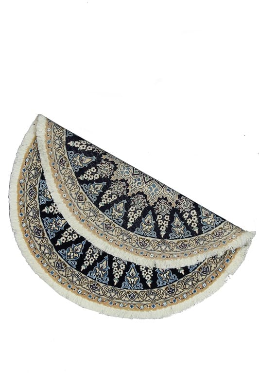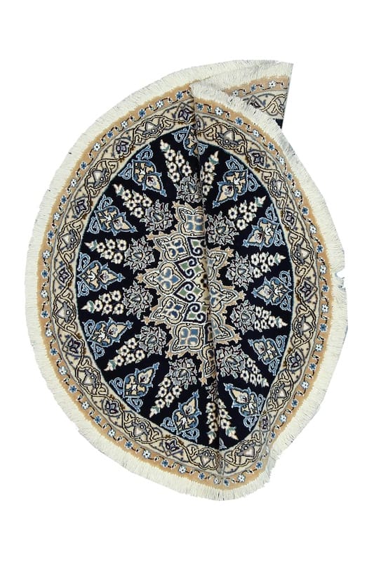 Der runde Nain Teppich in einem eleganten Nachtblau stellt nicht nur eine Bereicherung für jeden Wohnraum dar, sondern ist auch ein wahres Kunstwerk der Handwerkskunst. Handgeknüpft und von herausragender Qualität, besticht dieser Teppich durch seine feine Verarbeitung und zahlreiche traditionelle Details, die in jeder Faser sichtbar sind. Er stammt aus der renommierten Teppichstadt Nain im Iran, bekannt für ihre exquisiten Perserteppiche.