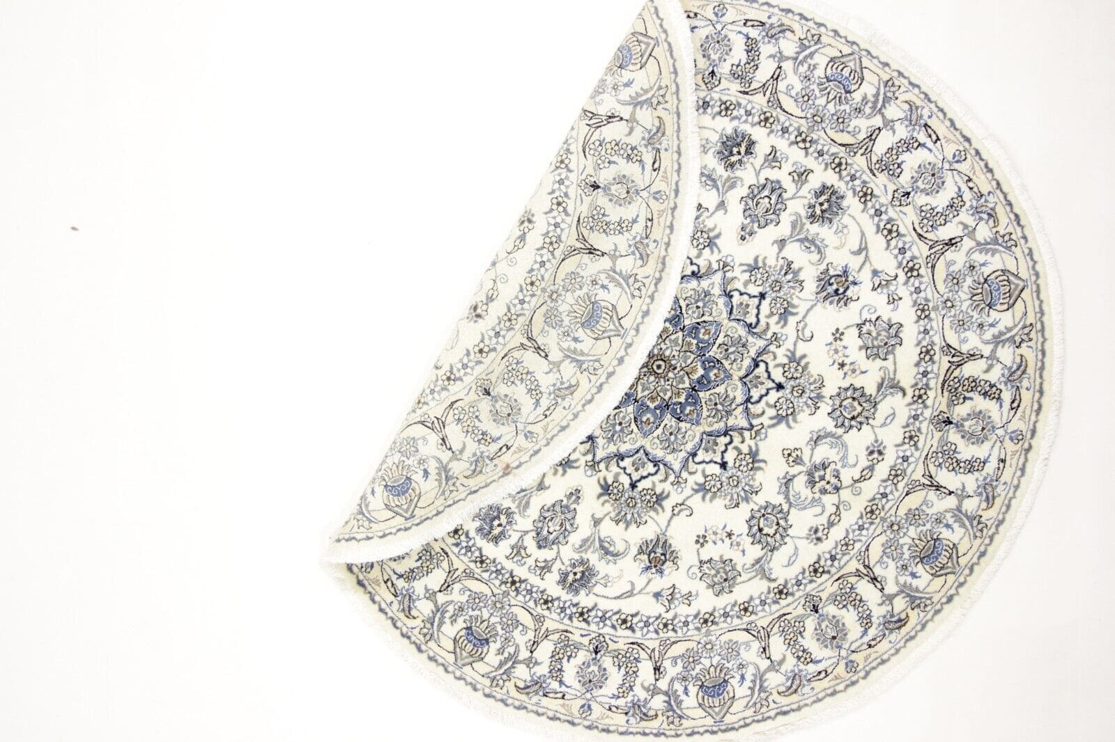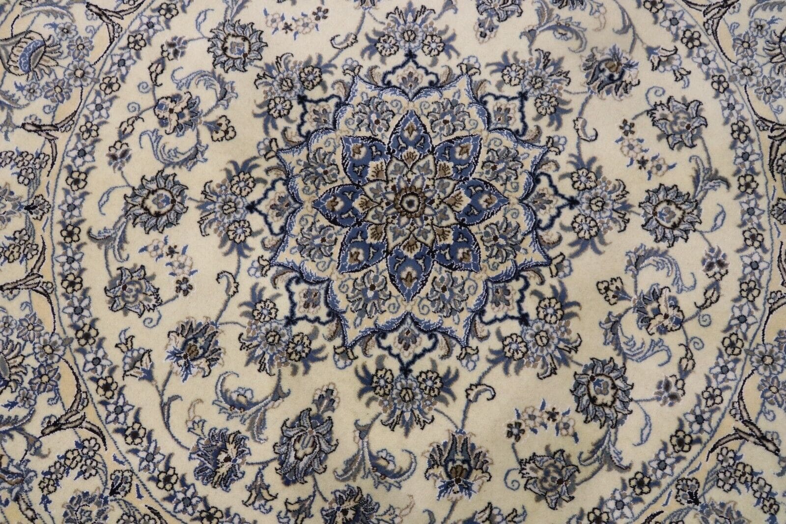 Orientteppich super Nain | Größe: 200 x 200 cm | Knotendichte: ca. 300.000 Knoten/m² | Material: 90% Schurwolle, 10% Seide | Zustand: Neu, perfekt | Herkunft: Persien | Dicke: ca. 8 mm | Handgeknüpft, geeignet für Fußbodenheizung | Muster: Orientalisch | Farbe: Weiß | Für alle Zimmer geeignet