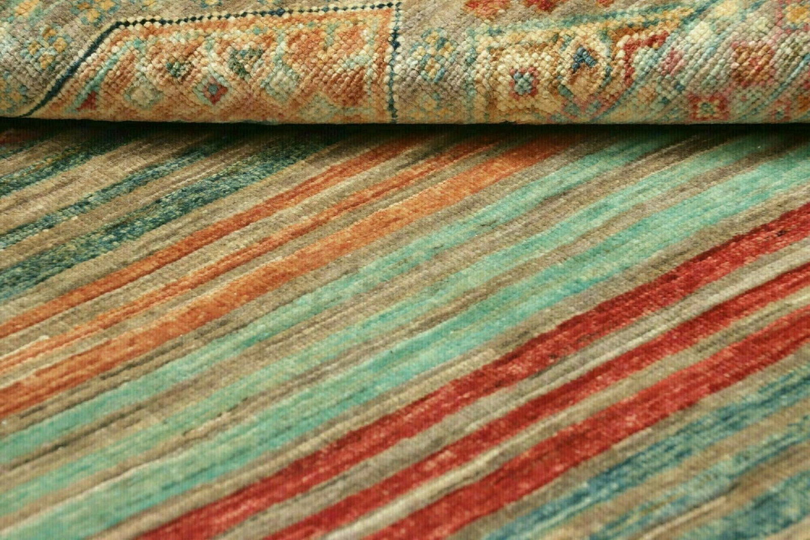 Der Samarkand Orientteppich ist aus feiner, hochwertiger Wolle gefertigt, die für ihre Robustheit und angenehme Haptik bekannt ist. Wolle als Material sorgt dafür, dass der Teppich sowohl Wärme als auch Komfort bietet, während er gleichzeitig für seine schmutzabweisenden Eigenschaften geschätzt wird. Die handgeknüpfte Technik verleiht dem Teppich eine hohe Knotendichte, die dem Stück nicht nur Stabilität verleiht, sondern auch eine beeindruckende Detailgenauigkeit in der Gestaltung der Muster und Symbole ermöglicht.
