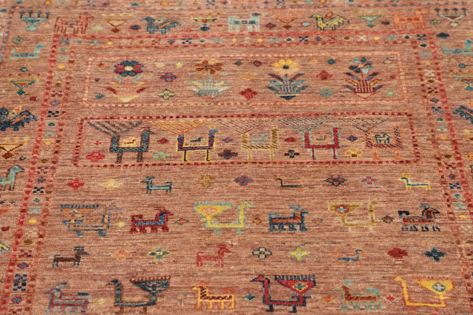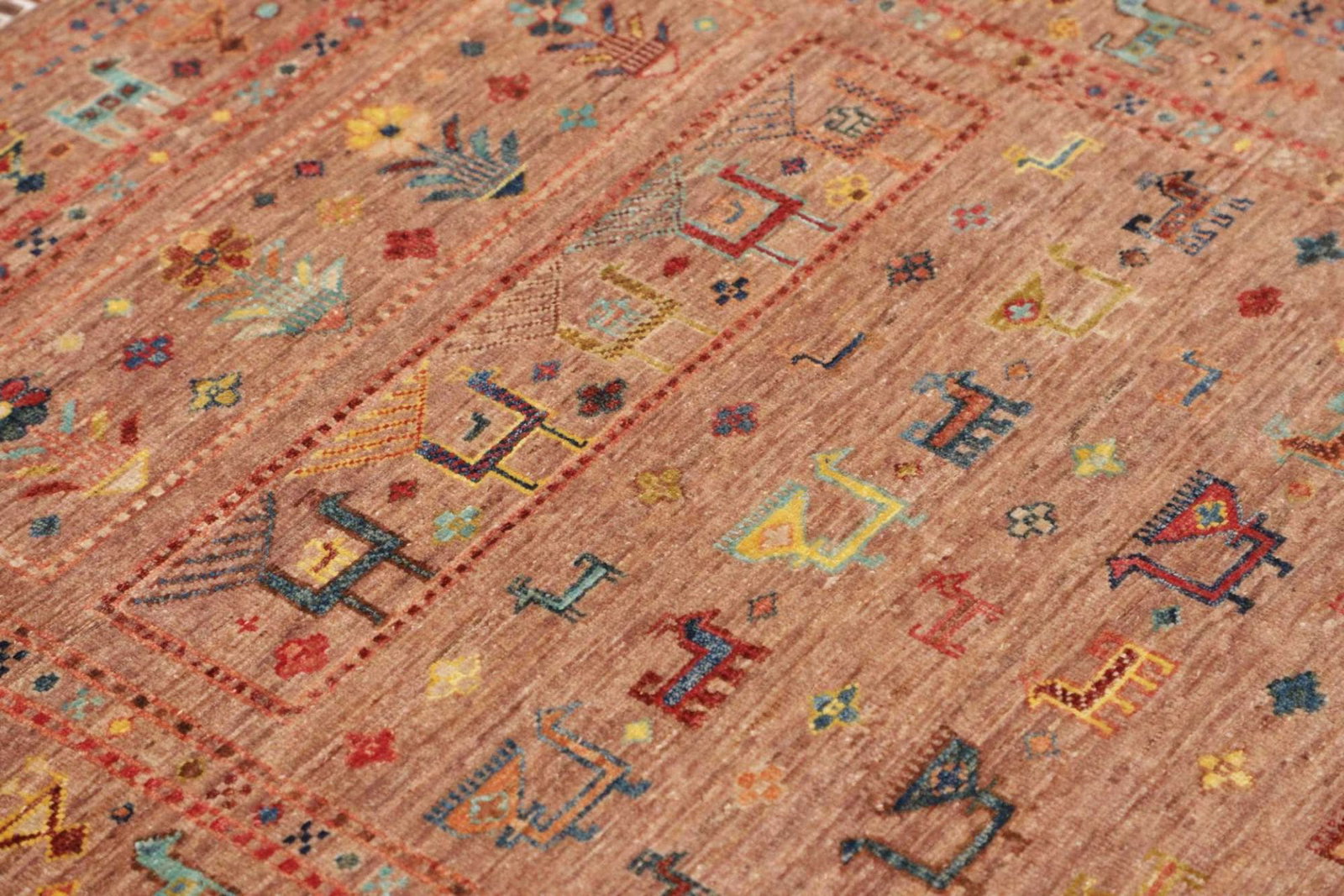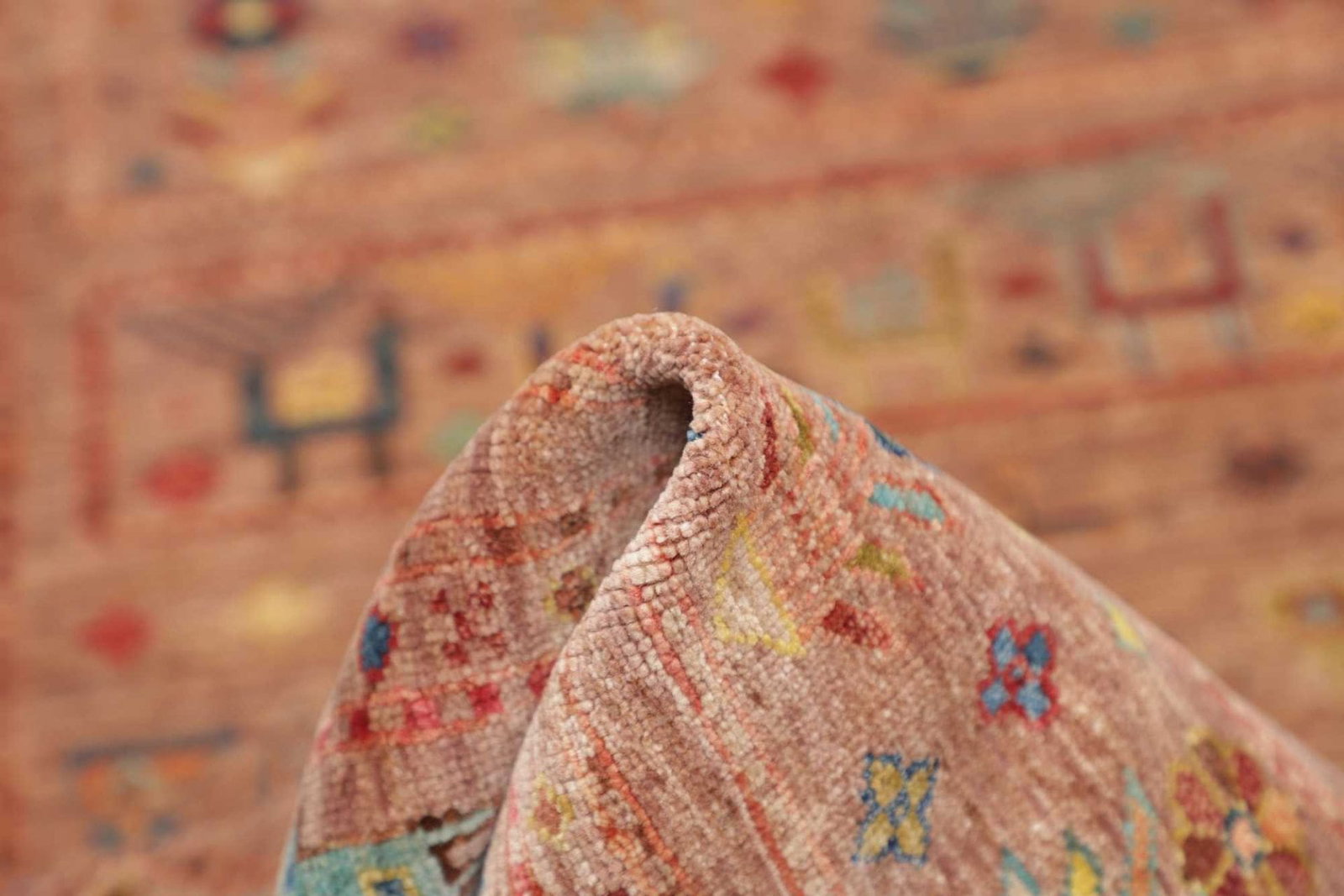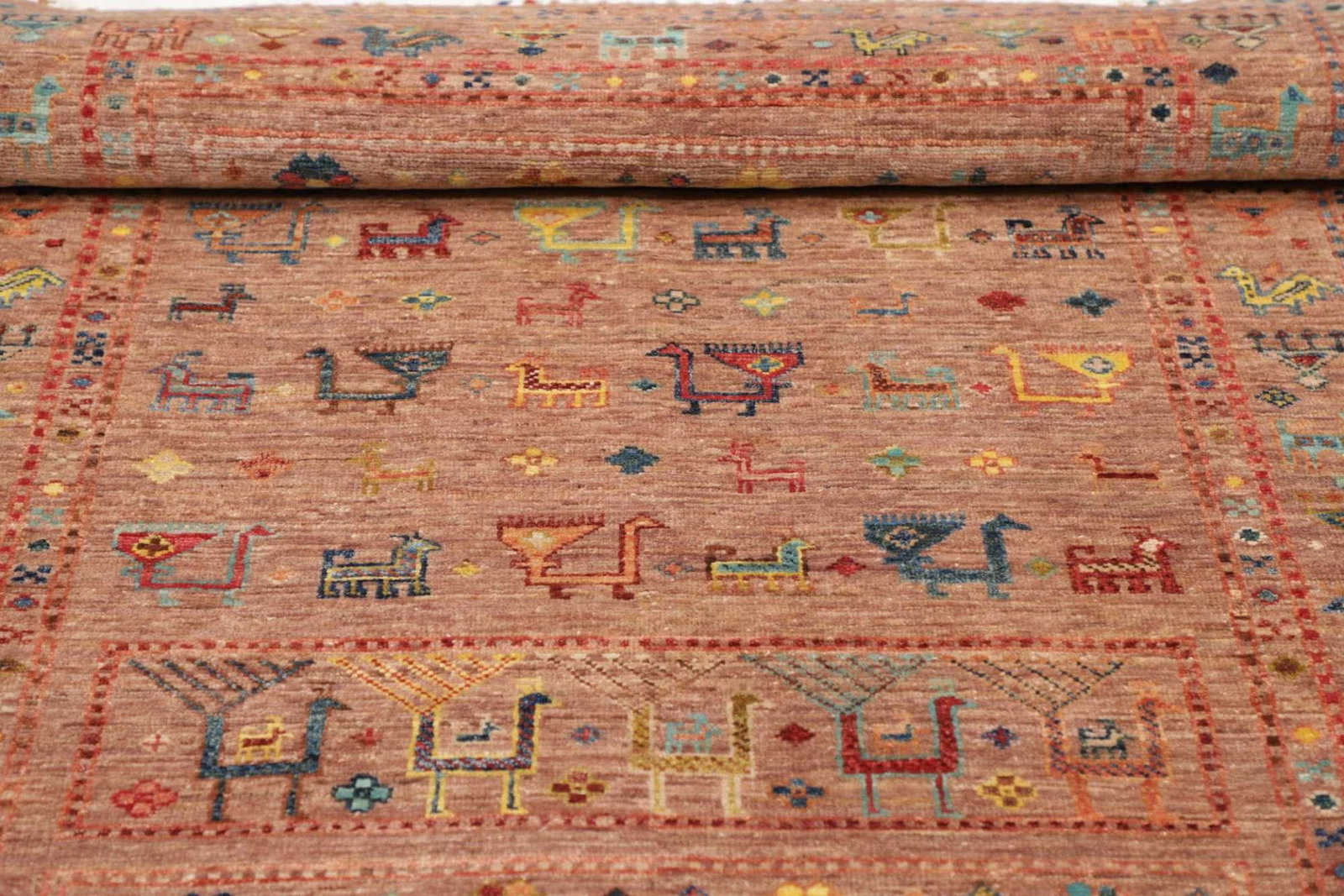 Hergestellt aus 100% Schurwolle, liefert dieser Orientteppich eine außergewöhnliche Weichheit und Strapazierfähigkeit. Schurwolle ist bekannt für ihre isolierenden Eigenschaften; sie sorgt sowohl im Winter für Behaglichkeit als auch im Sommer für ein angenehmes Raumklima. Die handgeknüpfte Verarbeitung verleiht dem Teppich zudem eine hervorragende Knotendichte, wodurch eine hohe Lebensdauer garantiert ist. Die fein gearbeiteten Knoten sind ein Zeichen für die Handwerkskunst und machen jeden Teppich zu einem Unikat.
