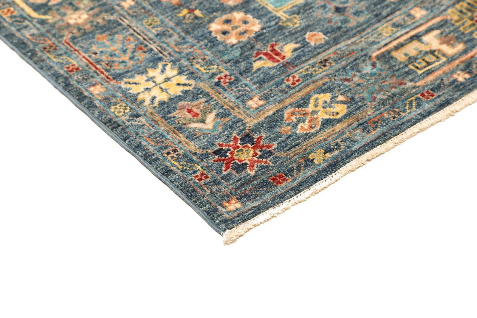 Der handgeknüpfte Samarkand Orientteppich ist nicht nur ein Wohnaccessoire, sondern auch ein Kunstwerk, das jede Ecke Ihres Zuhauses bereichern kann. Seine Stärke liegt in der Kombination von traditioneller Handwerkskunst mit zeitgenössischem Design. Dank der hohen Knotendichte ist der Teppich extrem langlebig und kann auch in stark frequentierten Bereichen eingesetzt werden. Zudem sorgt die Schurwolle dafür, dass der Teppich pflegeleicht und robust ist, wodurch er auch in Familienhaushalten ideal geeignet ist.