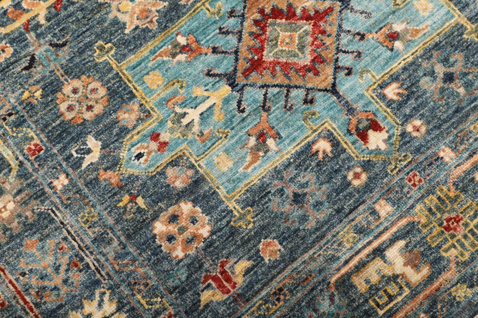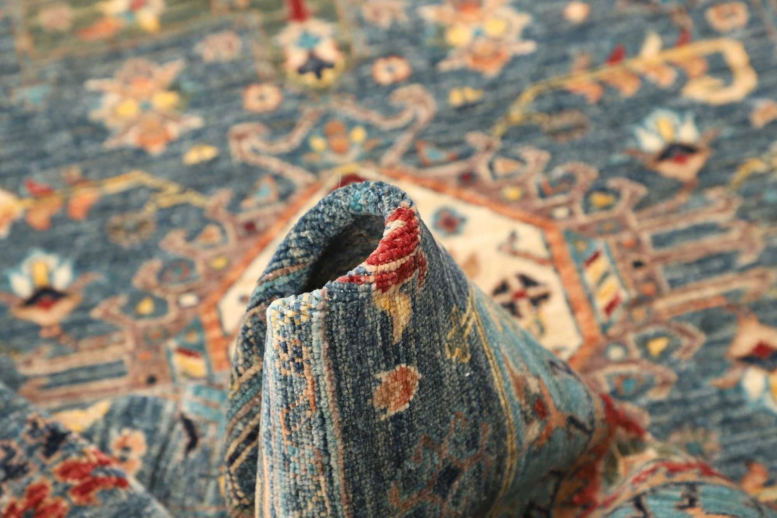 Hergestellt aus hochwertiger Schurwolle ist der Samarkand Orientteppich nicht nur strapazierfähig, sondern auch besonders angenehm im Umgang. Wolle ist die bevorzugte Wahl für viele Teppichliebhaber, da sie natürliche isolierende Eigenschaften bietet, die das Raumklima positiv beeinflussen können. Die handgeknüpfte Technik sorgt für eine hohe Knotendichte, was sich in der Langlebigkeit und Qualität des Teppichs widerspiegelt. Jede Faser ist bis ins kleinste Detail durchdacht und trägt zur Gesamtästhetik des Teppichs bei.