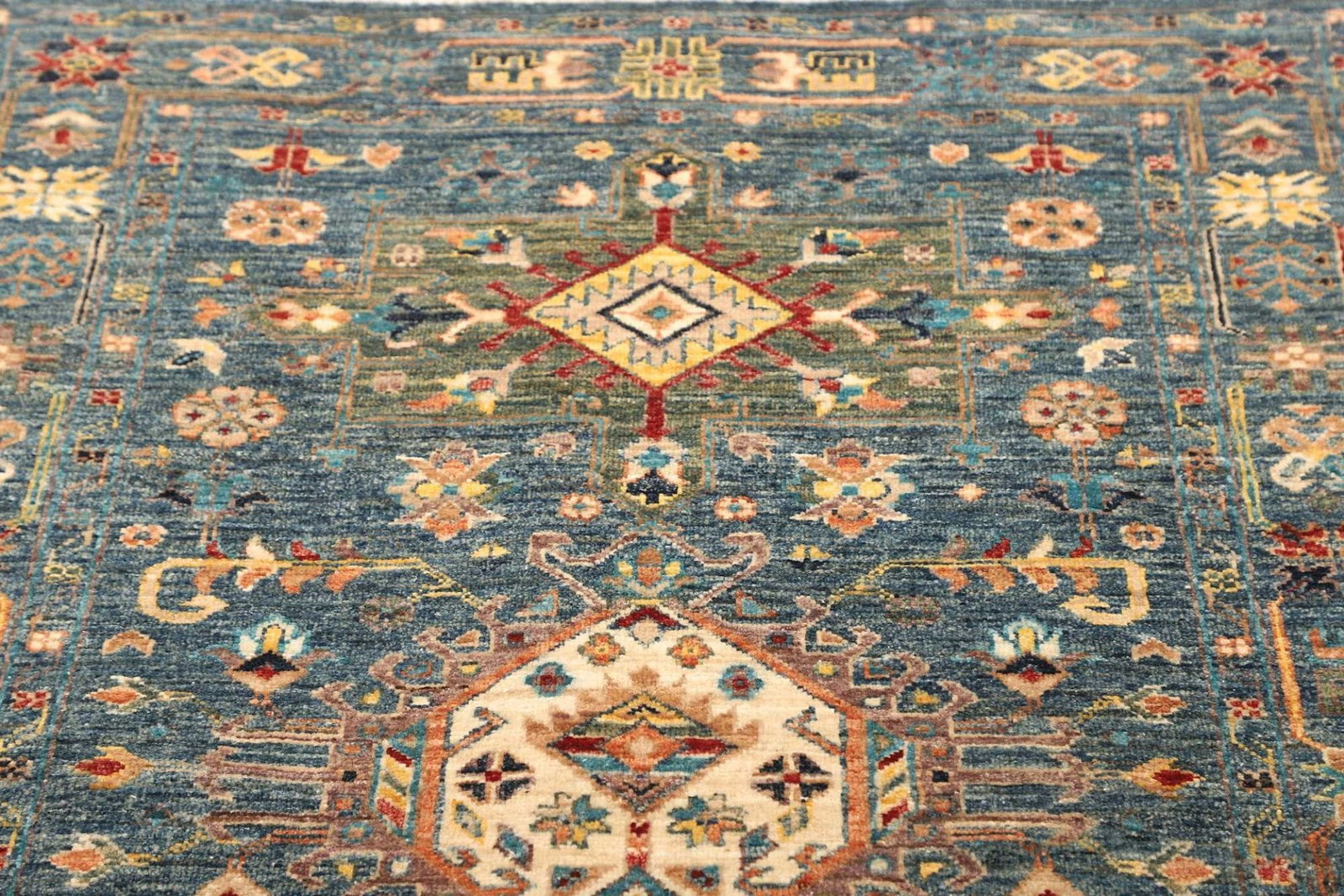 Der Samarkand Orientteppich vereint eine Vielzahl von klassischen und modernen Mustern, die die Schönheit und Vielfalt orientalischer Kunst widerspiegeln. Die Verwendung lebendiger Farben kombiniert mit harmonischen Mustern kreiert eine Atmosphäre von Eleganz und Stil. Jedes Design ist sorgfältig durchdacht und vermittelt ein Gefühl von Geschichte und Kultur.
