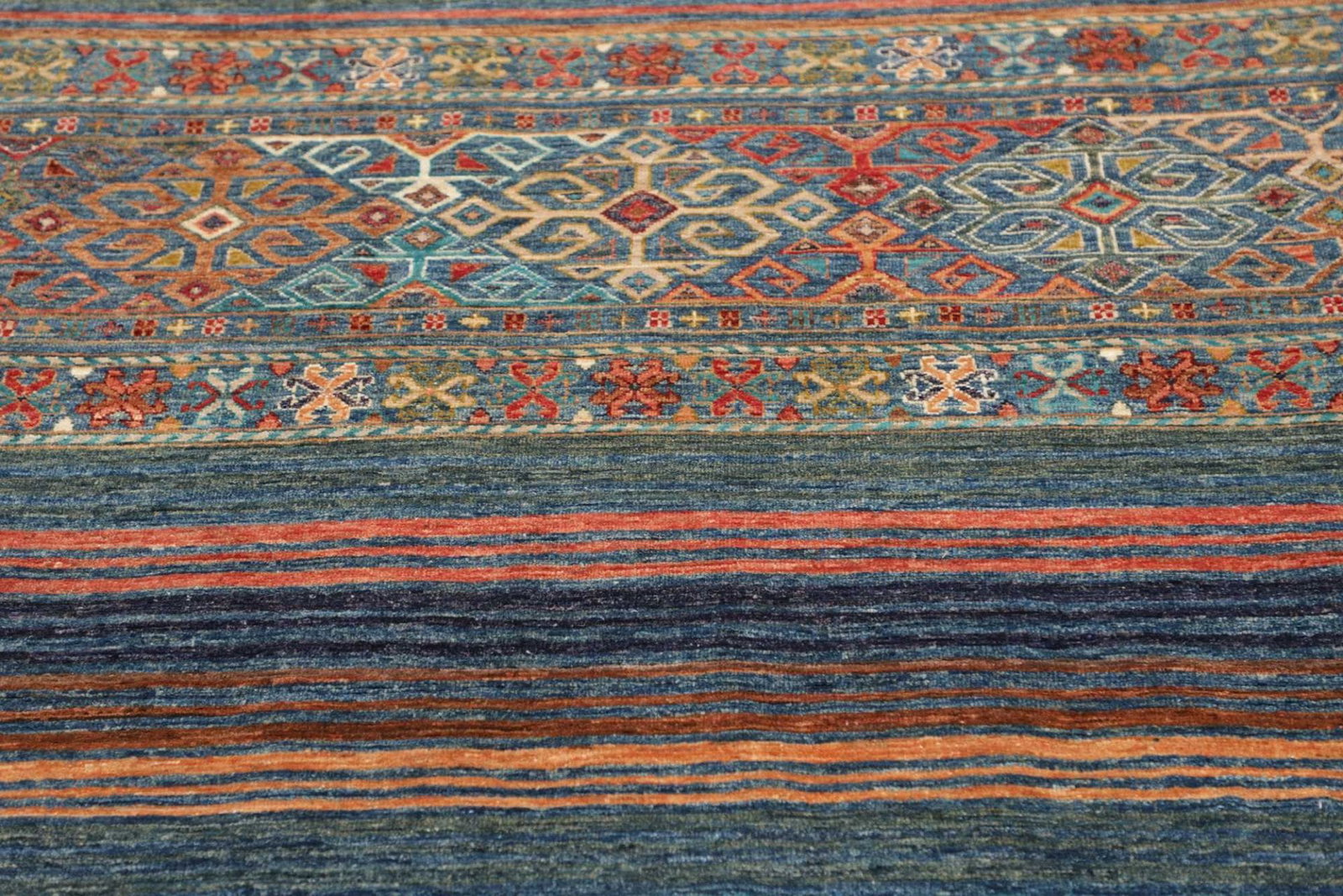 Das Design dieses Samarkand Orientteppichs zeigt eine gelungene Kombination aus traditionellen Mustern und modernen Designelementen. Die harmonischen Farbnuancen und die geschickte Anordnung der Muster ermöglichen eine flexible Integration in verschiedene Einrichtungsstile, seien es klassisch, modern oder Boho. Mit seiner einzigartigen Ästhetik wird dieser Teppich schnell zum Blickfang in jedem Raum.