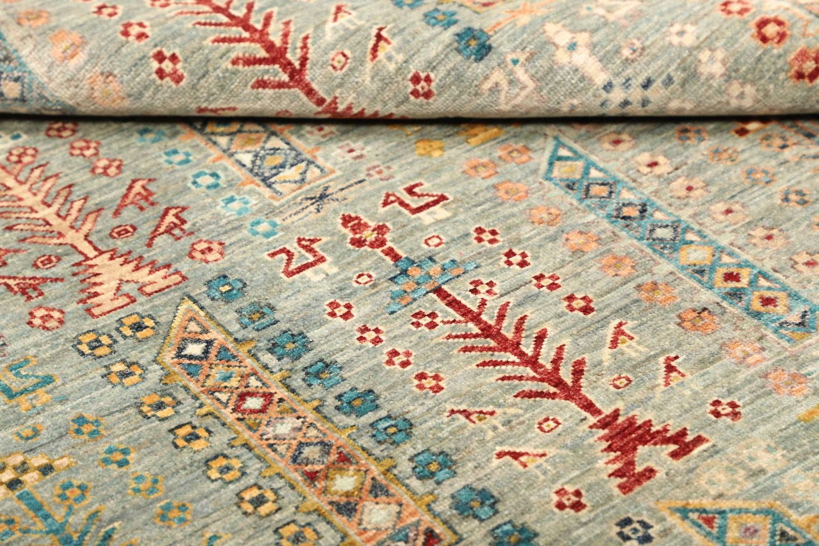 Der Samarkand Orientteppich besteht aus reiner Schurwolle, die für ihre Weichheit und Widerstandsfähigkeit bekannt ist. Schurwolle ist nicht nur ein nachhaltiges Material, sondern bietet auch eine hervorragende Wärmeisolierung und ist zudem schmutzabweisend, was die Pflege und Reinigung des Teppichs erleichtert. Dank der handgeknüpften Technik wird jeder Teppich zum Unikat, wobei die Knüpfmethoden von erfahrenen Handwerkern mit einer tiefen Kenntnis der Traditionen durchgeführt werden.