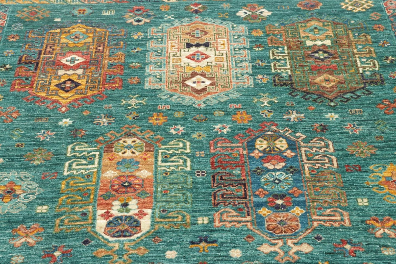 2588$Ursprünglicher Preis war: 2588$2038$Aktueller Preis ist: 2038$Samarkand Tribal Teppich | Knotendichte: ca. 200.000 Knoten/m² | Material: 100% Schurwolle mit Baumwollkette | Größe: 129 x 189 cm | Höhe: ca. 5-7 mm | Herkunft: Pakistan | Handgeknüpfte Qualität | Strapazierfähig und langlebig