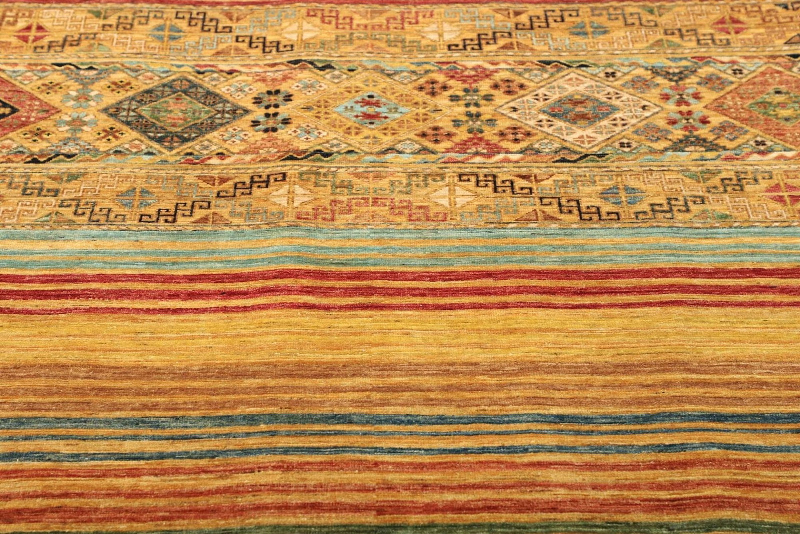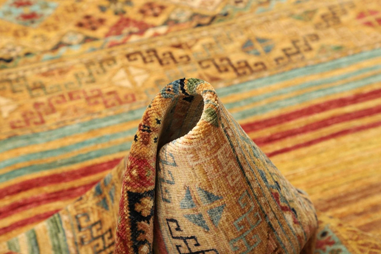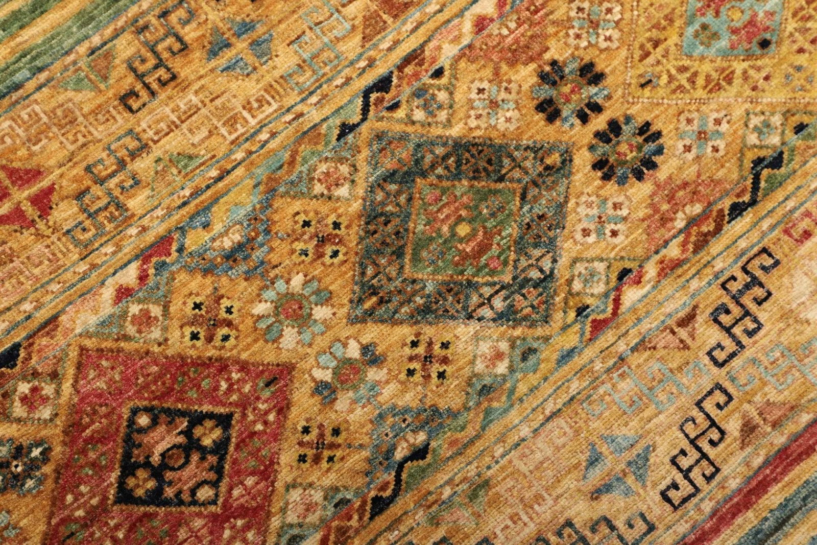 Dieser Teppich besteht aus hochwertiger Schurwolle, die für ihre Weichheit und Langlebigkeit bekannt ist. Schurwolle bietet zudem hervorragenden Komfort und Isolierung, was den Teppich besonders angenehm macht. Die Verwendung von natürlichen Materialien gewährleistet nicht nur eine umweltfreundliche Herstellung, sondern auch sehr gute Pflegeeigenschaften. Die Knotendichte ist bei handgeknüpften Teppichen besonders hoch, was zeigt, dass viel Aufwand in die Herstellung geflossen ist. Dies trägt zur Strapazierfähigkeit und zur Erhaltung der Farben über viele Jahre hinweg bei.