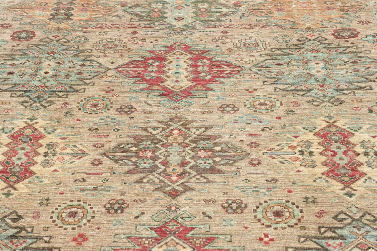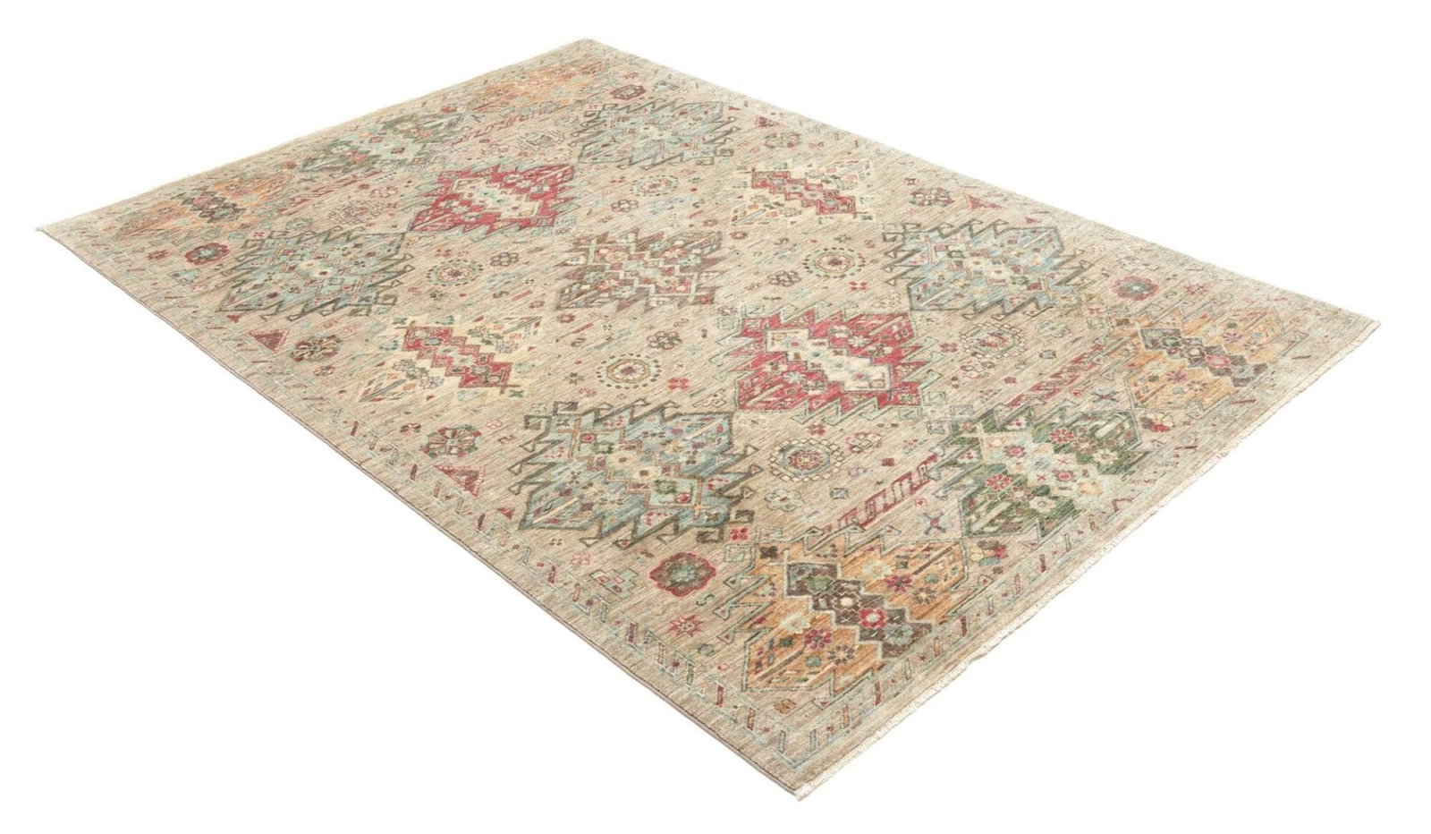 Der Samarkand Orientteppich ist nicht nur ein praktischer Bodenbelag, sondern auch ein Kunstwerk für sich. Er überzeugt durch seine leuchtenden, bunten Farben und ein ansprechendes Muster, das einen harmonischen Gesamteindruck vermittelt. Typisch für die Teppiche aus dieser Region sind florale und geometrische Designs, die oft symbolische Bedeutungen tragen. Die verschiedenen Farbtöne sind nicht zufällig gewählt, sondern oft eine Hommage an die Natur und die Umgebung von Samarkand. In Kombination mit der hochwertigen Wolle und der traditionellen Knotentechnik entsteht ein Teppich, der sowohl modern als auch zeitlos ist und sich harmonisch in jede Einrichtung einfügt.
