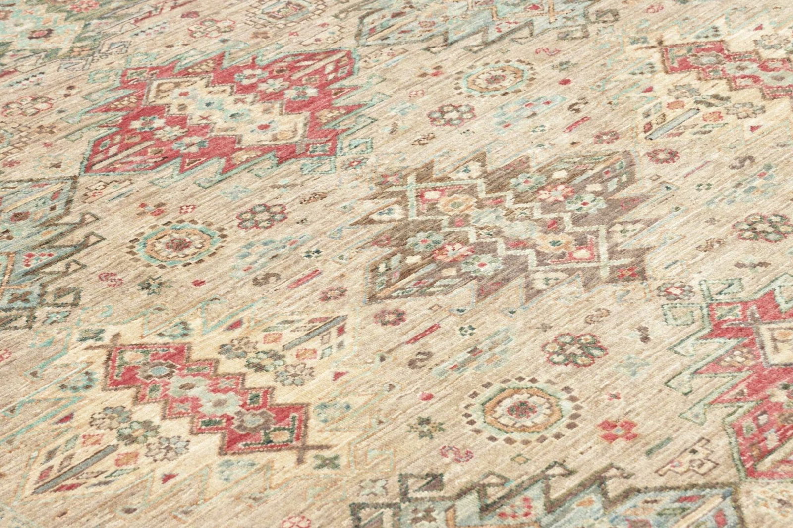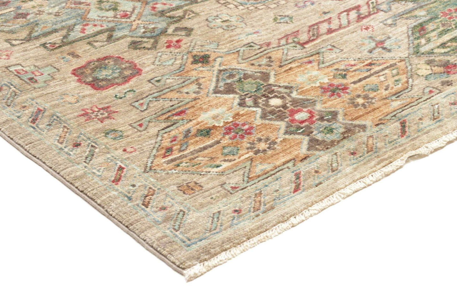 Der Samarkand Orientteppich zeichnet sich durch seine hochwertige Verarbeitung und die Verwendung erstklassiger Materialien aus. Gewebt aus feinen Wollen, bietet er eine angenehme Weichheit und Strapazierfähigkeit. Dank der traditionellen Knotentechnik, die von erfahrenen Kunsthandwerkern beherrscht wird, weist der Teppich eine hohe Knotendichte auf. Diese Detailgenauigkeit gewährleistet nicht nur eine lange Lebensdauer, sondern auch eine exquisite Optik, die selbst kleine Fehler in der Verarbeitung nahezu unmöglich macht.