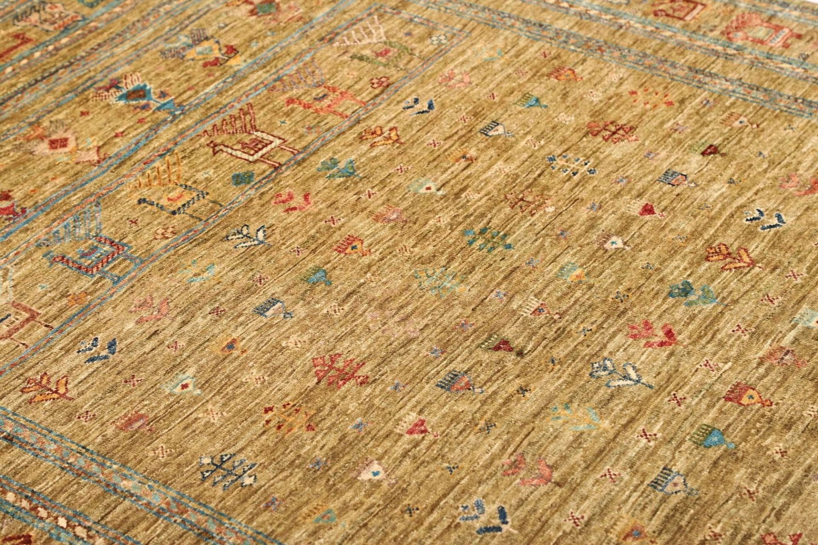 Der Einsatz von Wolle in der Herstellung dieses Teppichs stellt einen entscheidenden Vorteil dar. Wolle ist nicht nur unempfindlich gegenüber Schmutz, sondern hat auch von Natur aus isolierende Eigenschaften, die für ein angenehmes Wohnklima sorgen. Die Handknüpfung garantiert, dass jeder Knoten mit Sorgfalt und Präzision gesetzt wird, wodurch die Knotendichte hoch ist und der Teppich eine ausgezeichnete Struktur erhält. Die Fertigungstechnik ermöglicht es, kompakte und äußerst detaillierte Muster zu erstellen, die stilvolle Akzente in Ihrer Wohnung setzen.