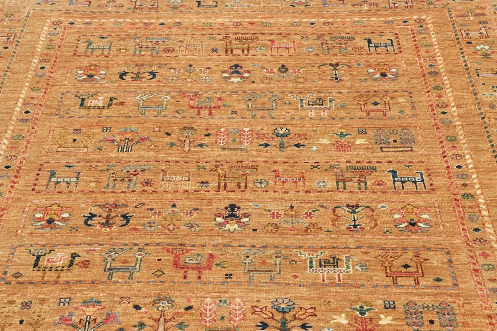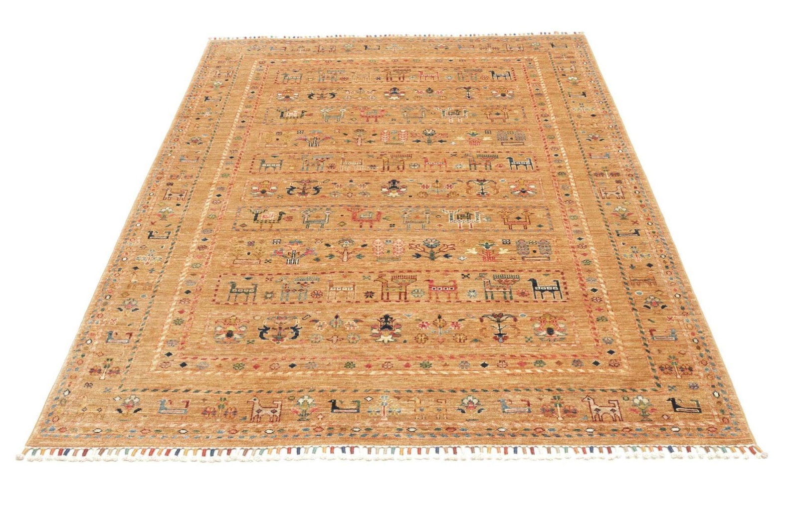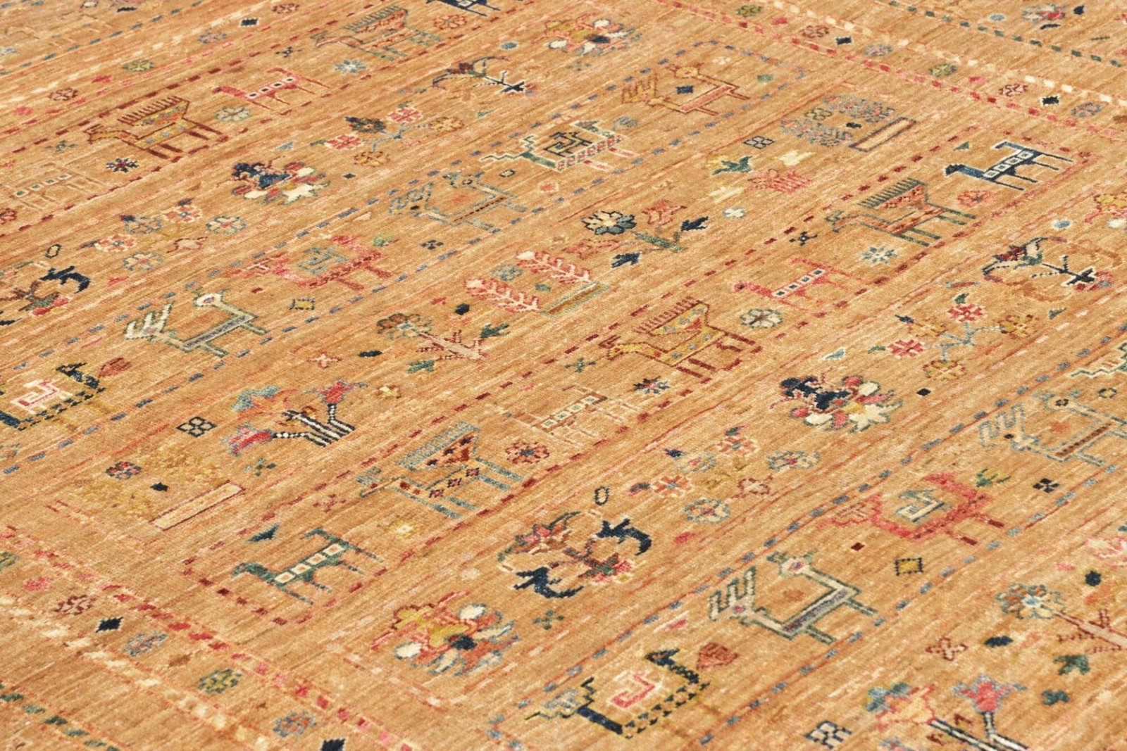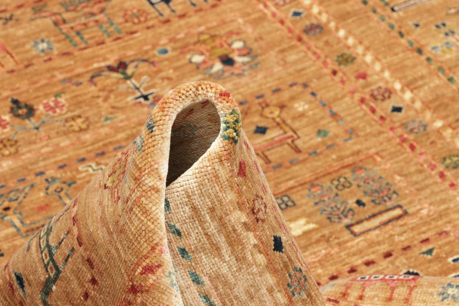 Der Samarkand Orientteppich besticht durch die Verwendung von reiner Schurwolle, die für ihre Langlebigkeit und Weichheit bekannt ist. Die Schurwolle wird aus den feinsten Fasern gewonnen und bietet eine angenehme Haptik sowie eine hohe Strapazierfähigkeit. Die Teppiche dieser Art werden traditionell per Hand geknüpft, was höchste Qualität und Sorgfalt in der Produktion sicherstellt. Mit einer hohen Knotendichte entspricht dieser Teppich den Ansprüchen an einen langlebigen und stabilen Bodenbelag, der auch bei intensiver Nutzung seine Schönheit bewahrt.