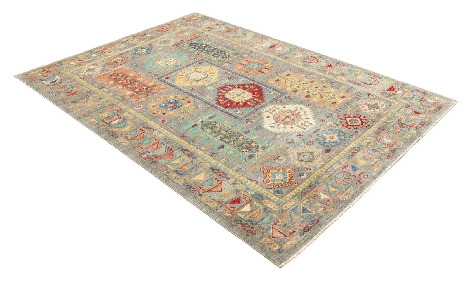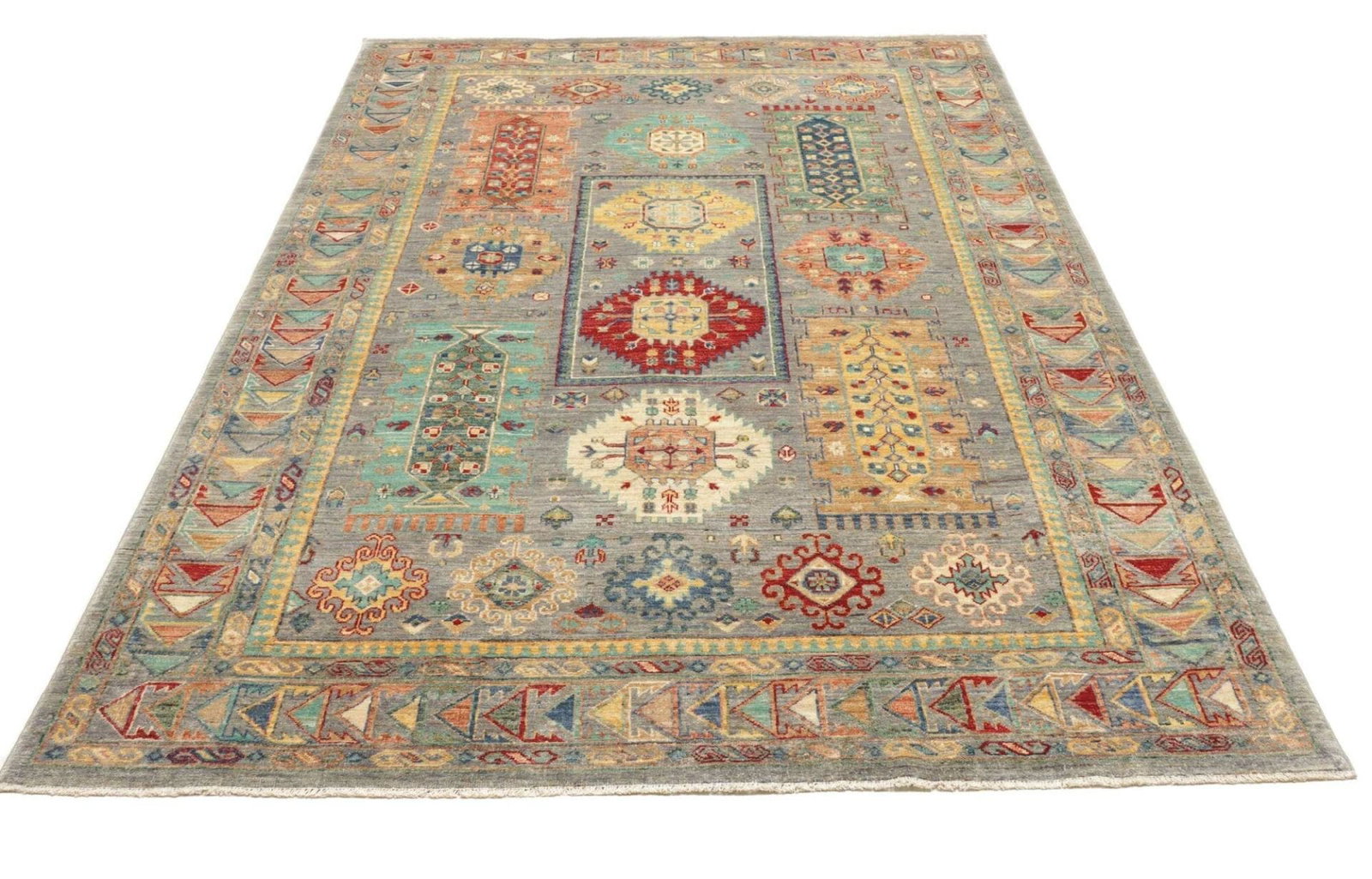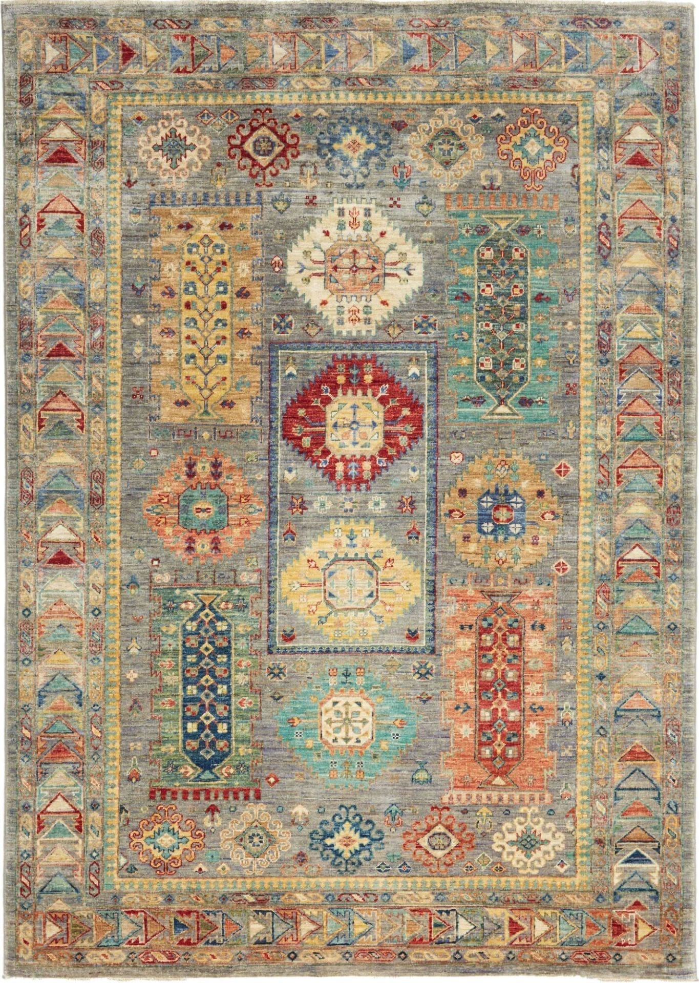 4198$Ursprünglicher Preis war: 4198$2929$Aktueller Preis ist: 2929$Samarkand Tribal Teppich | Knotendichte: ca. 200.000 Knoten/m² | Material: 100% Schurwolle | Größe: 168 x 238 cm | Herkunft: Pakistan | Zustand: Handgeknüpft, hohe Strapazierfähigkeit | Besonderheit: Modernes, orientalisches Muster, farbenfroher Charakter
