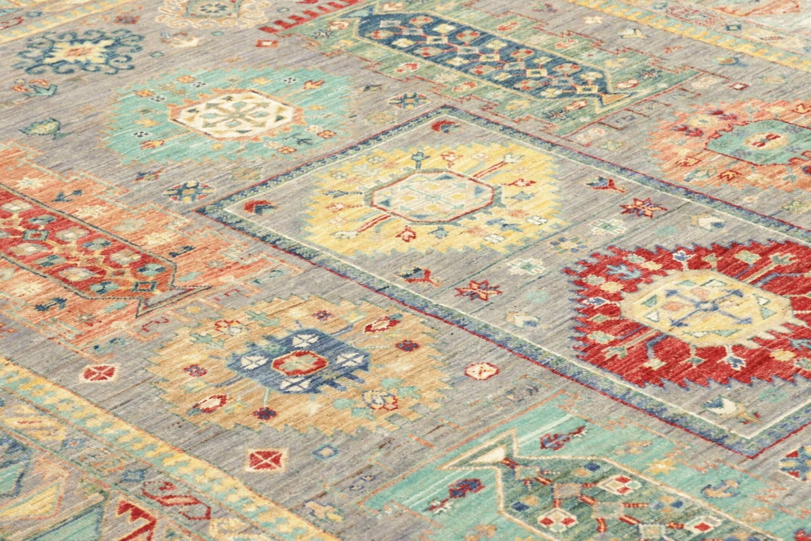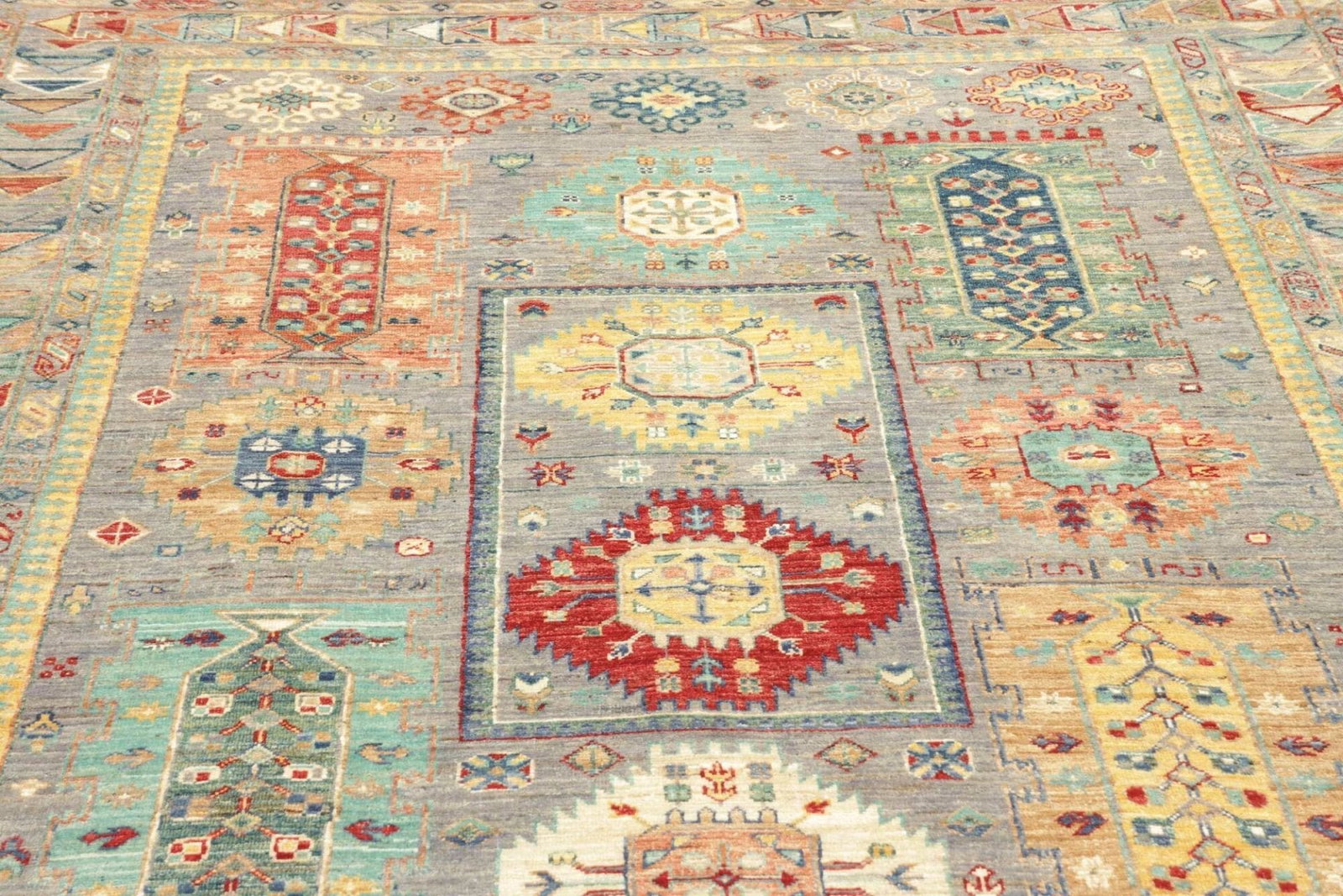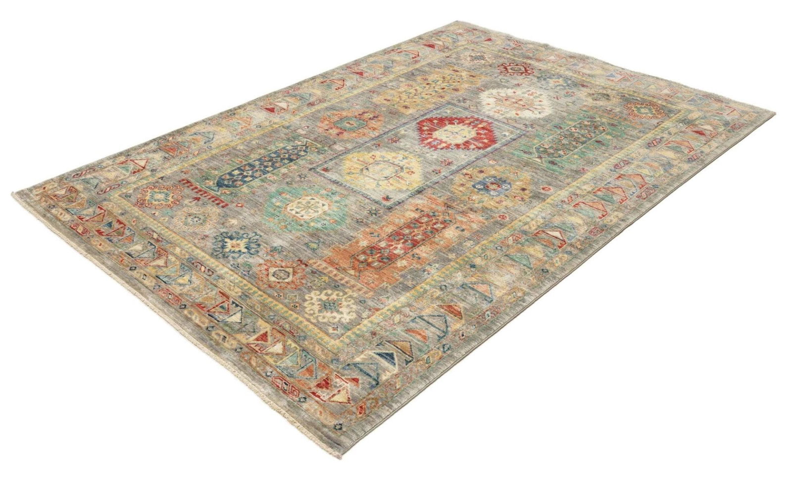 4198$Ursprünglicher Preis war: 4198$2929$Aktueller Preis ist: 2929$Samarkand Tribal Teppich | Knotendichte: ca. 200.000 Knoten/m² | Material: 100% Schurwolle | Größe: 168 x 238 cm | Herkunft: Pakistan | Zustand: Handgeknüpft, hohe Strapazierfähigkeit | Besonderheit: Modernes, orientalisches Muster, farbenfroher Charakter