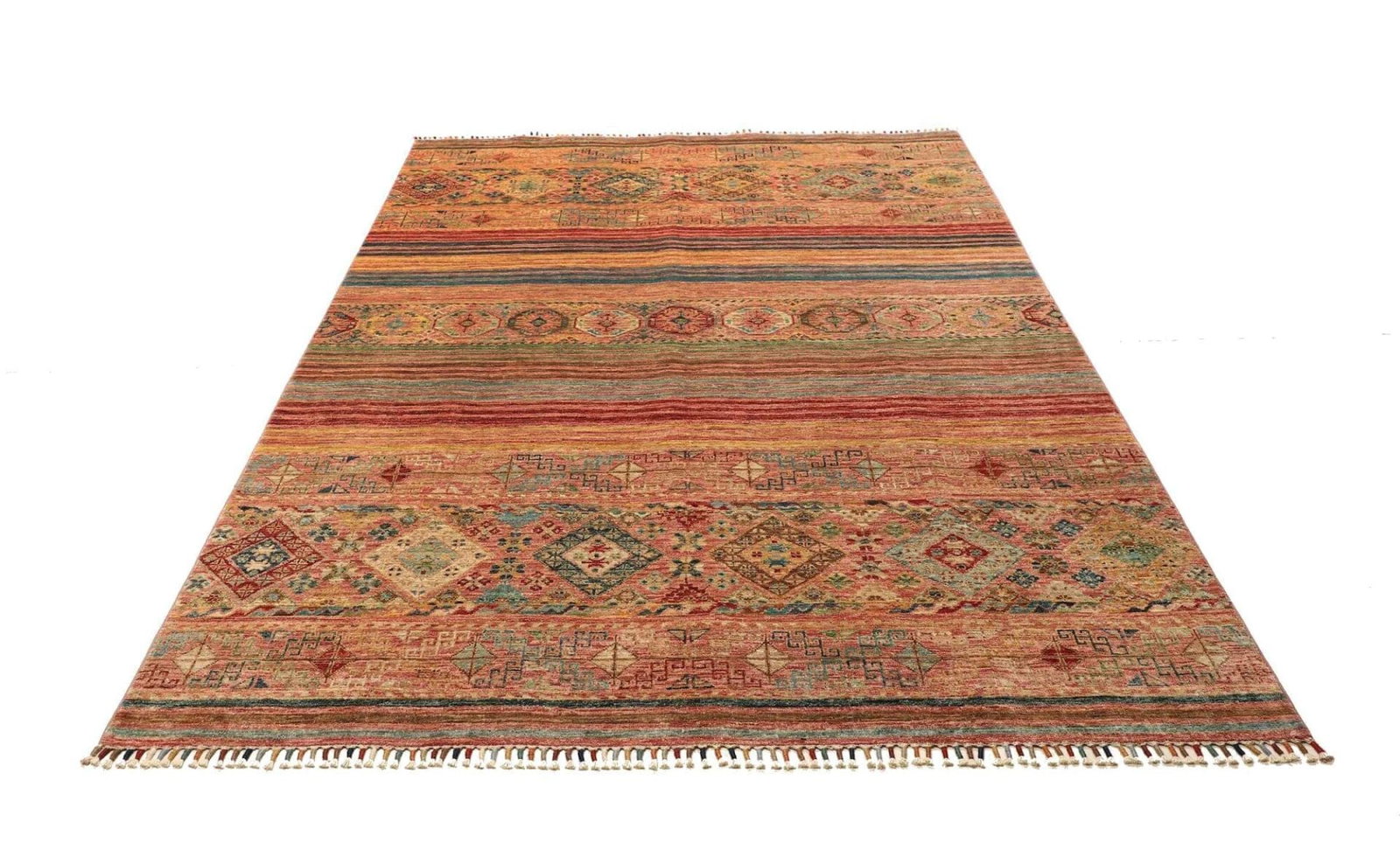 Darüber hinaus eignen sich Orientteppiche wie dieser ideal für vielfältige Wohnstile, von modern bis traditionell. Sie fügen sich mühelos in Ihre Einrichtung ein und verleihen jedem Raum eine authentische Note von Orientalischem Flair. Egal, ob im Wohnzimmer, im Schlafzimmer oder als Blickfang im Flur – der Samarkand Orientteppich ist ein zeitloses Stück, das jeder Einrichtung einen Hauch von Eleganz verleiht.