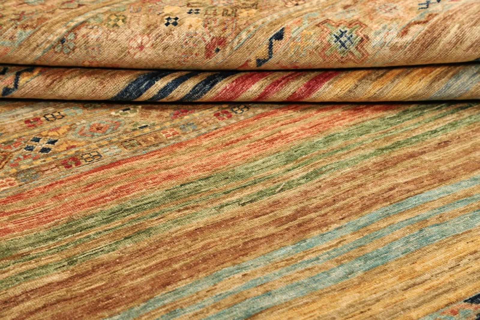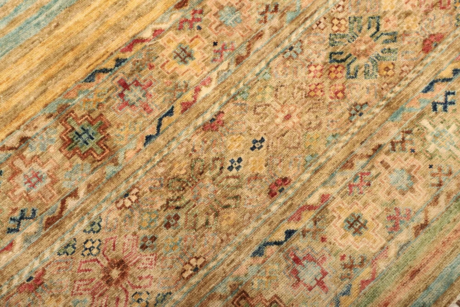 Der Teppich besteht aus reiner Schurwolle, die für ihre Wärme, Weichheit und Strapazierfähigkeit bekannt ist. Schurwolle hat die besondere Eigenschaft, temperaturregulierend zu wirken und ist gleichzeitig schmutzabweisend, was die Pflege des Teppichs erleichtert. Durch die handgeknüpfte Verarbeitung wird jeder Teppich zu einem Unikat, das sowohl Tradition als auch Kunstfertigkeit verkörpert. Die Knotendichte ist entscheidend für die Stabilität und das Aussehen eines Orientteppichs. Ein höherer Knotenzahl bedeutet eine detailliertere Musterung und eine längere Lebensdauer.