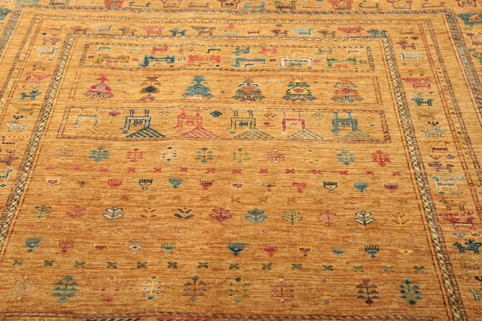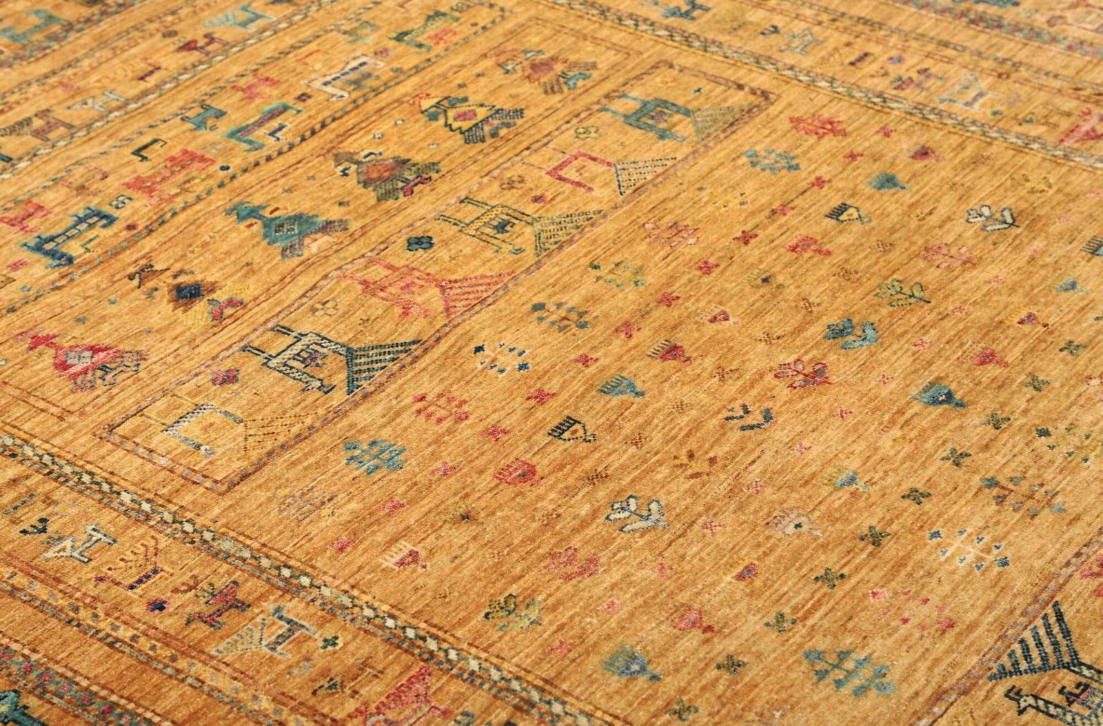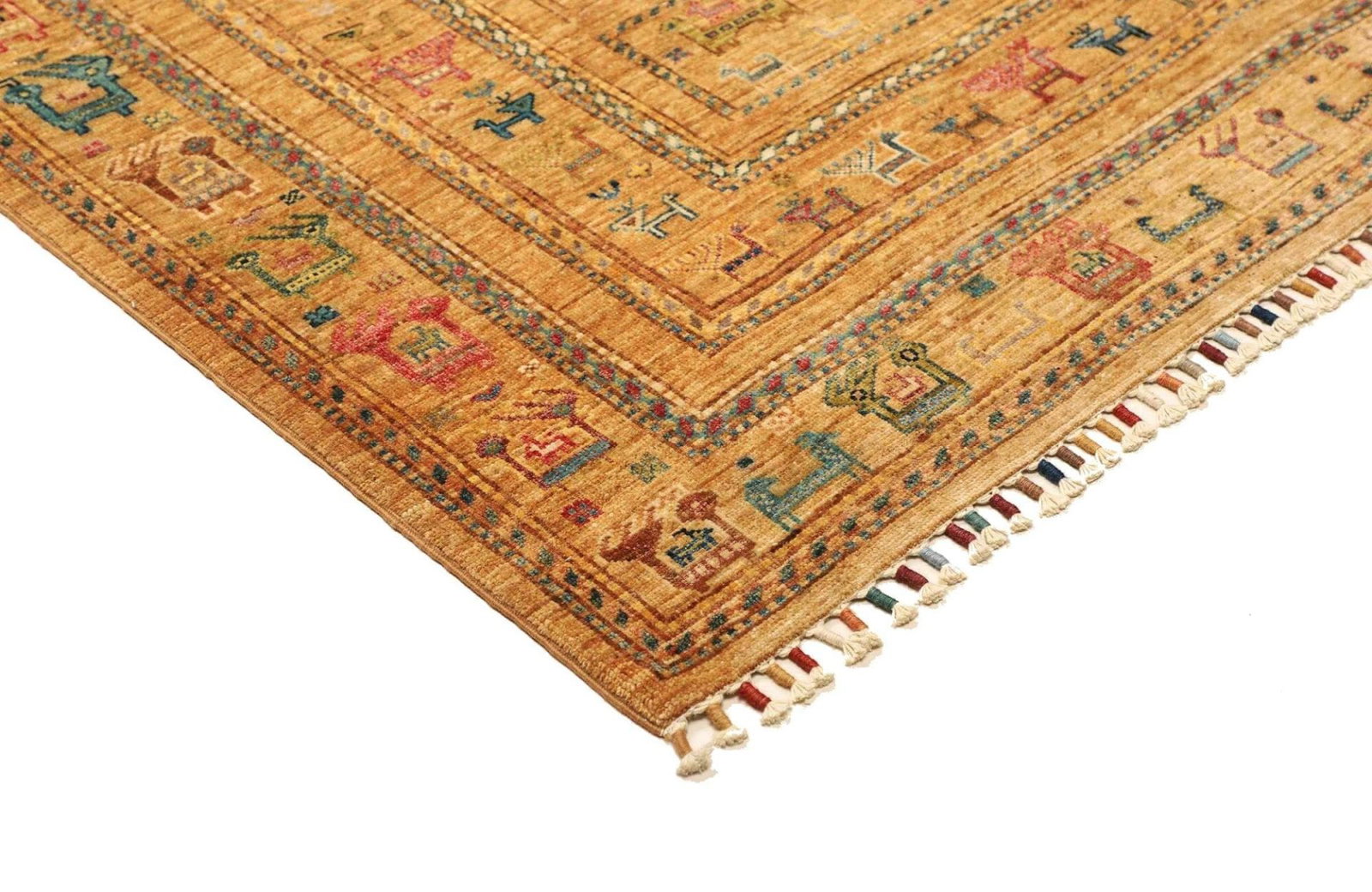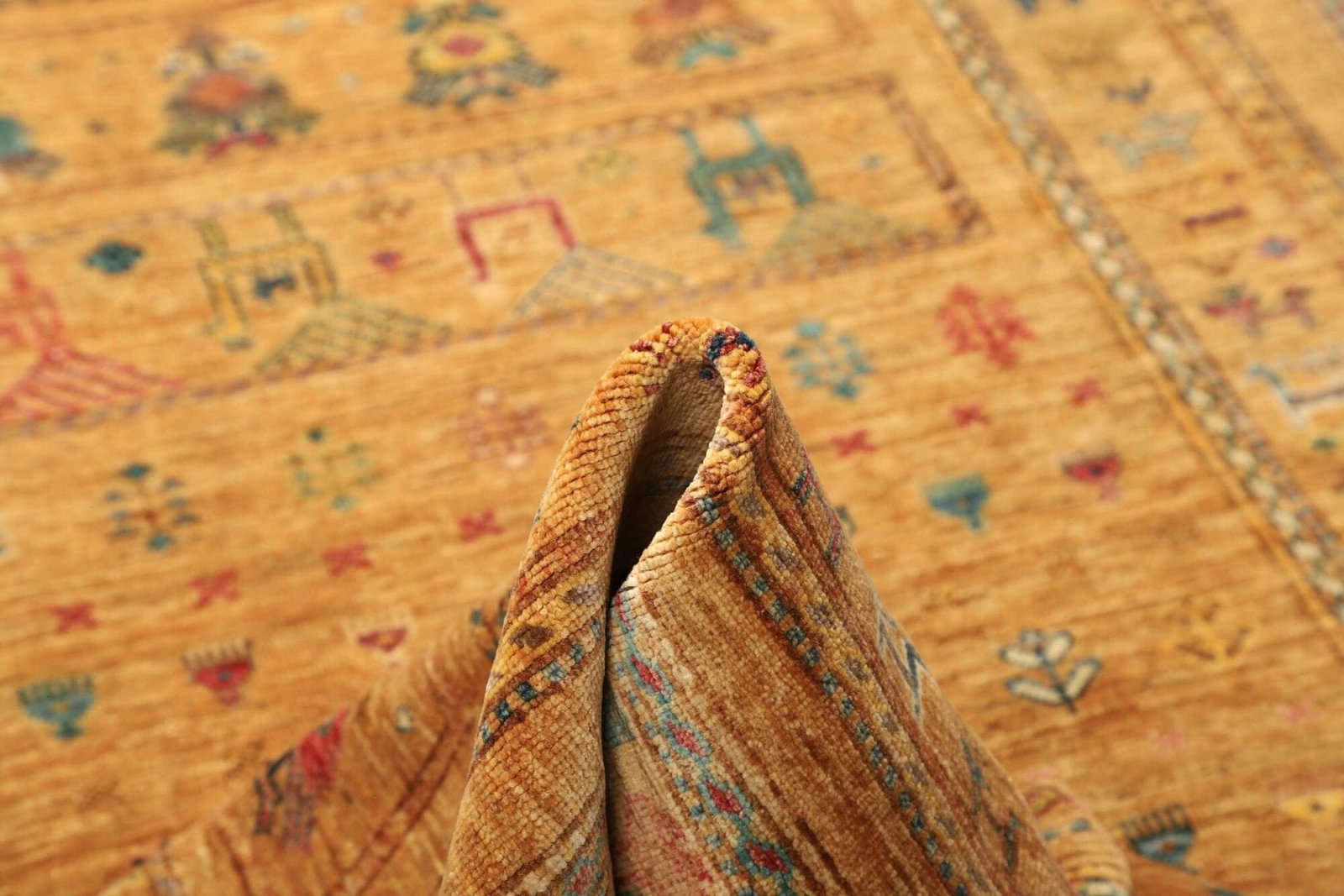 Die Verwendung von Schurwolle als Hauptmaterial macht den Teppich nicht nur besonders komfortabel, sondern auch umweltfreundlich. Schurwolle ist für ihre Temperaturregulierung bekannt; sie sorgt dafür, dass der Teppich sowohl in kalten als auch in warmen Klimazonen angenehm bleibt. Dank der handgeknüpften Technik, die von erfahrenen Kunsthandwerkern eingesetzt wird, zeigt dieser Teppich eine außergewöhnliche Detailgenauigkeit. Die traditionell überlieferten Knüpftechniken sorgen dafür, dass jeder Teppich ein Unikat ist.