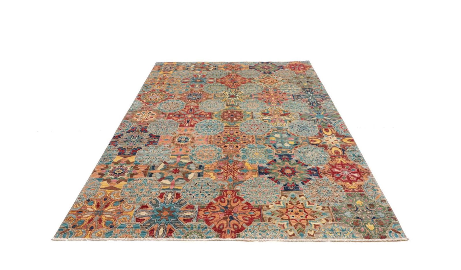 | Samarkand Teppich | Knotendichte: ca. 300.000 Knoten/m² | Material: 100% Schurwolle | Kette: 100% Baumwolle | Größe: 174 x 253 cm | Höhe: ca. 5-7 mm | Herkunft: Pakistan | Zustand: Exzellente handgeknüpfte Qualität | Modernes, orientalisches Muster | Strapazierfähig und langlebig