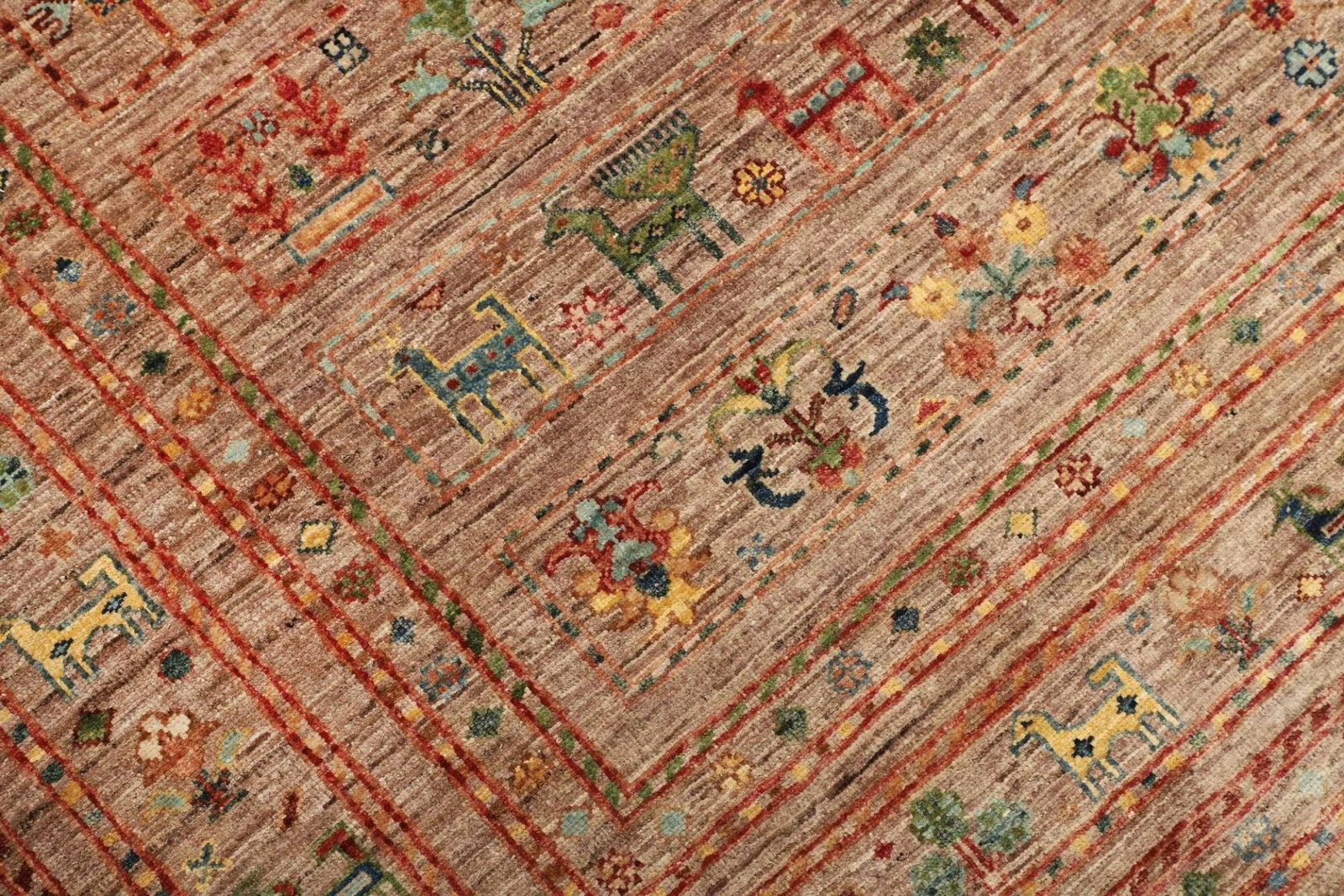Samarkand Teppiche sind bekannt für ihre außergewöhnliche Qualität und die Verwendung edelster Materialien. In der Produktion des Samarkand Orientteppichs wird ausschließlich hochwertige Wolle eingesetzt, die für ihre Langlebigkeit und Weichheit geschätzt wird. Das handgeknüpfte Verfahren verleiht jedem Teppich eine individuelle Note und ein einzigartiges Aussehen. Die Knotendichte ist entscheidend für die Haltbarkeit und das Erscheinungsbild, denn sie bestimmt die Klarheit der Muster und die Langlebigkeit des Teppichs. Hochwertige Orientteppiche wie dieser haben eine hohe Knotenzahl pro Quadratmeter, was sie als besonders wertvoll und anspruchsvoll in der Herstellung kennzeichnet.