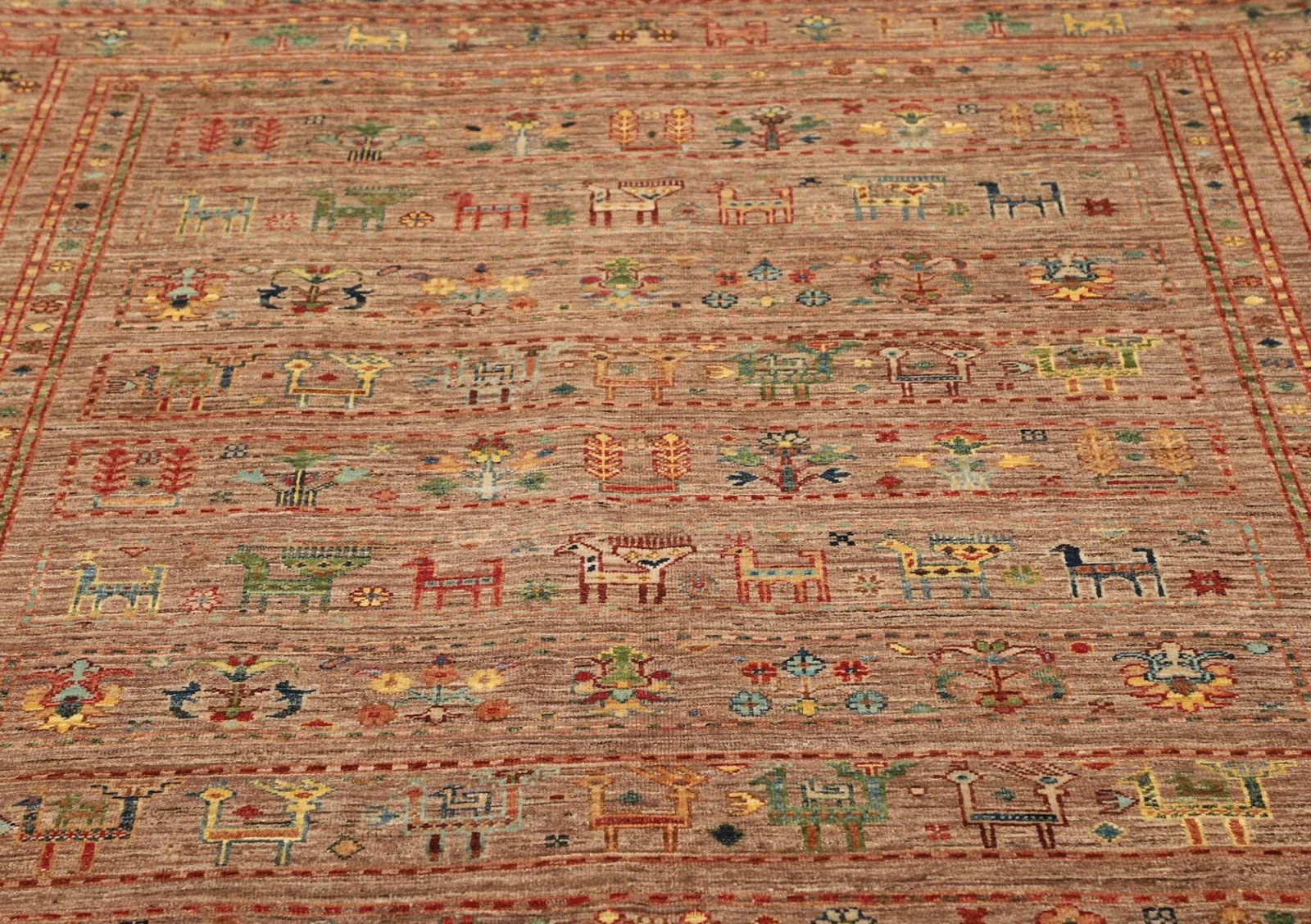 Die Region Samarkand, aus der dieser Teppich stammt, hat eine reiche Teppichtradition, die bis ins 15. Jahrhundert zurückreicht. Samarkand ist nicht nur für seine beeindruckenden architektonischen Meisterwerke bekannt, sondern auch für seine legendären Teppichknüpftraditionen. Diese Stadt war eines der wichtigsten Handelszentren der Seidenstraße, weshalb zahlreiche Kulturen und Einflüsse in die Teppichkunst eingeflossen sind. Die Teppiche aus Samarkand sind oft mit komplexen Mustern verziert, die eine Kombination aus geometrischen und floralen Designs darstellen, die die Schönheit und den Reichtum dieser Region widerspiegeln.