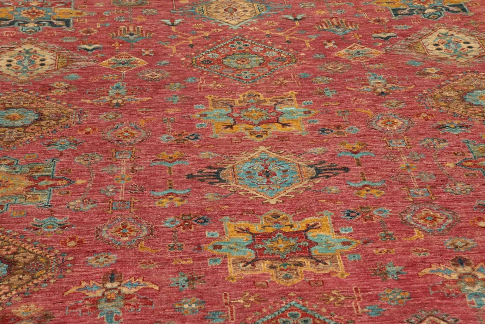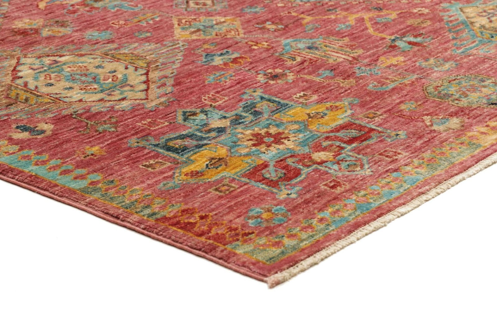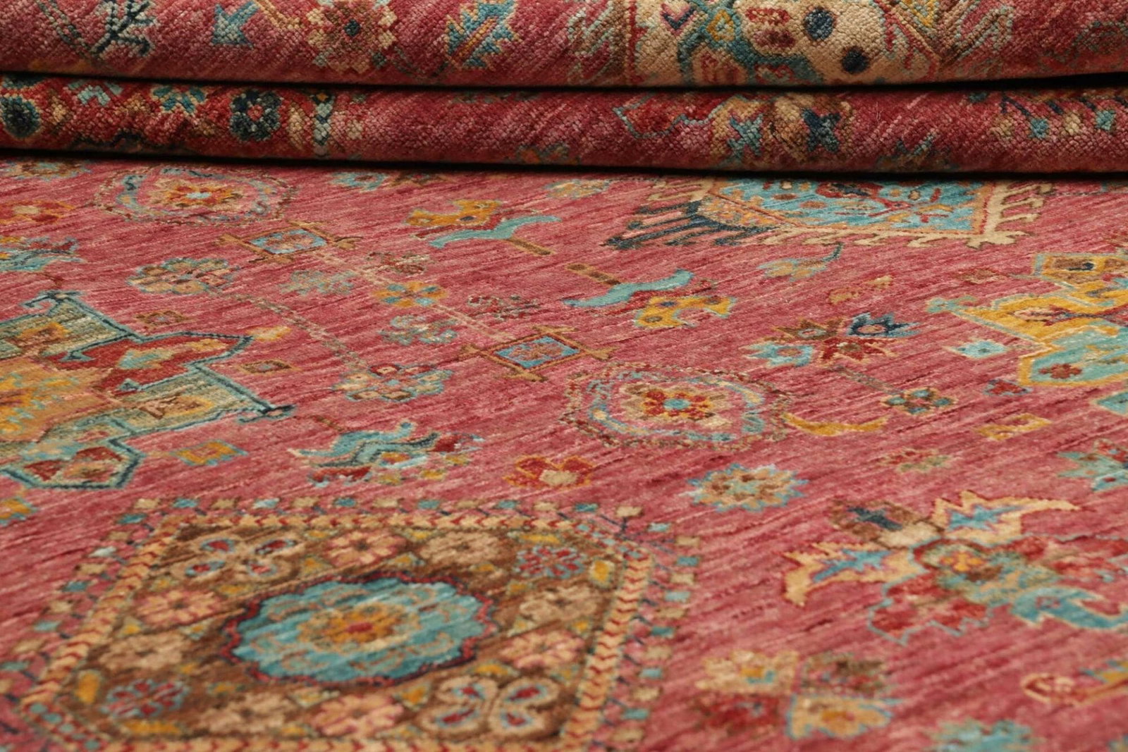 Die Farbpalette reicht von warmen Erdtönen bis hin zu lebendigen Rottönen, tiefem Blau und sattem Gelb, die alle zusammen einen harmonischen Gesamteindruck erzeugen. Durch den Einsatz natürlicher Farbstoffe erhält jeder Teppich eine einzigartige Ausstrahlung, die ihn zu einem echten Unikat macht.