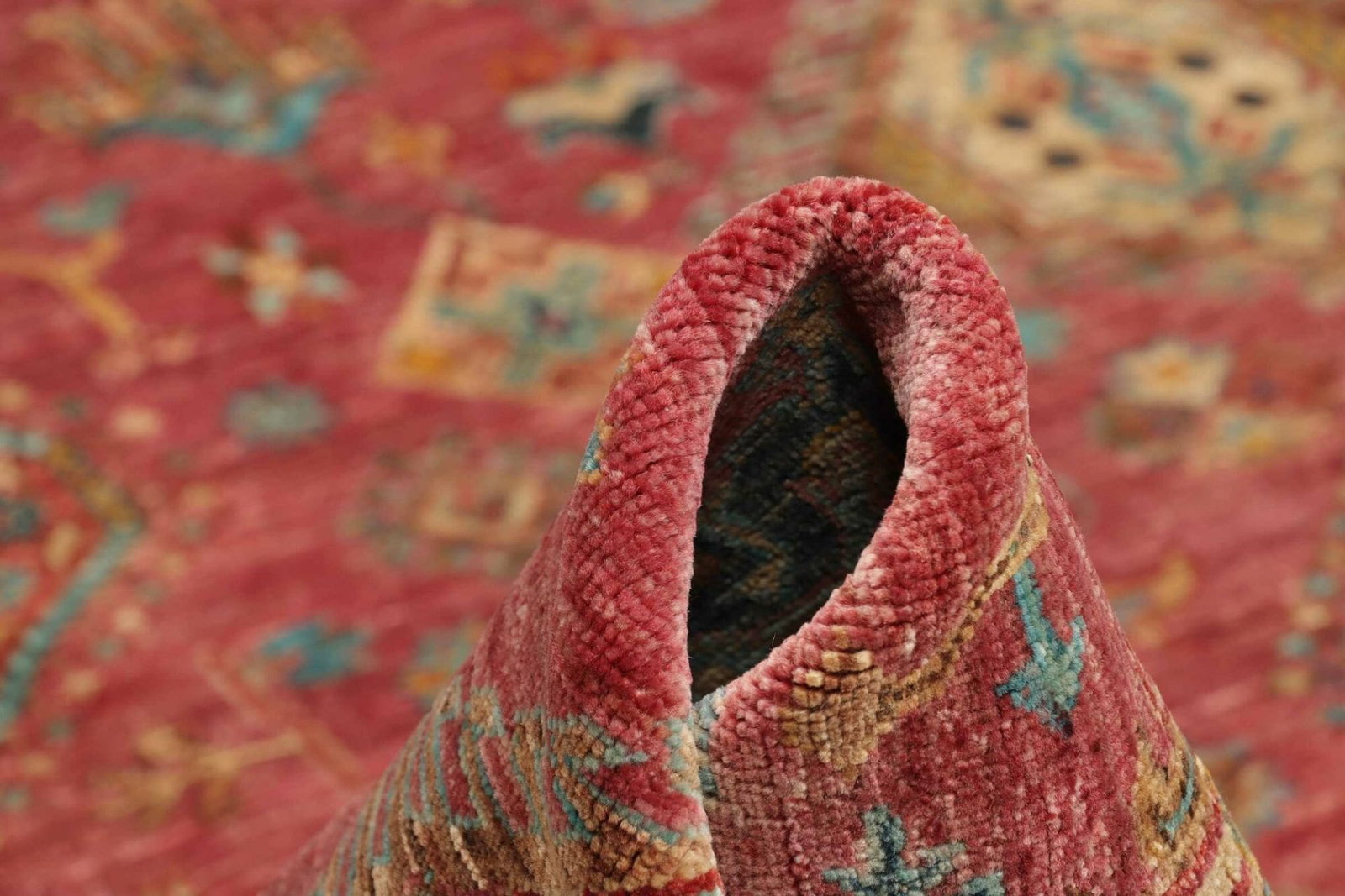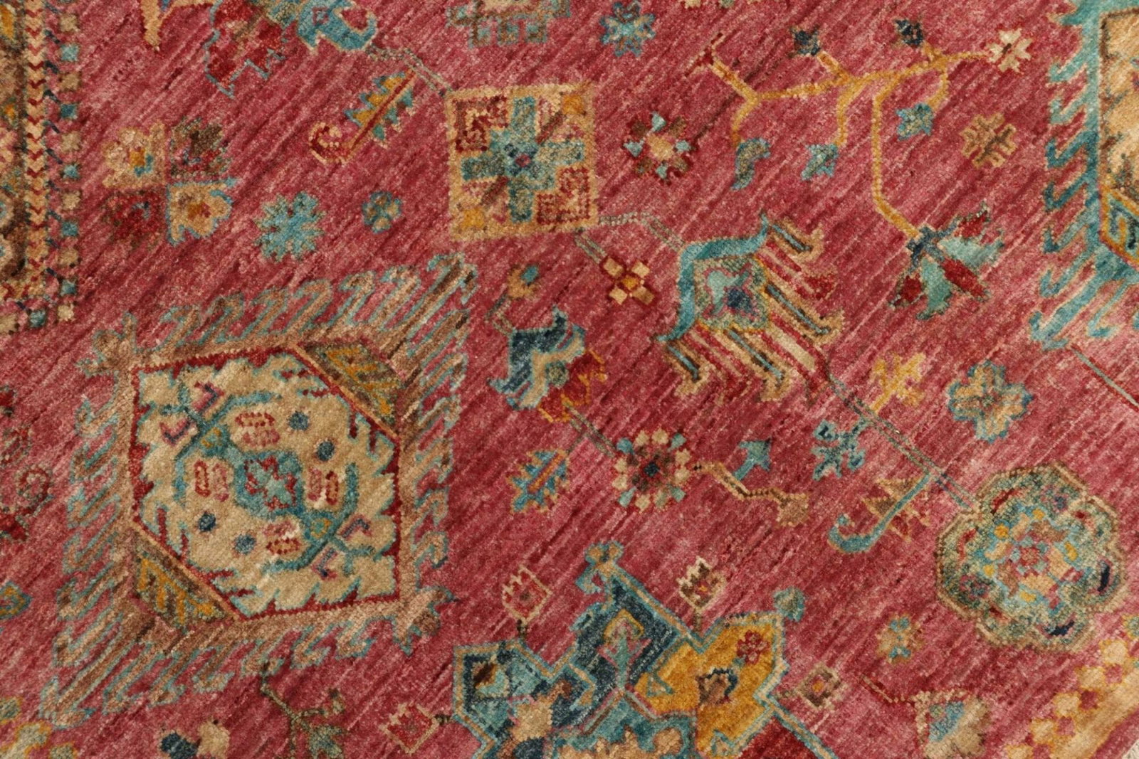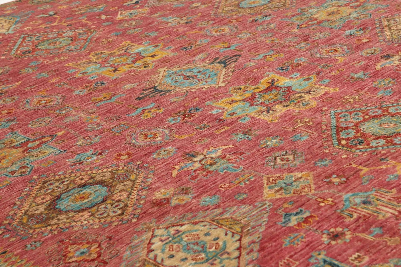 Die Farbpalette reicht von warmen Erdtönen bis hin zu lebendigen Rottönen, tiefem Blau und sattem Gelb, die alle zusammen einen harmonischen Gesamteindruck erzeugen. Durch den Einsatz natürlicher Farbstoffe erhält jeder Teppich eine einzigartige Ausstrahlung, die ihn zu einem echten Unikat macht.
