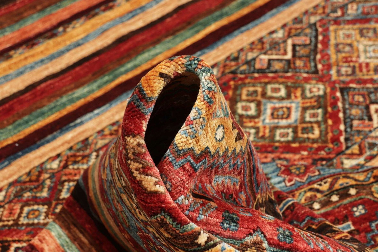 Das lebendige Farbenspiel und die sorgfältige Gestaltung machen diesen Teppich zu einem Blickfang in jedem Raum. Ob im Wohnzimmer, im Büro oder in einem anderen Bereich Ihres Zuhauses, der Orientteppich bringt Wärme und Charakter mit sich.