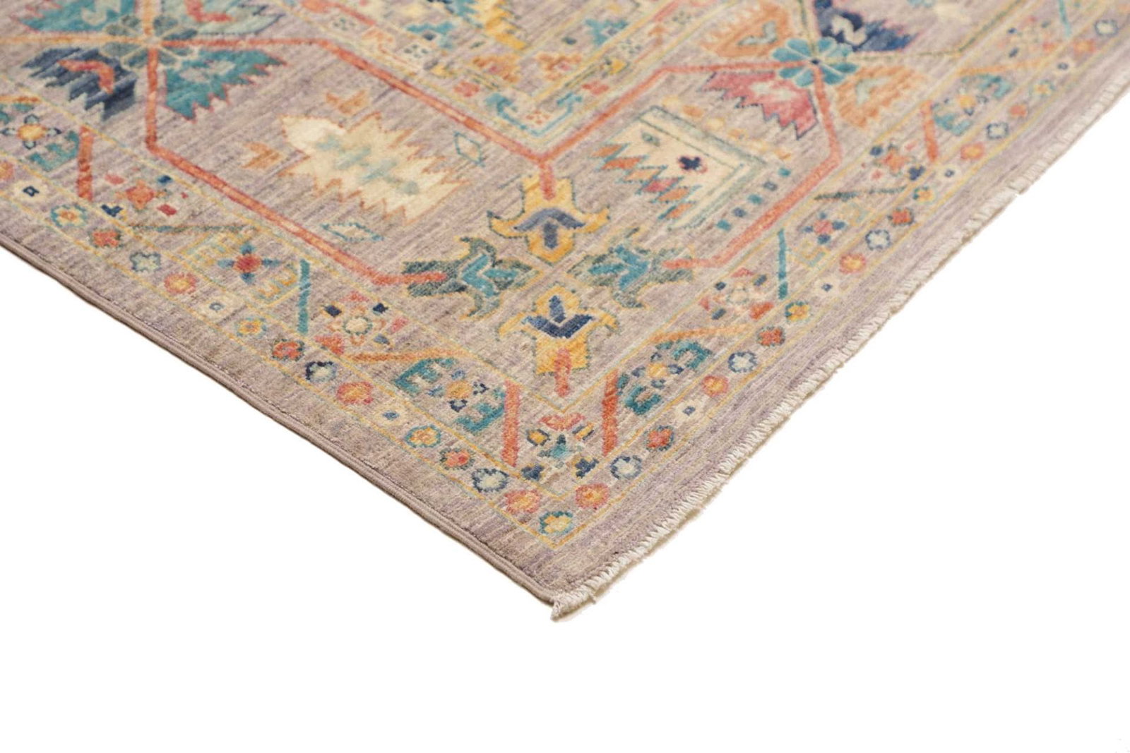 Das Material Schurwolle sorgt nicht nur für einen angenehmen und plüschigen Eindruck, sondern ist auch besonders robust, wodurch der Teppich für den täglichen Gebrauch geeignet ist. Besonders hervorzuheben ist die hohe Knotendichte, die auf die exzellente Handarbeit zurückzuführen ist und sowohl die optische als auch die haptische Qualität des Teppichs entscheidend beeinflusst. Ein handgeknüpfter Teppich garantiert nicht nur ein individuelles Design, sondern auch eine außergewöhnliche Haltbarkeit im Vergleich zu maschinell gefertigten Teppichen.
