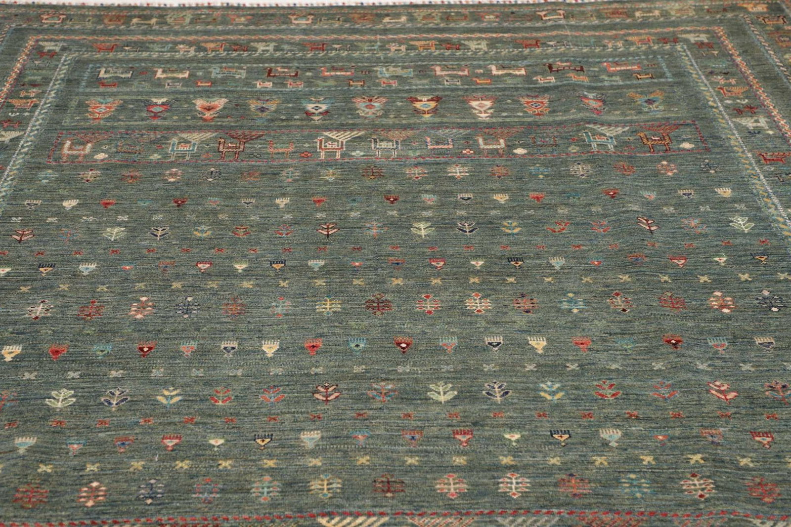 1898$ In den WarenkorbKlassischer Orientteppich Bochera – Hellgrün, 200×160 cm, handgeknüpft, Perserteppich