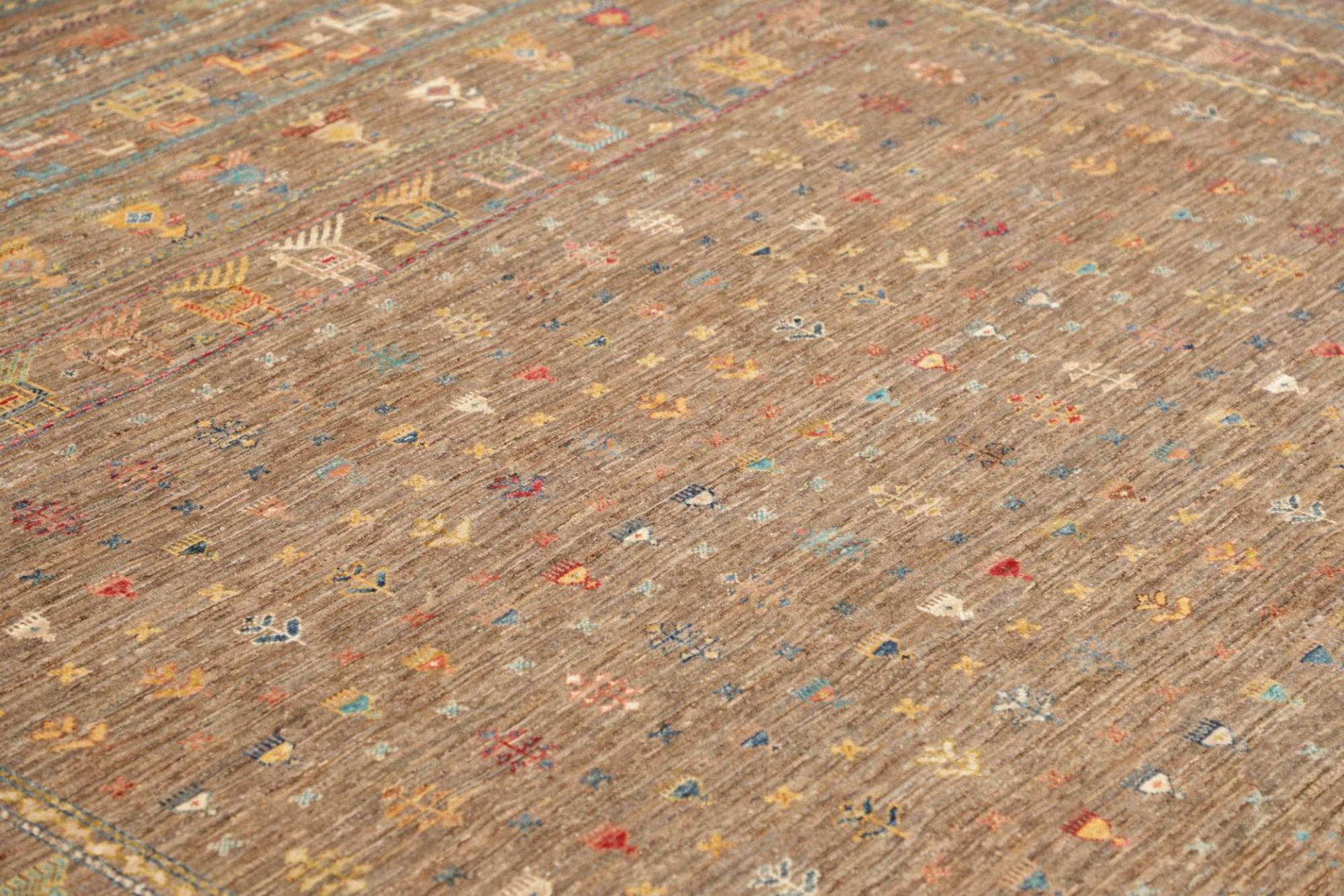 Die exquisite Handarbeit, die in die Herstellung dieses Teppichs eingeflossen ist, zeigt sich nicht nur in der Knotendichte, sondern auch in der sorgfältigen Auswahl der Muster und Farben. Handgeknüpfte Teppiche wie dieser bieten eine bessere Qualität und Langlebigkeit im Vergleich zu maschinell gefertigten Teppichen.