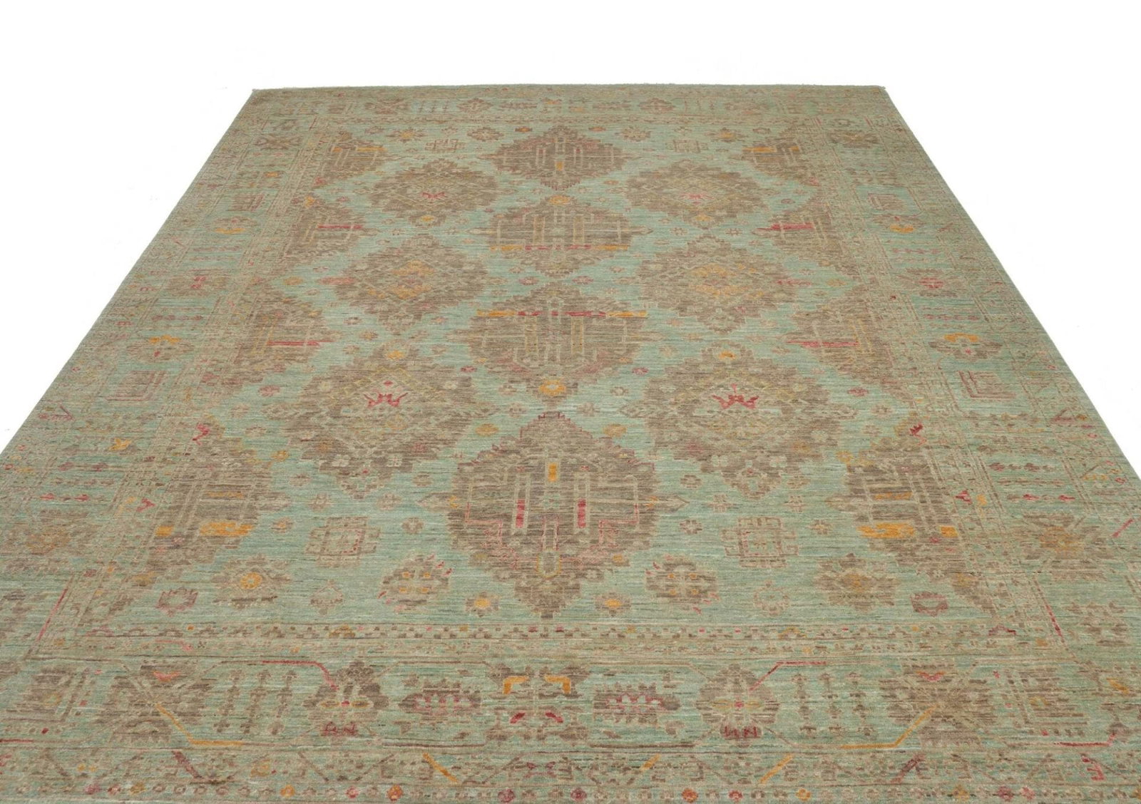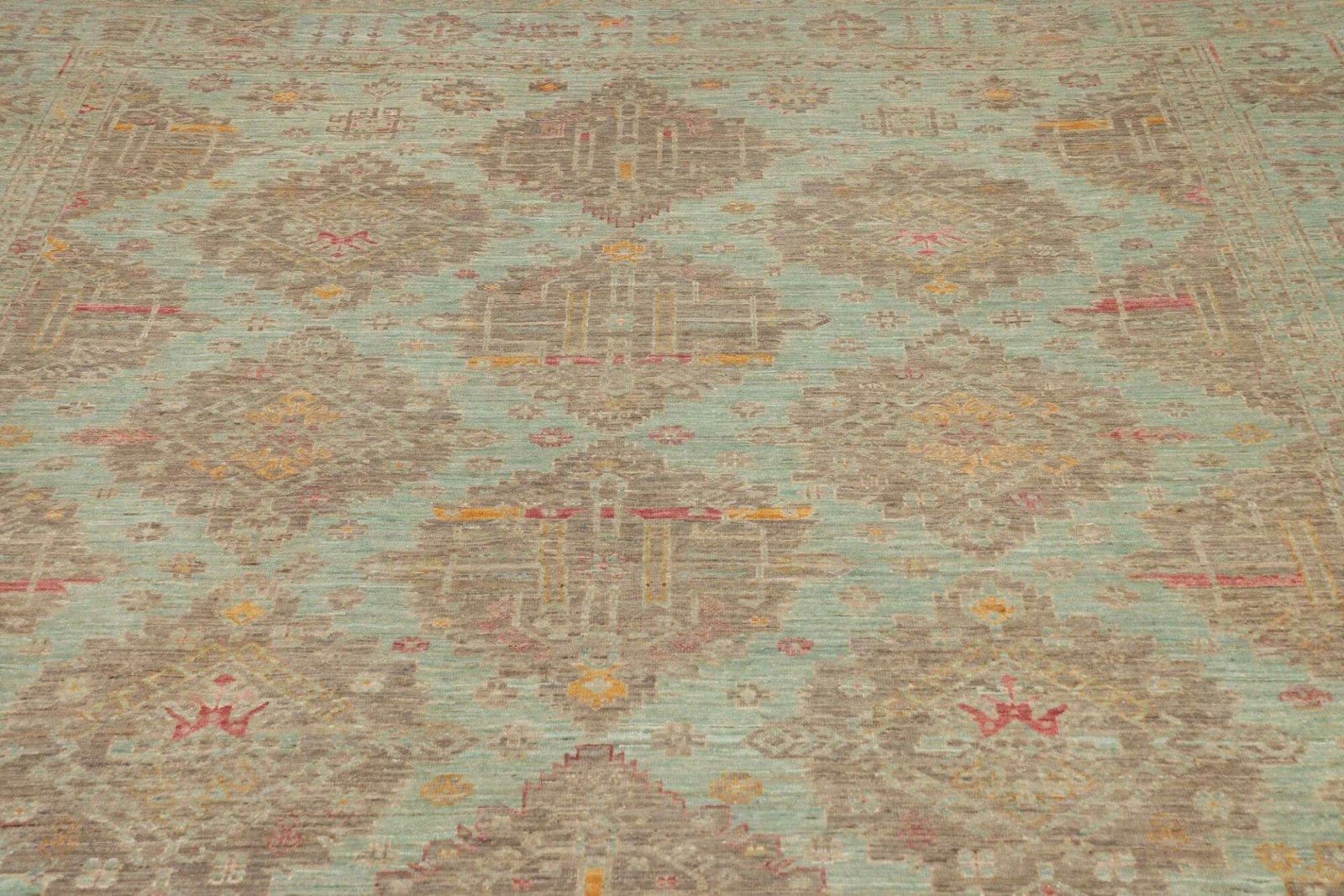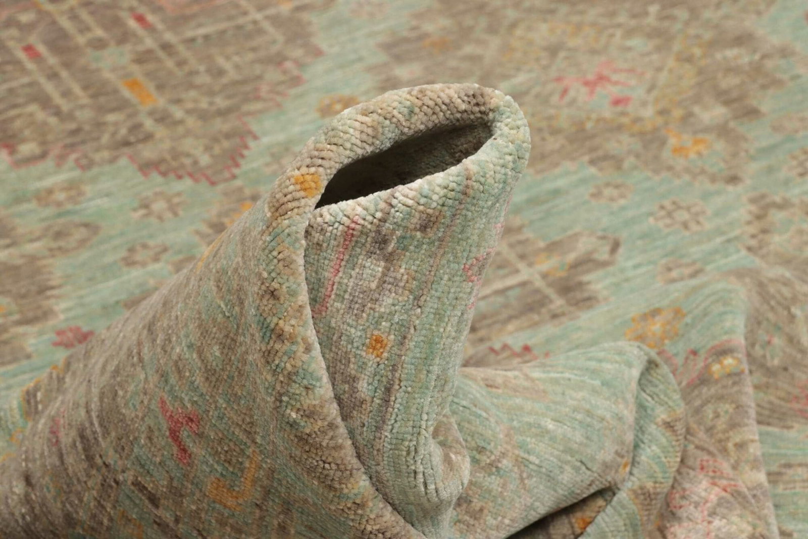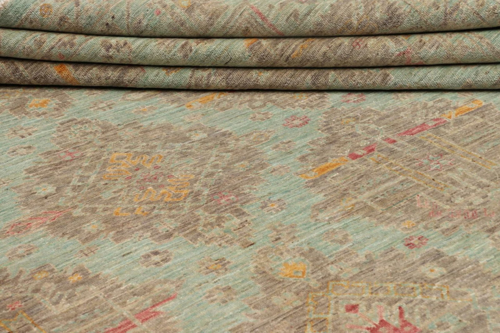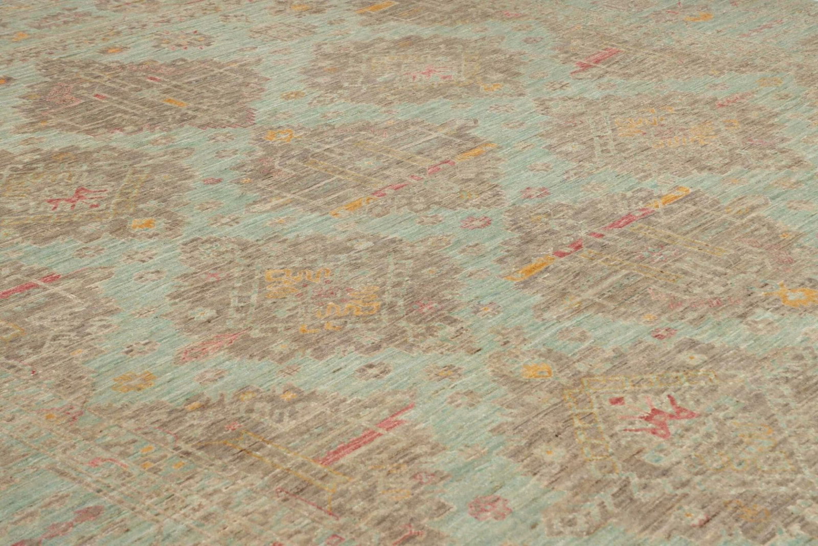 Der Samarkand Orientteppich ist aus 100% Wolle gefertigt. Wolle ist bekannt für ihre natürlichen Eigenschaften, die für Wärme, Langlebigkeit und eine angenehme Textur sorgen. Diese Materialwahl ist ideal, um einen gemütlichen und zugleich stilvollen Raum zu schaffen. Die handgeknüpfte Technik sorgt dafür, dass jeder Teppich ein Unikat ist. Hierbei werden Tausende von Knoten von erfahrenen Kunsthandwerkern in mühevoller Handarbeit gesetzt, was zu einer hohen Knotendichte führt. Dies bedeutet nicht nur, dass der Teppich widerstandsfähig gegen Abnutzung ist, sondern auch, dass die Farben und Muster lebendig und klar bleiben.