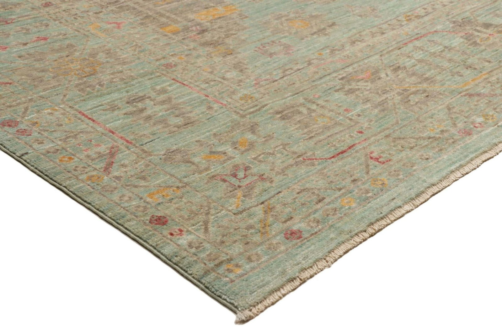 Die Pflege eines handgeknüpften Orientteppichs ist ebenfalls recht einfach. Regelmäßiges Saugen und gelegentliche professionelle Reinigungen erhalten die Schönheit und Langlebigkeit des Teppichs. Mit der richtigen Pflege kann dieser Teppich Generationen überdauern und weitergegeben werden.