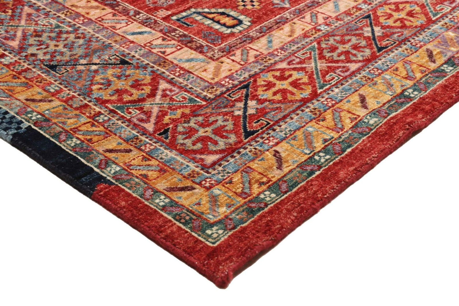 Das Design des Samarkand Orientteppichs ist eine harmonische Kombination aus traditionellen Mustern und modernen Akzenten. Typisch für Orientteppiche sind geometrische und florale Motive, die oft in leuchtenden Farben gestaltet sind. Diese Elemente verleihen jedem Raum einen Hauch von Exotik und Stil. Die Kombination aus leuchtenden Farbtönen und harmonischen Mustern macht diesen Teppich zu einem Blickfang in jedem Wohnraum und trägt wesentlich zur Gestaltung der Atmosphäre bei.