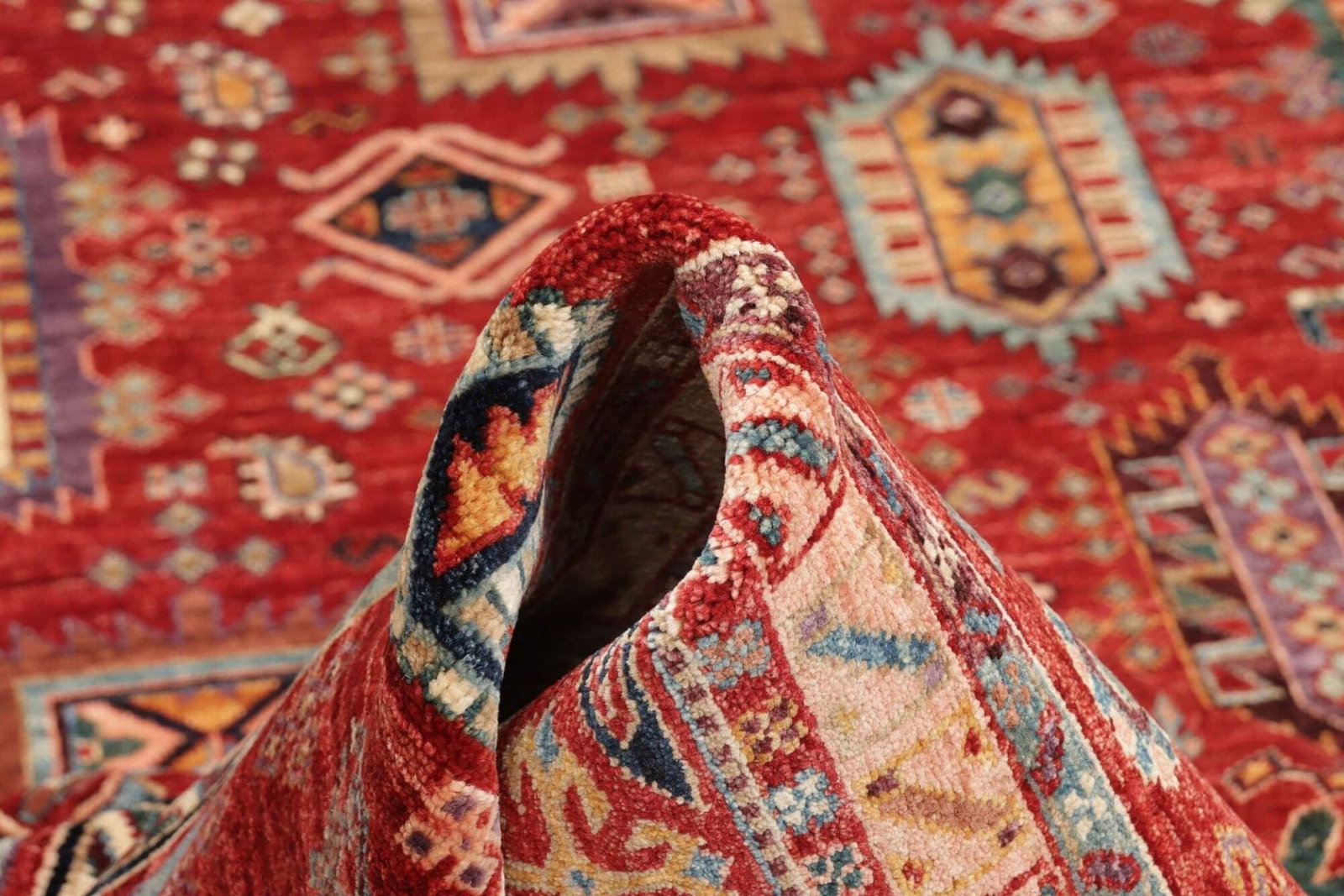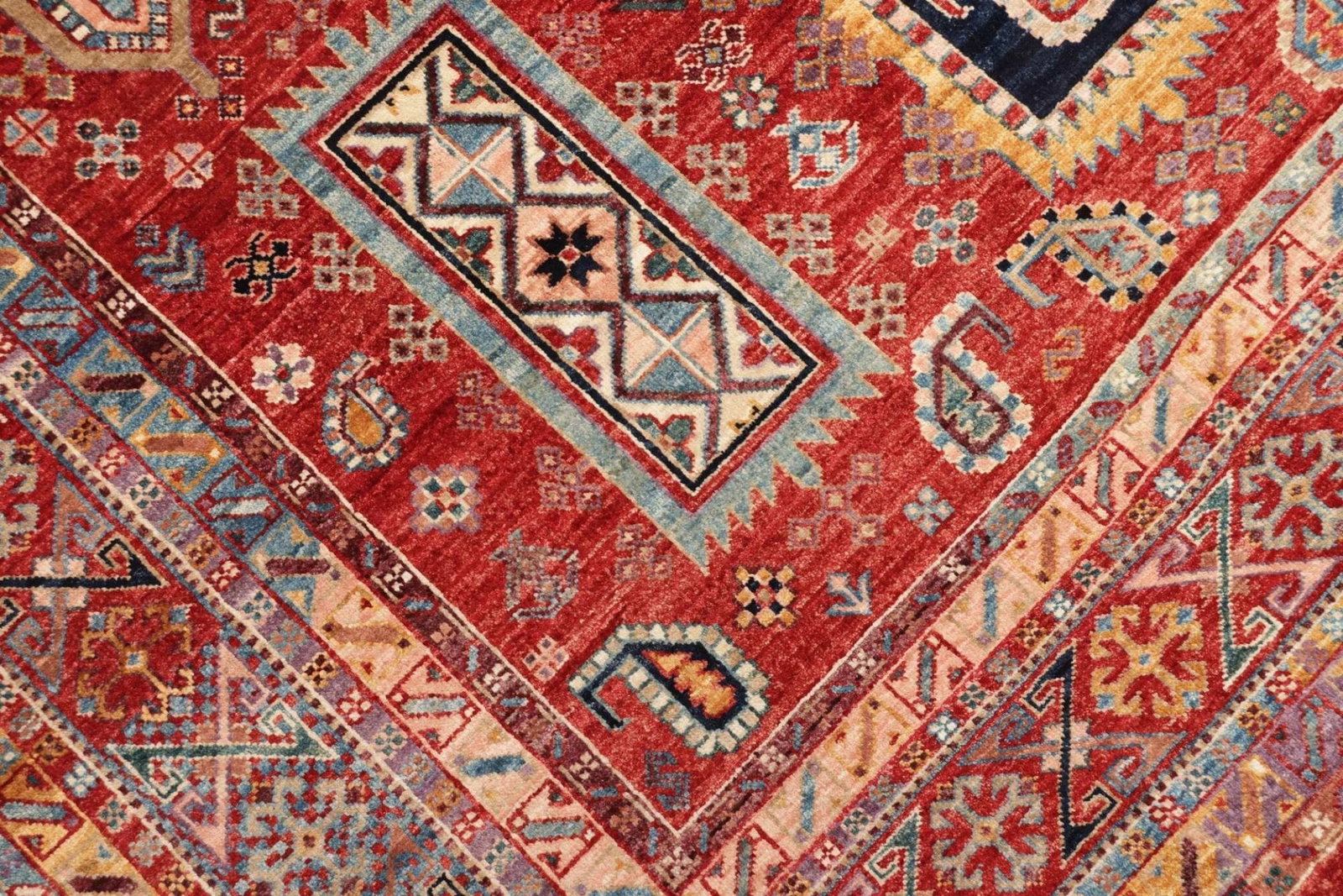 Der Teppich ist handgeknüpft, was bedeutet, dass jeder einzelne Knoten mit höchster Präzision und Sorgfalt gesetzt wurde. Dies führt zu einer beeindruckenden Knotendichte, die nicht nur die Qualität des Teppichs erhöht, sondern auch seine Schönheit und Funktionalität steigert. Die Verwendung von Schurwolle sorgt dafür, dass der Teppich nicht nur weich und einladend ist, sondern auch isolierende Eigenschaften hat, die ihn besonders für den Einsatz in Wohnräumen prädestiniert.