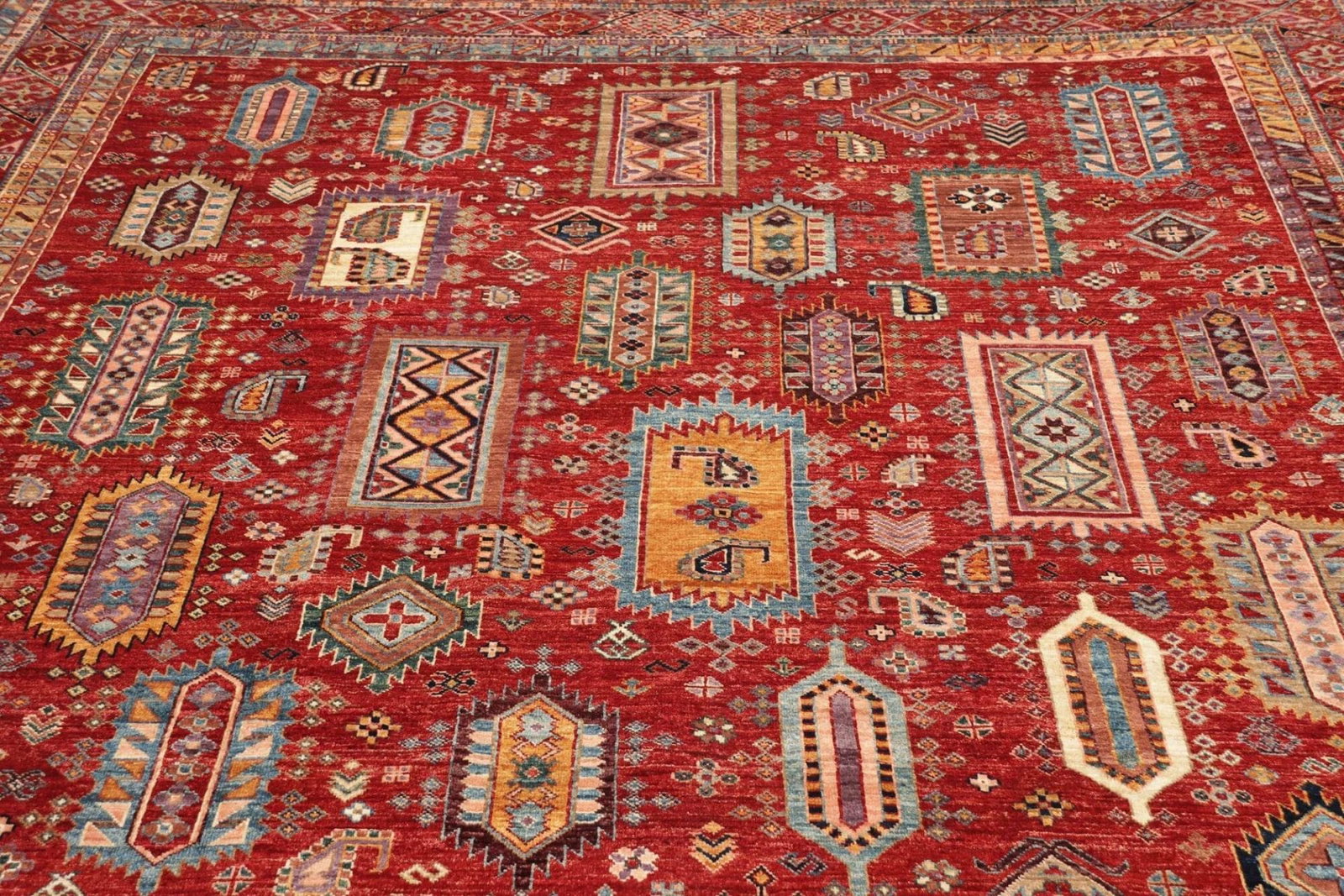 7049$Ursprünglicher Preis war: 7049$6298$Aktueller Preis ist: 6298$Samarkand Tribal Teppich | Knotendichte: ca. 200.000 Knoten/m² | Material: 100% Schurwolle und 100% Baumwolle | Größe: 251 x 309 cm | Höhe: ca. 5-7 mm | Herkunft: Pakistan | Handgeknüpfte Qualität | Modernes, orientalisches Muster