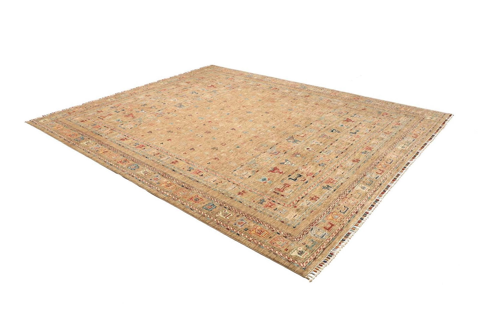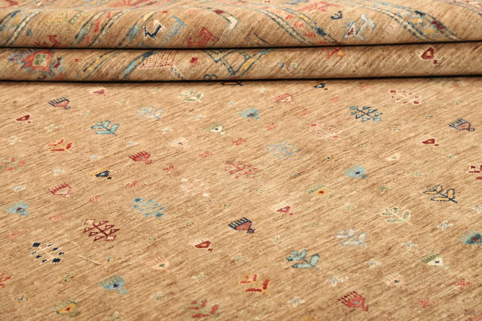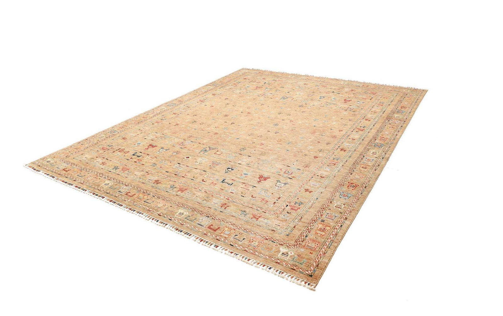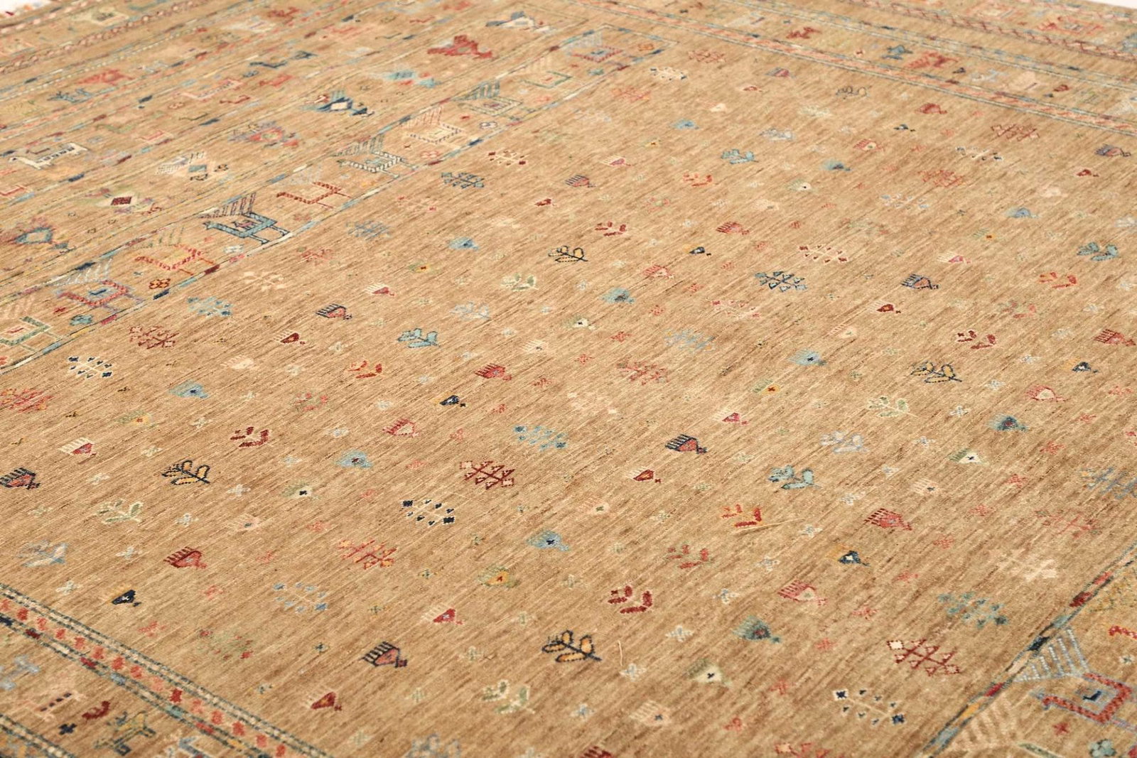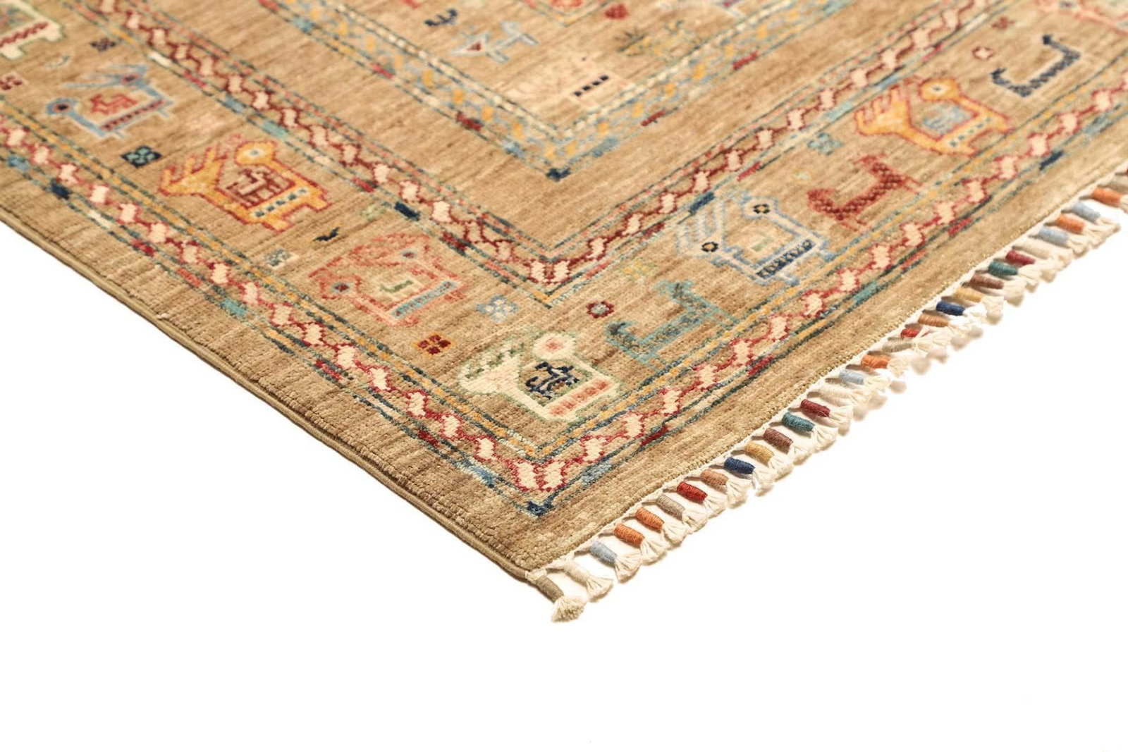 Die verwendete Wolle für diesen Teppich zeichnet sich durch ihre hohe Qualität aus, was bedeutet, dass der Teppich nicht nur angenehm unter den Füßen ist, sondern auch einen hervorragenden Schutz gegen Abnutzung bietet. Der handgeknüpfte Zustand sorgt für eine besonders hohe Knotendichte, was nicht nur die Haltbarkeit erhöht, sondern auch die Detailgenauigkeit der Muster. Durch die feine Knotentechnik erhält dieser Teppich eine exquisite Struktur, die sich in jedem einzelnen Exemplar widerspiegelt.
